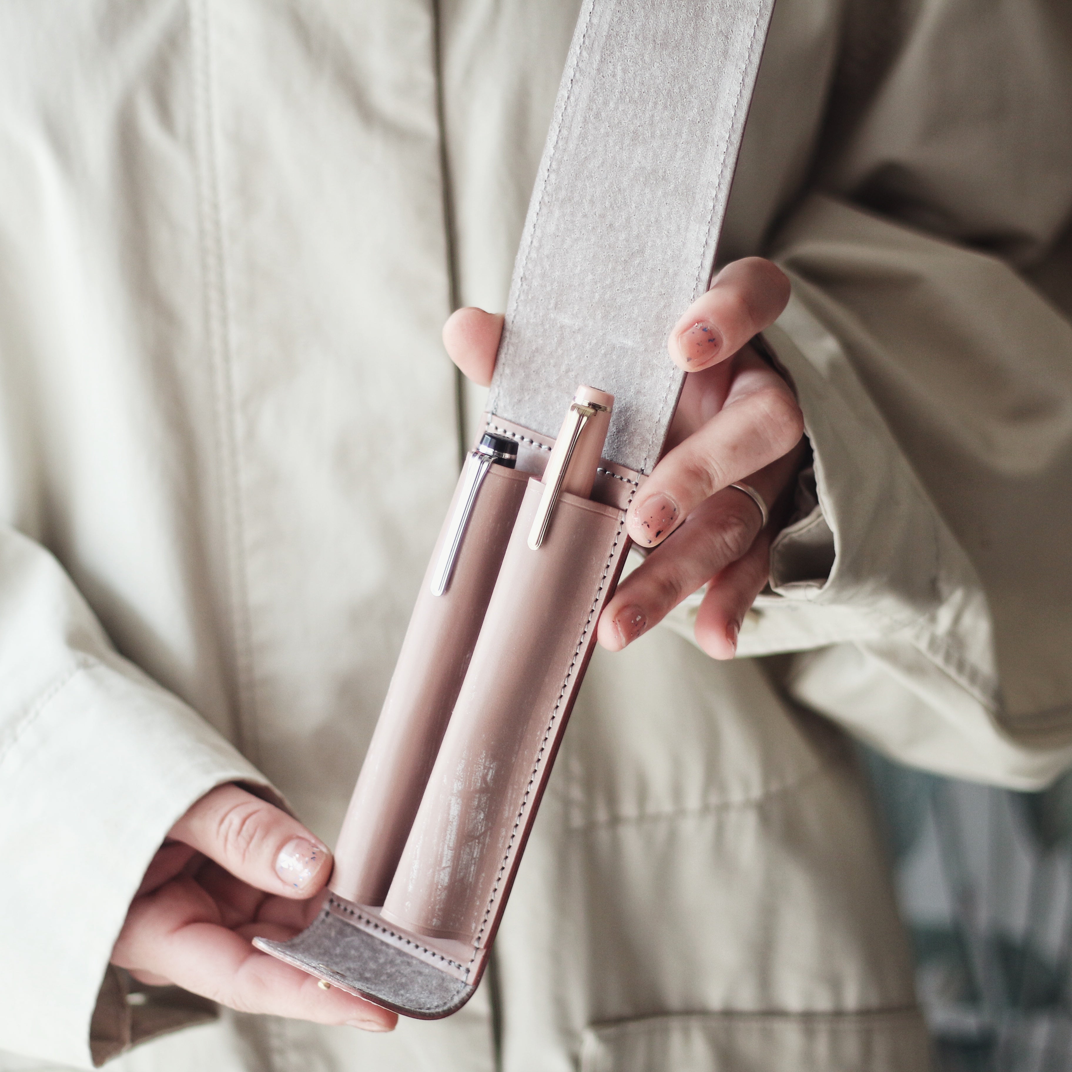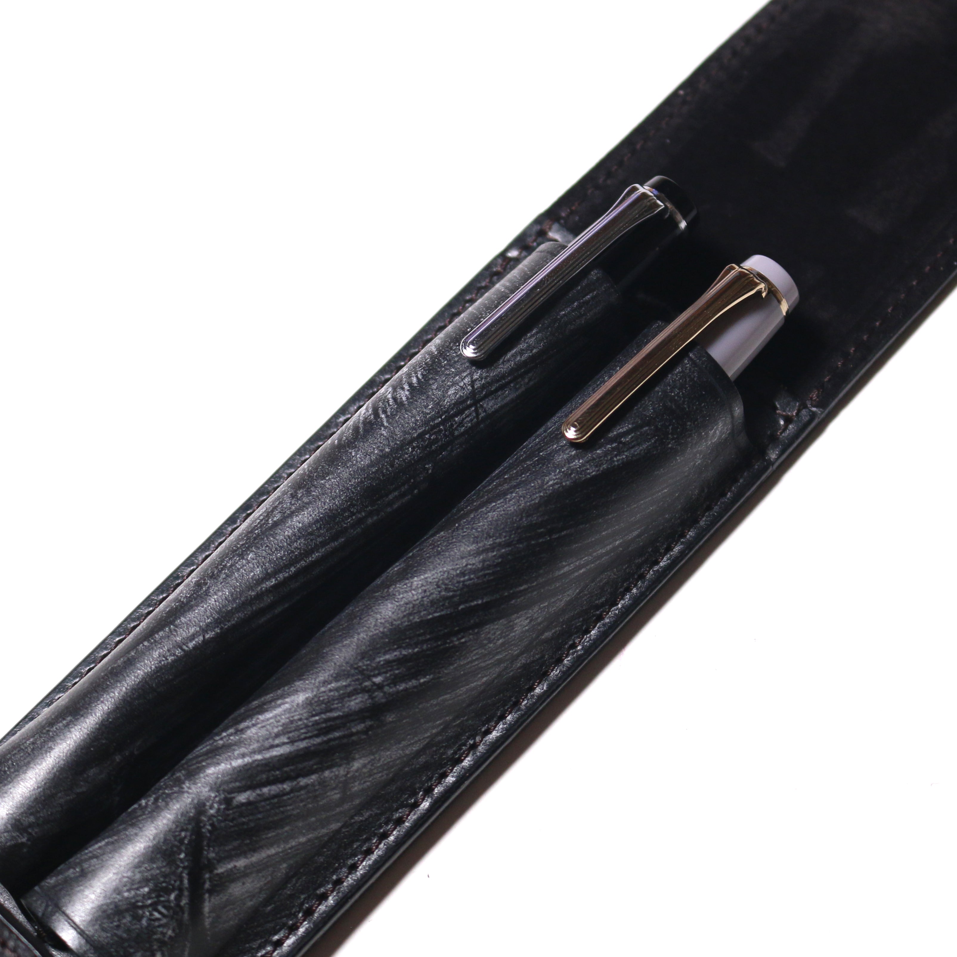 フラップ部分にあたる本体はピッグスエードを裏張りした高級感のある作りで、大切なペンをしっかりと保護して持ち運ぶことができます。