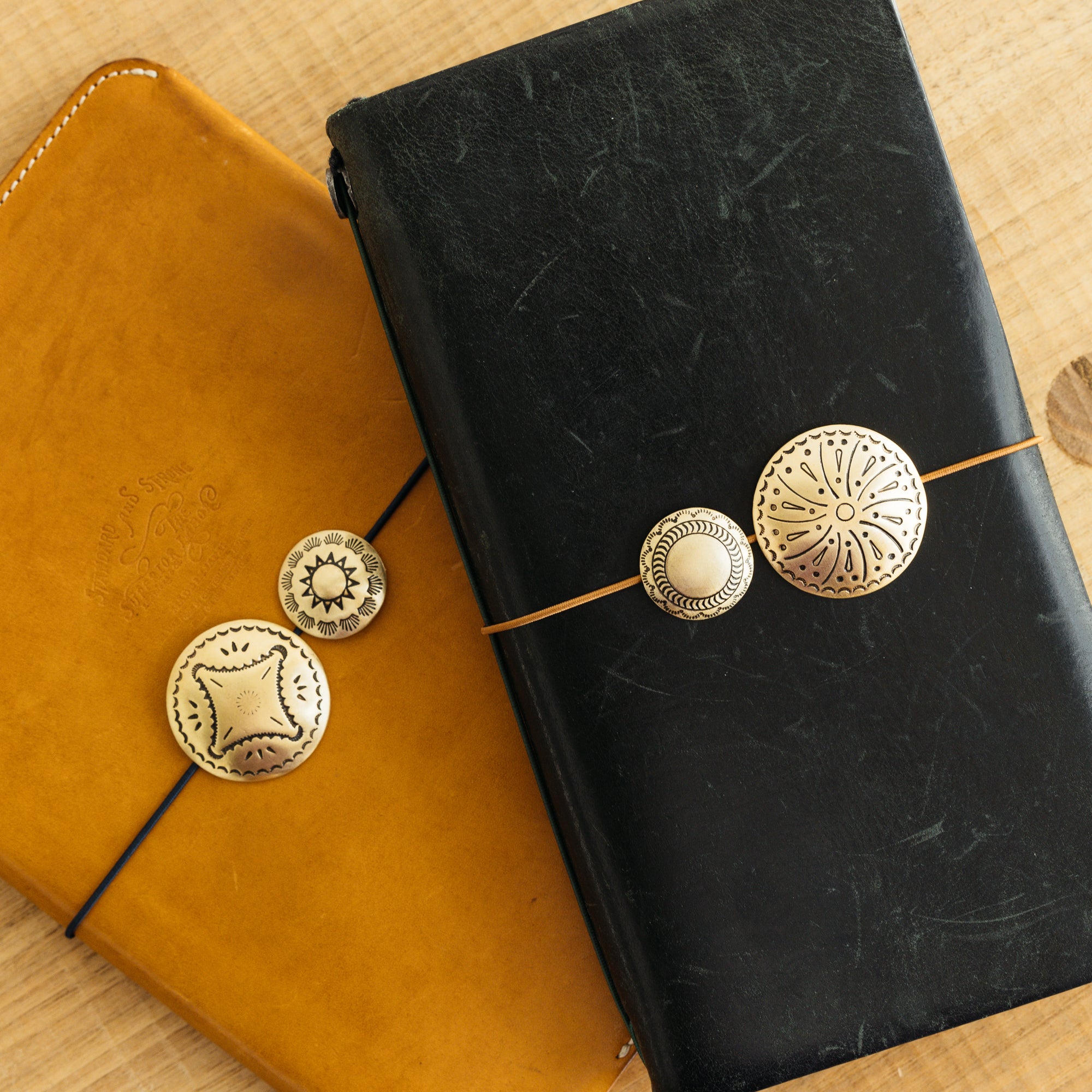 Brass conchos.
