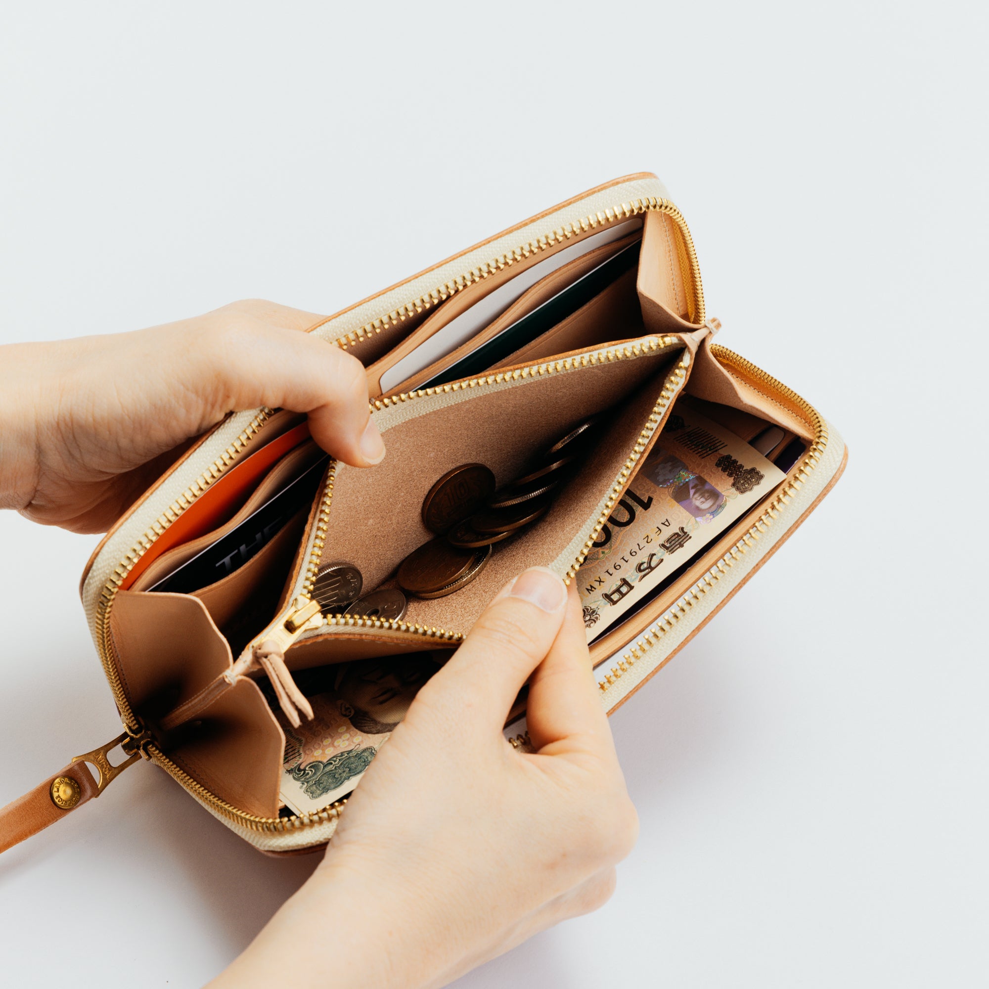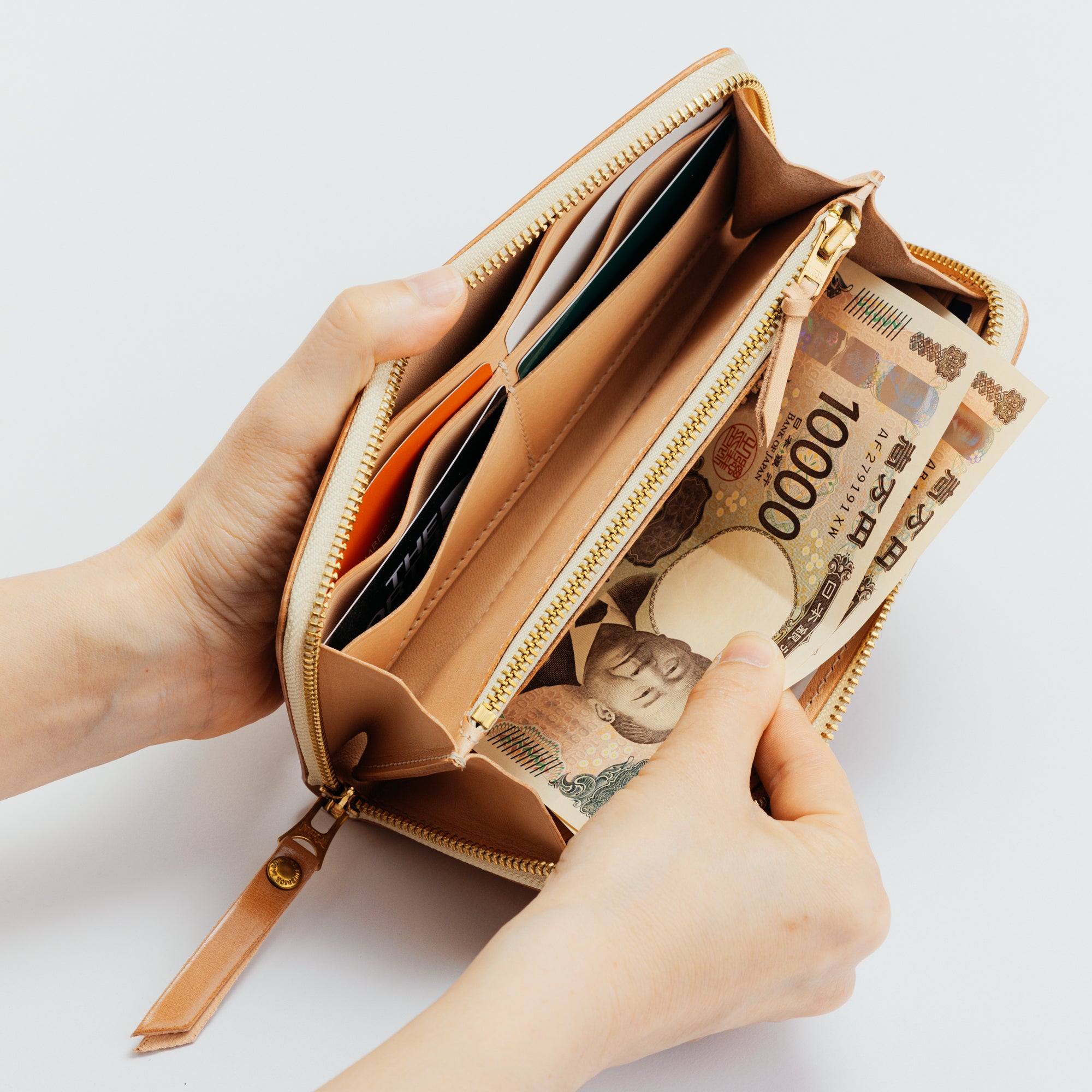 It is a round zipper type long wallet, but it is designed to be user-friendly and not too big and thick.