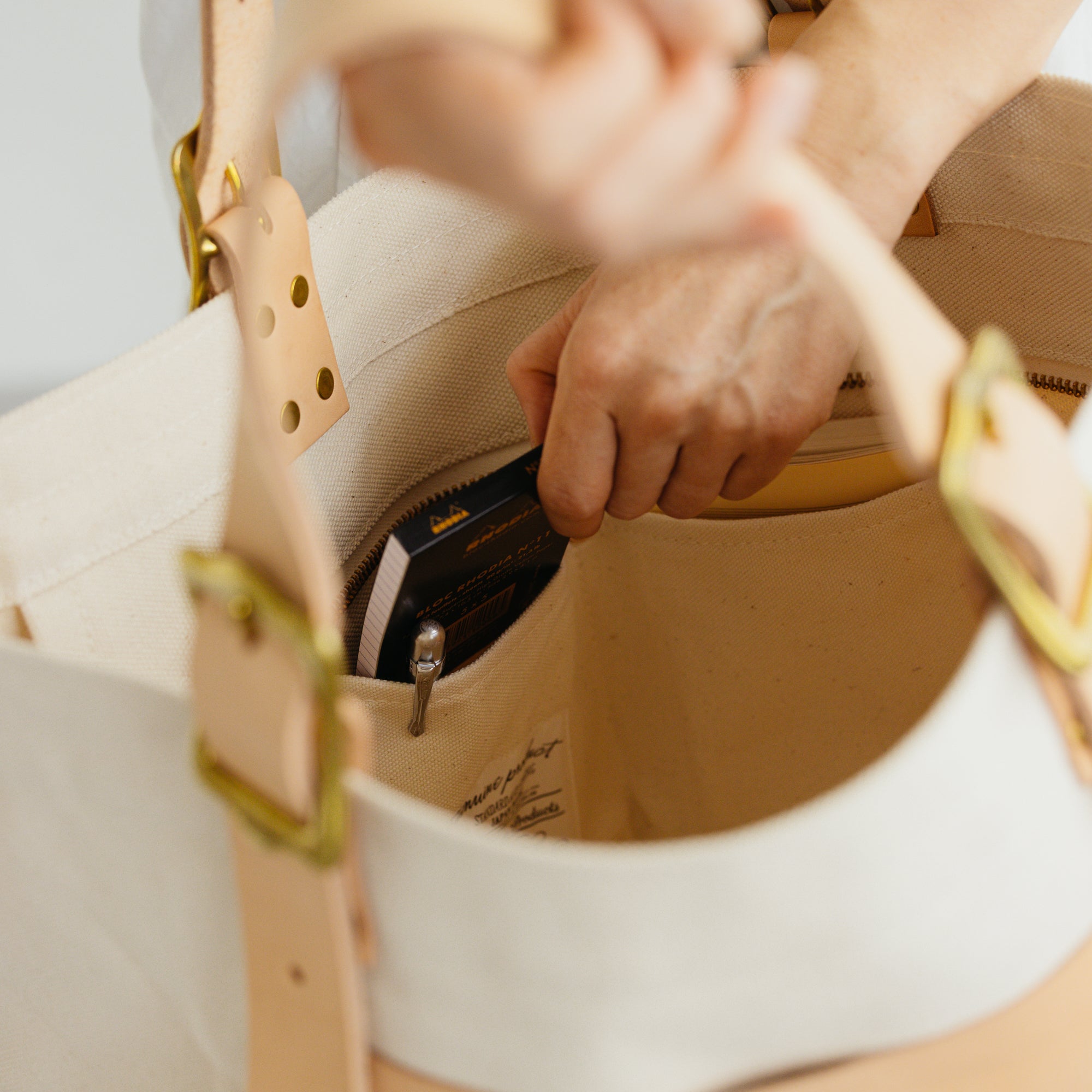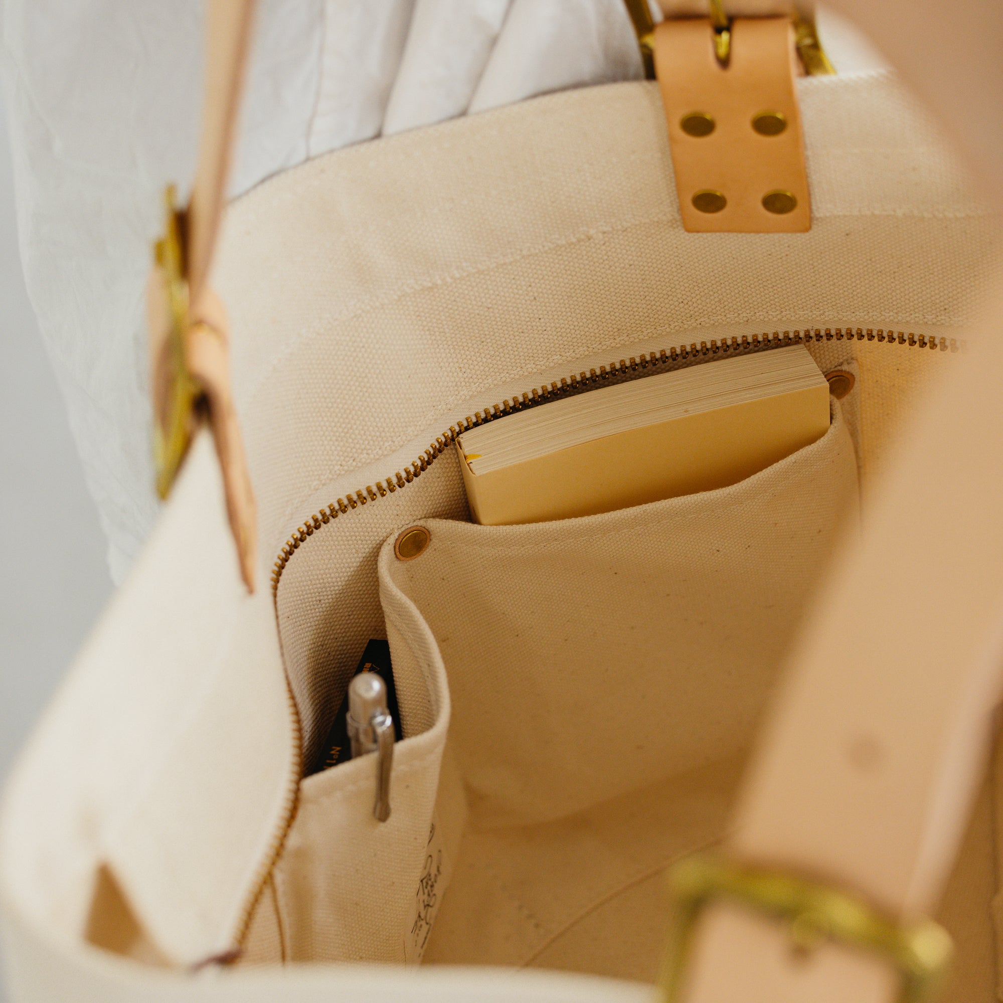 From materials to finishing, this bag is mostly hand manufactured by Japanese craftspeople from sewing and painting to the washing and