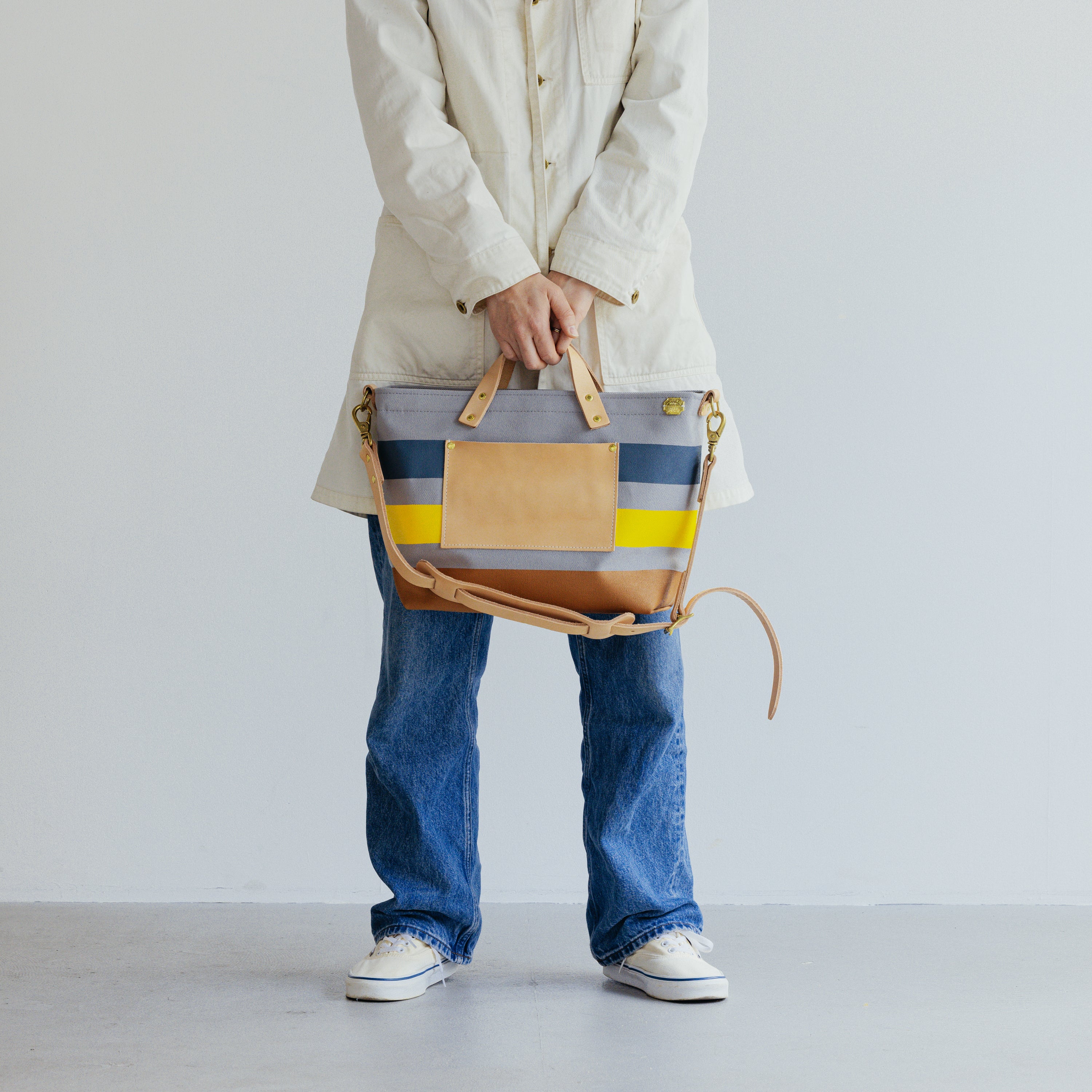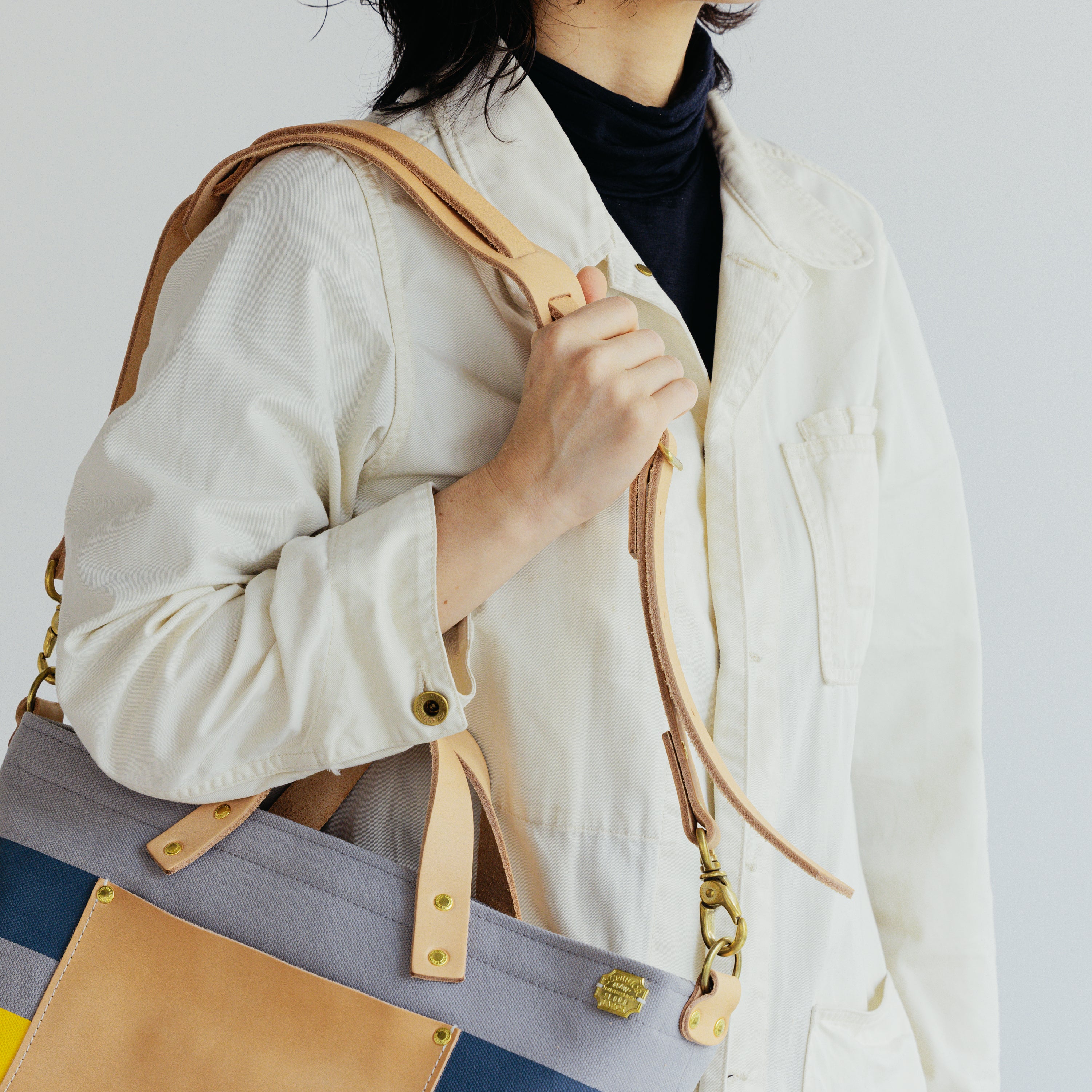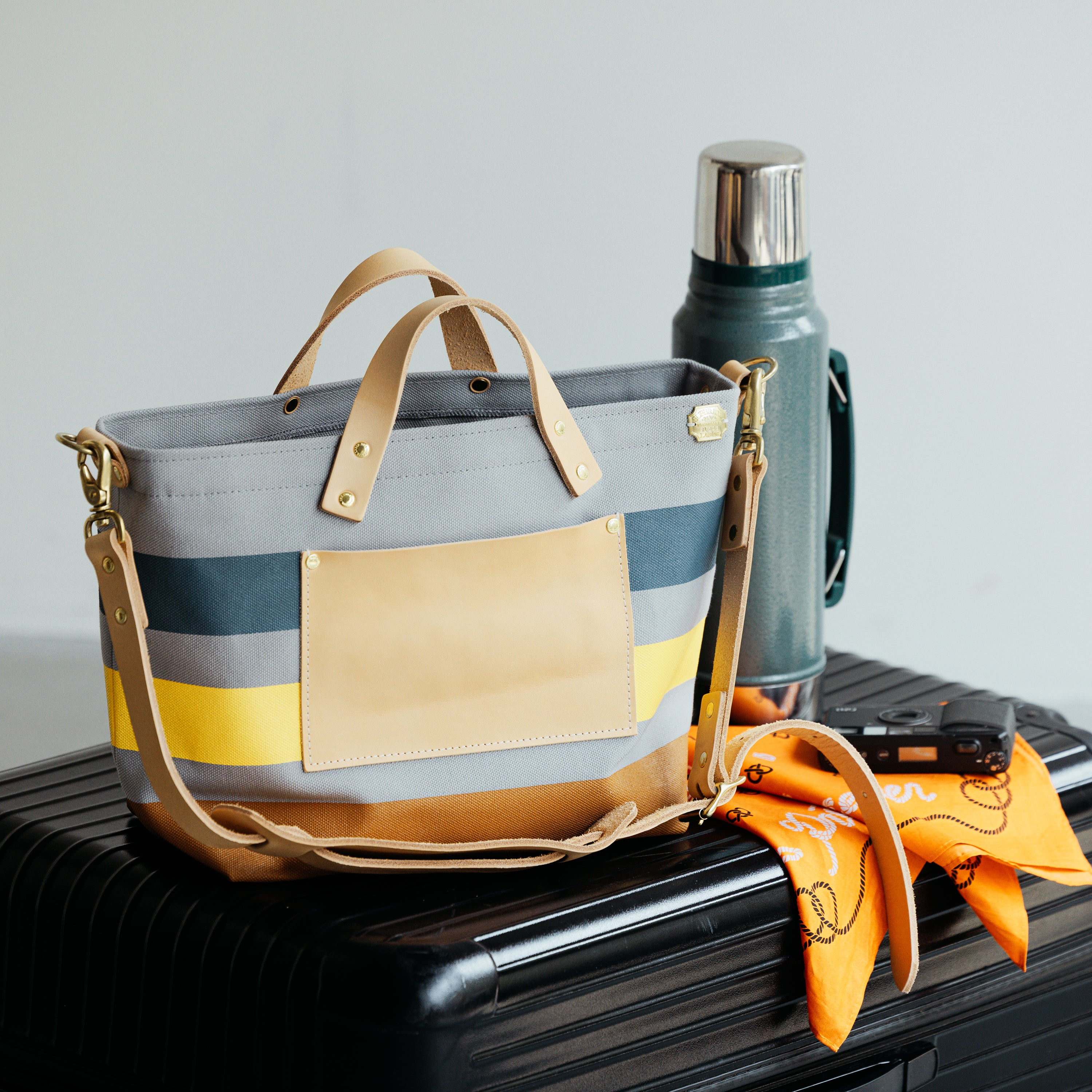 This season, instead of our standard natural canvas, the bag is offered in a gray version.