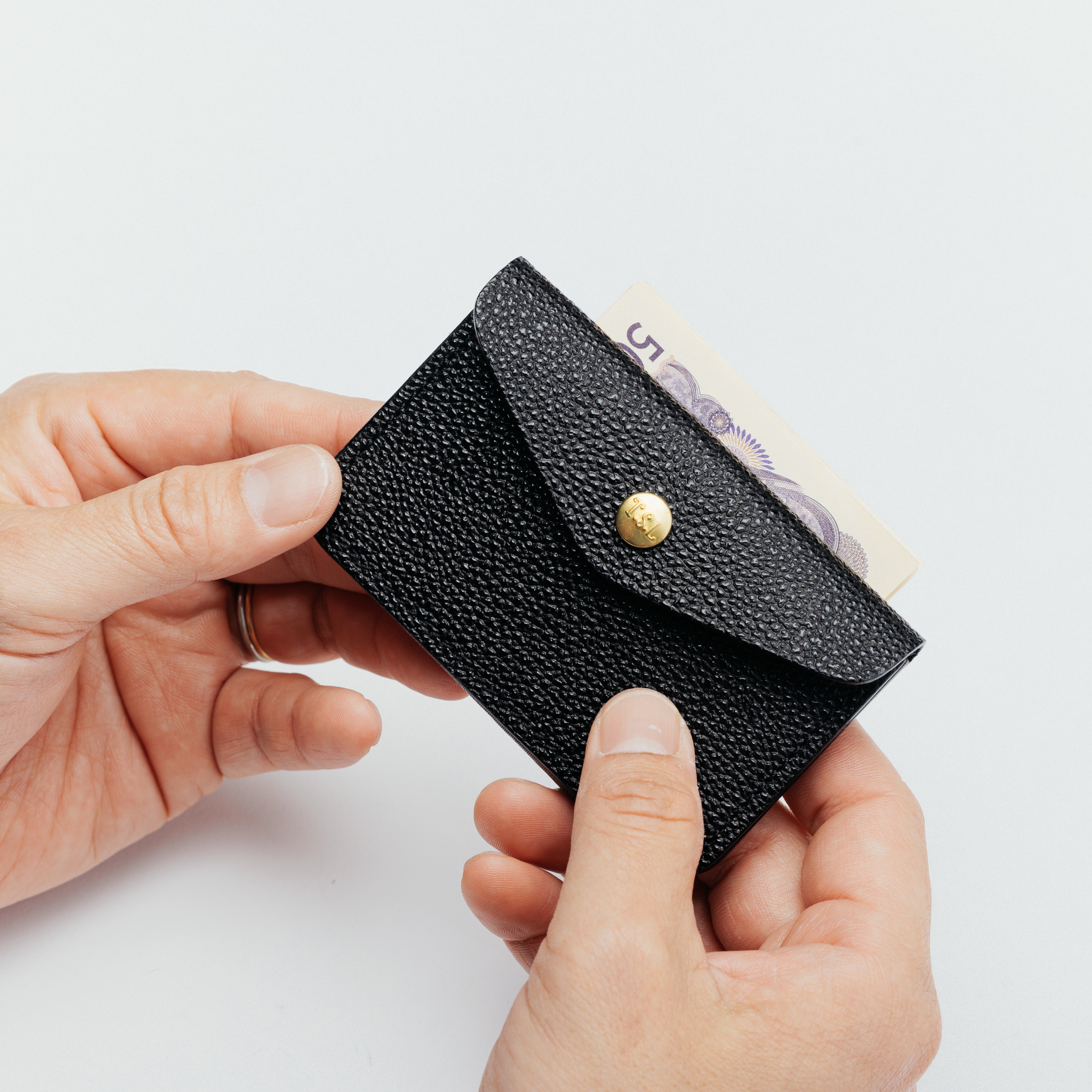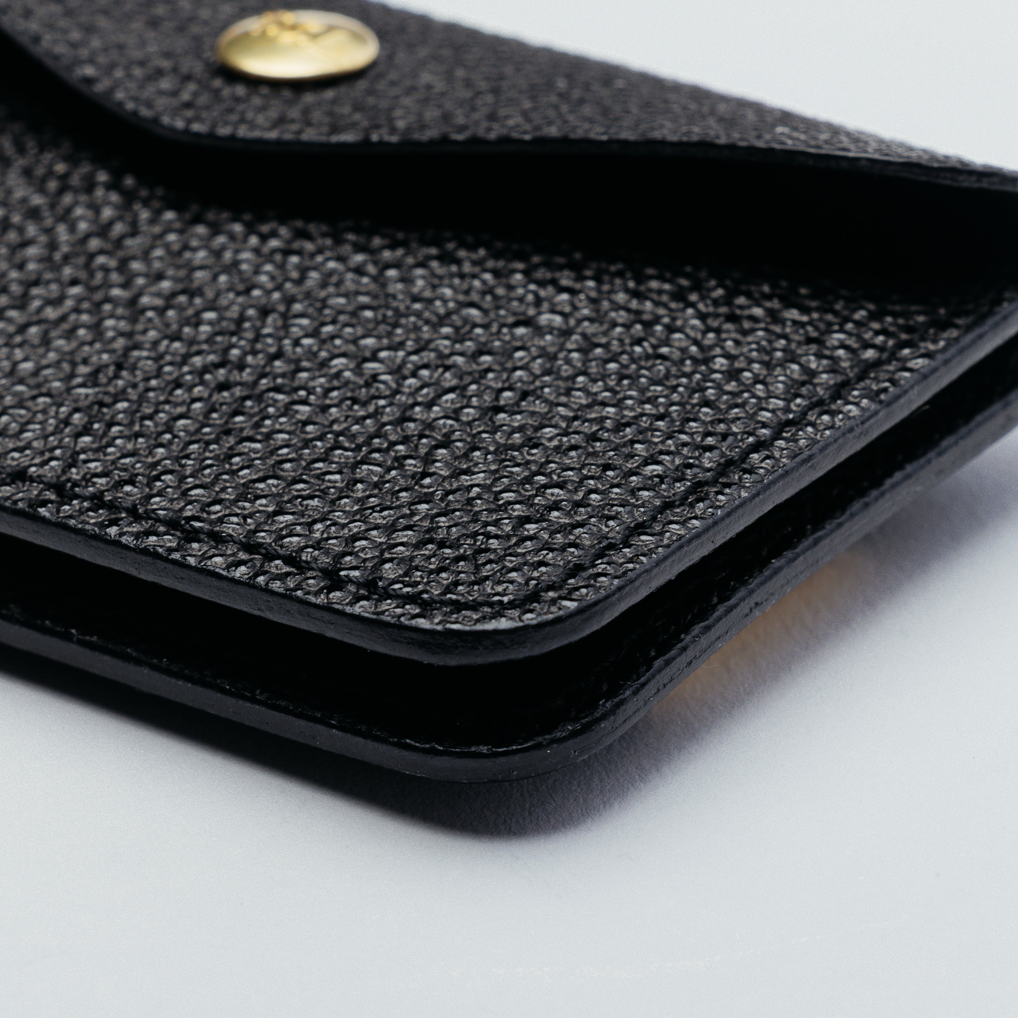 This leather is made from Japanese black cattle skin and finished with traditional white tanning and lacquer coating, which is known as the black diamond of leather.