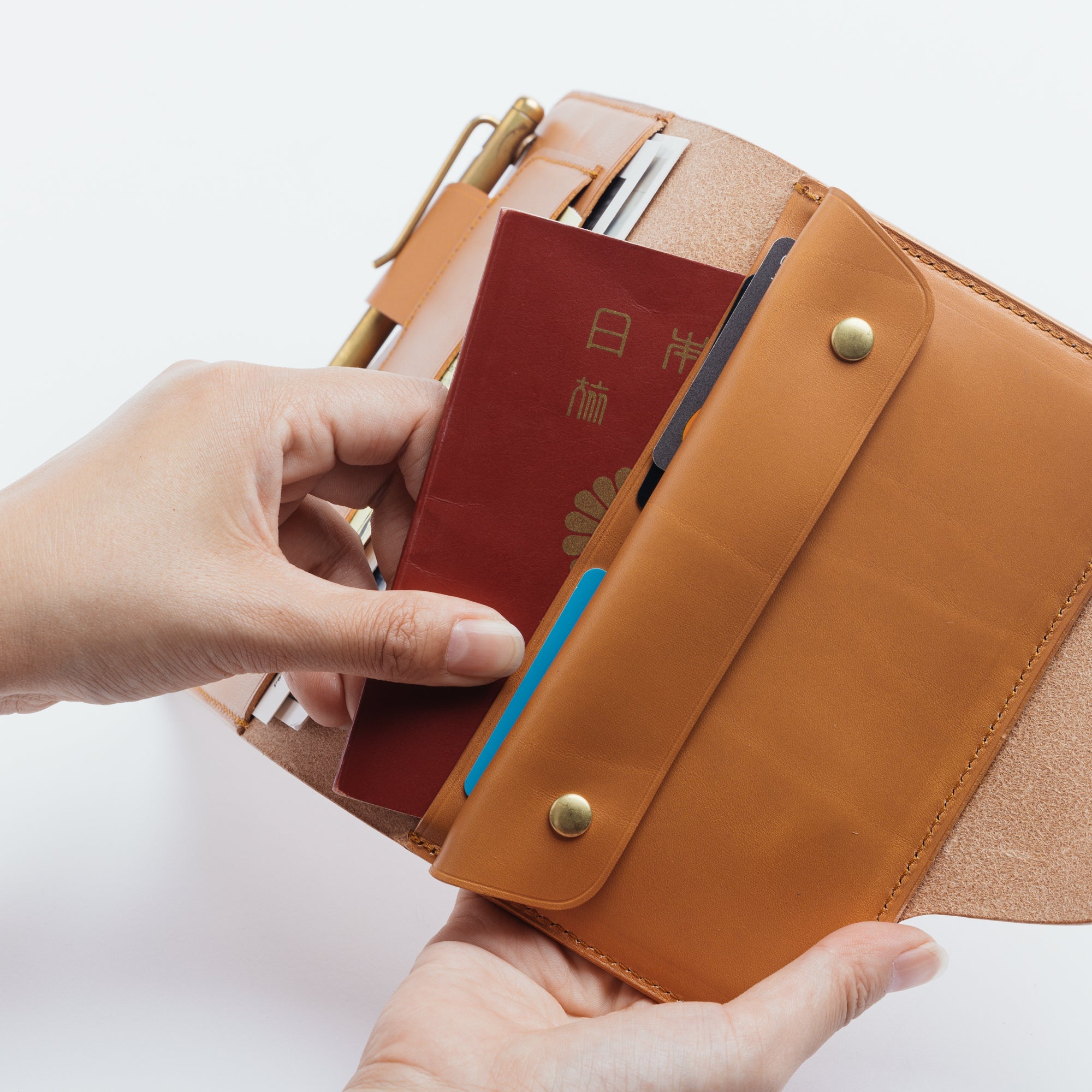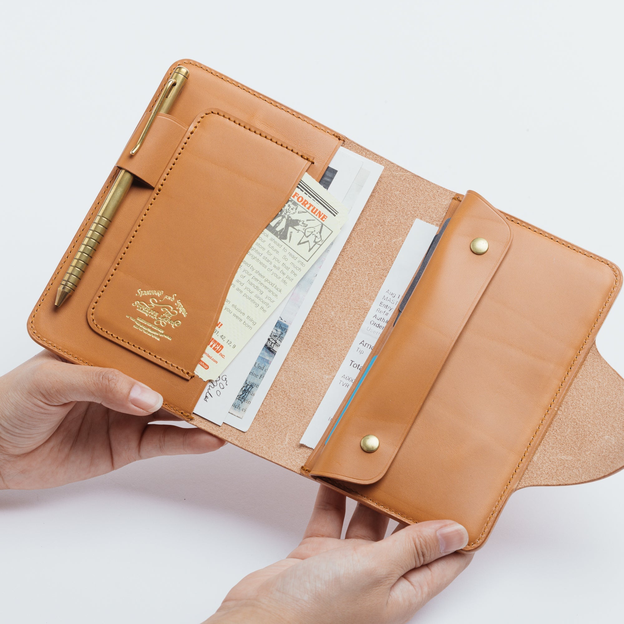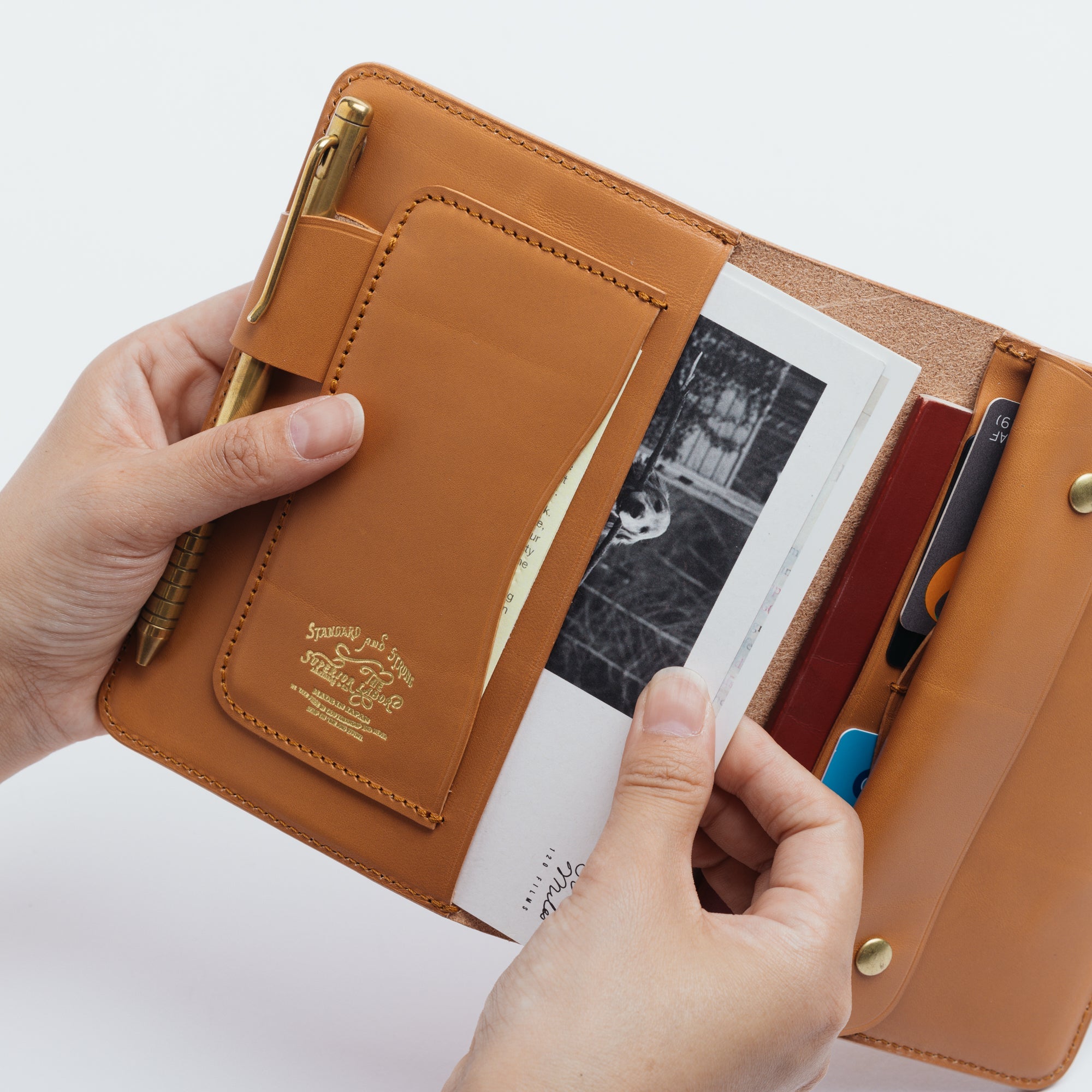 It can hold an A6 size notebook, and the pockets are divided into small compartments.
