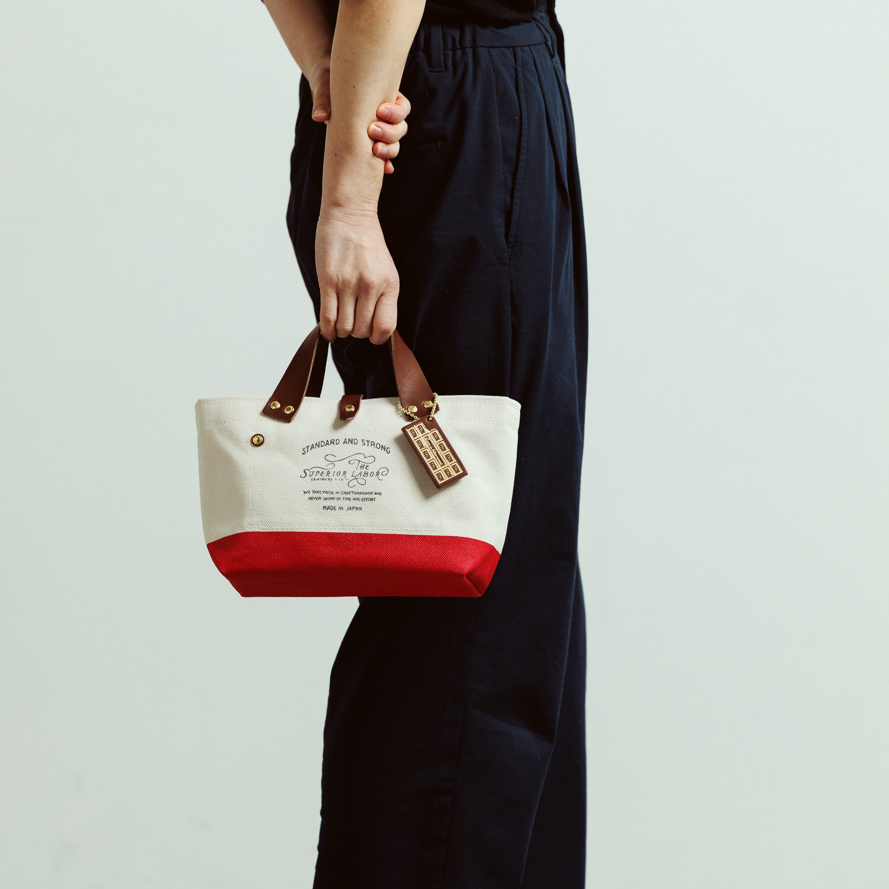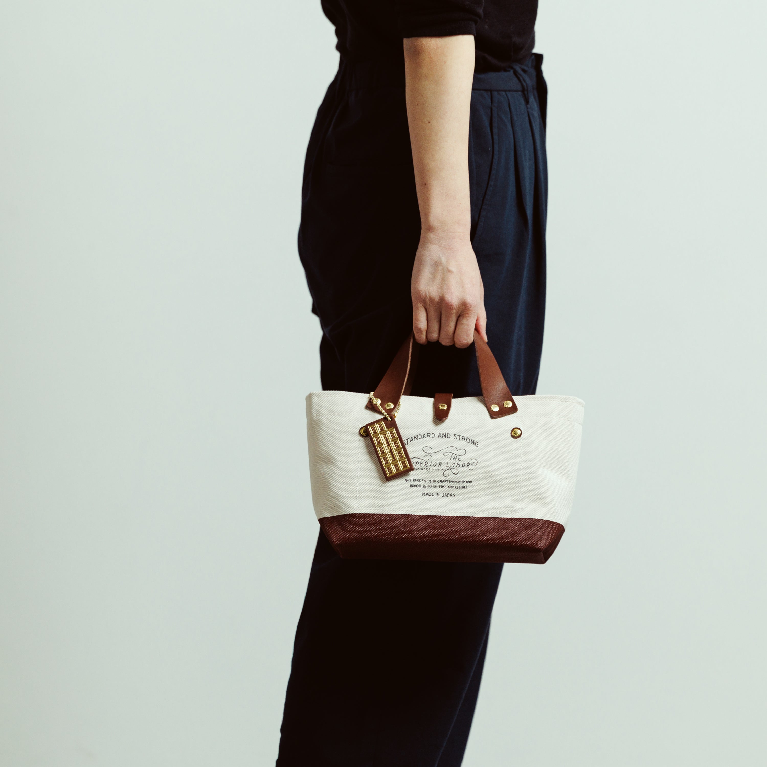 The Engineer Bag is crafted using Kurashiki-made canvas woven on shuttle looms that can produce only two rolls per day, solid brass hardware made at a small foundry in Tokyo’s downtown area, and Japanese natural vegetable-tanned leather, tanned with tannins extracted from mimosa bark.