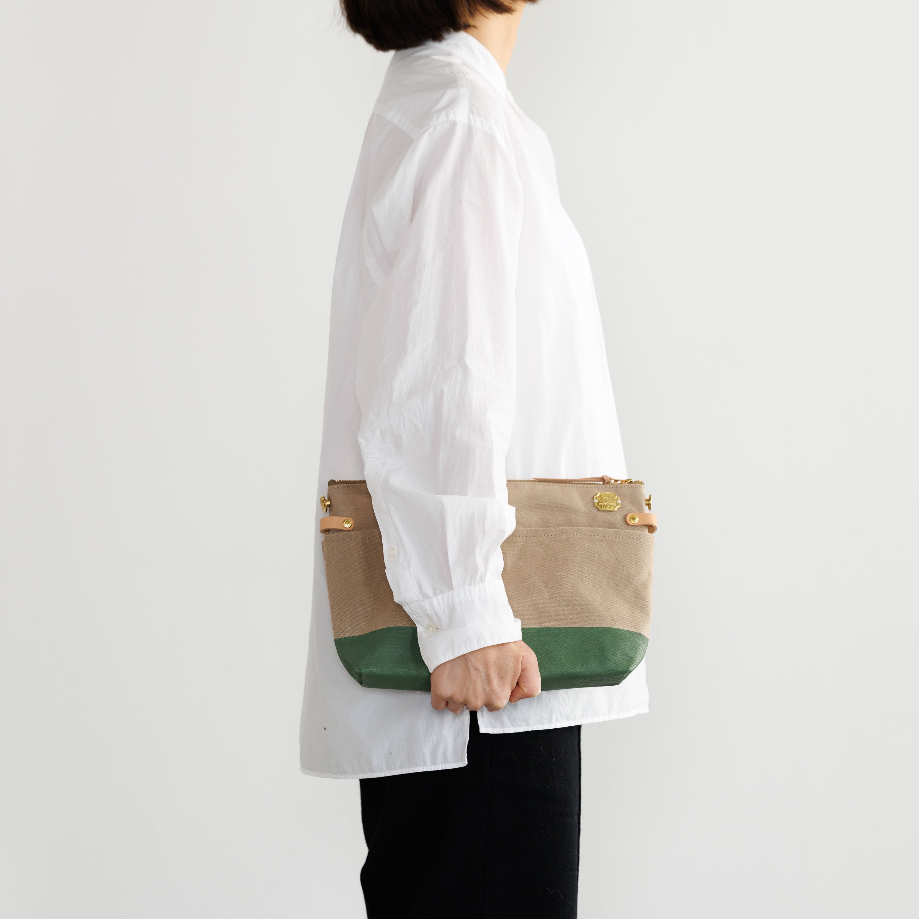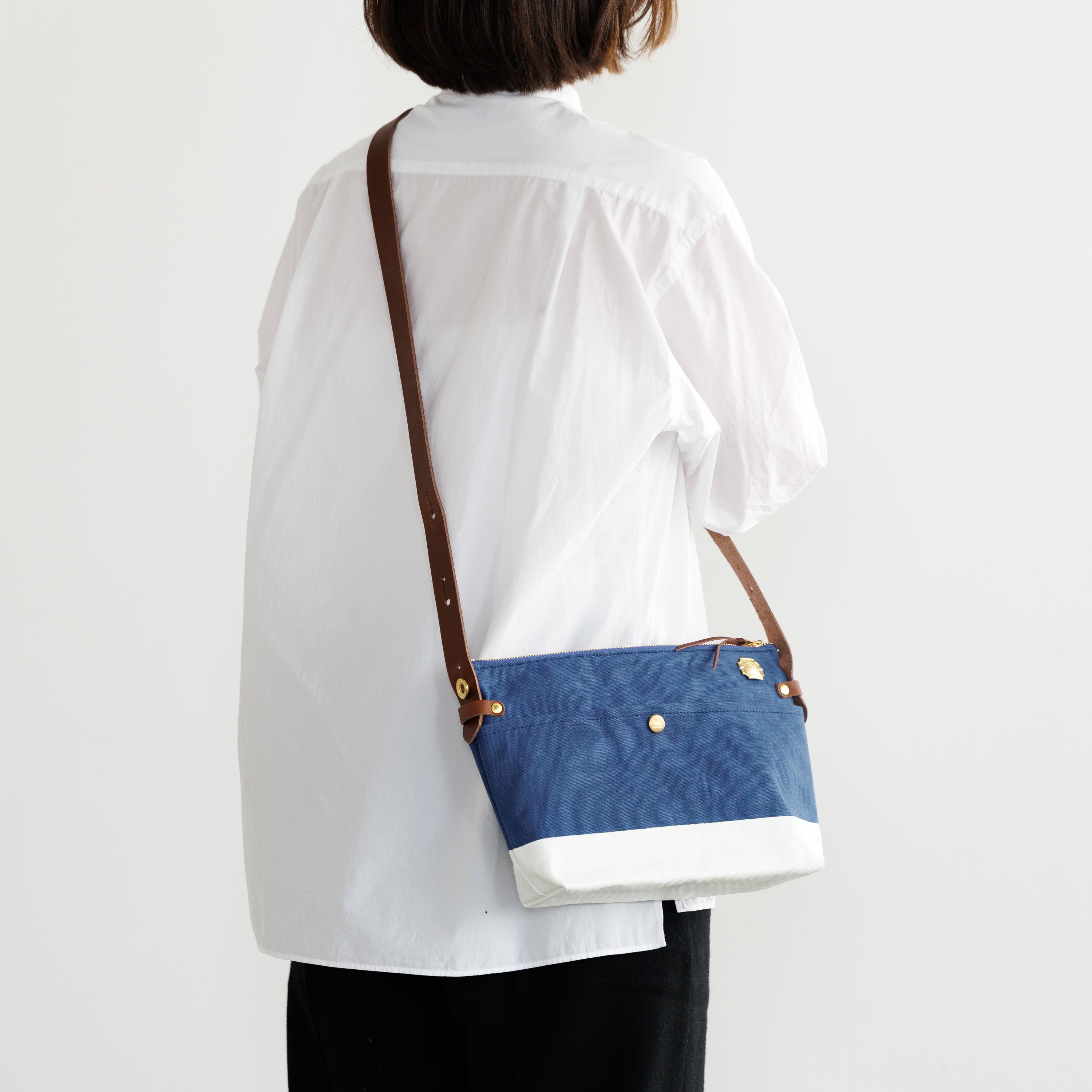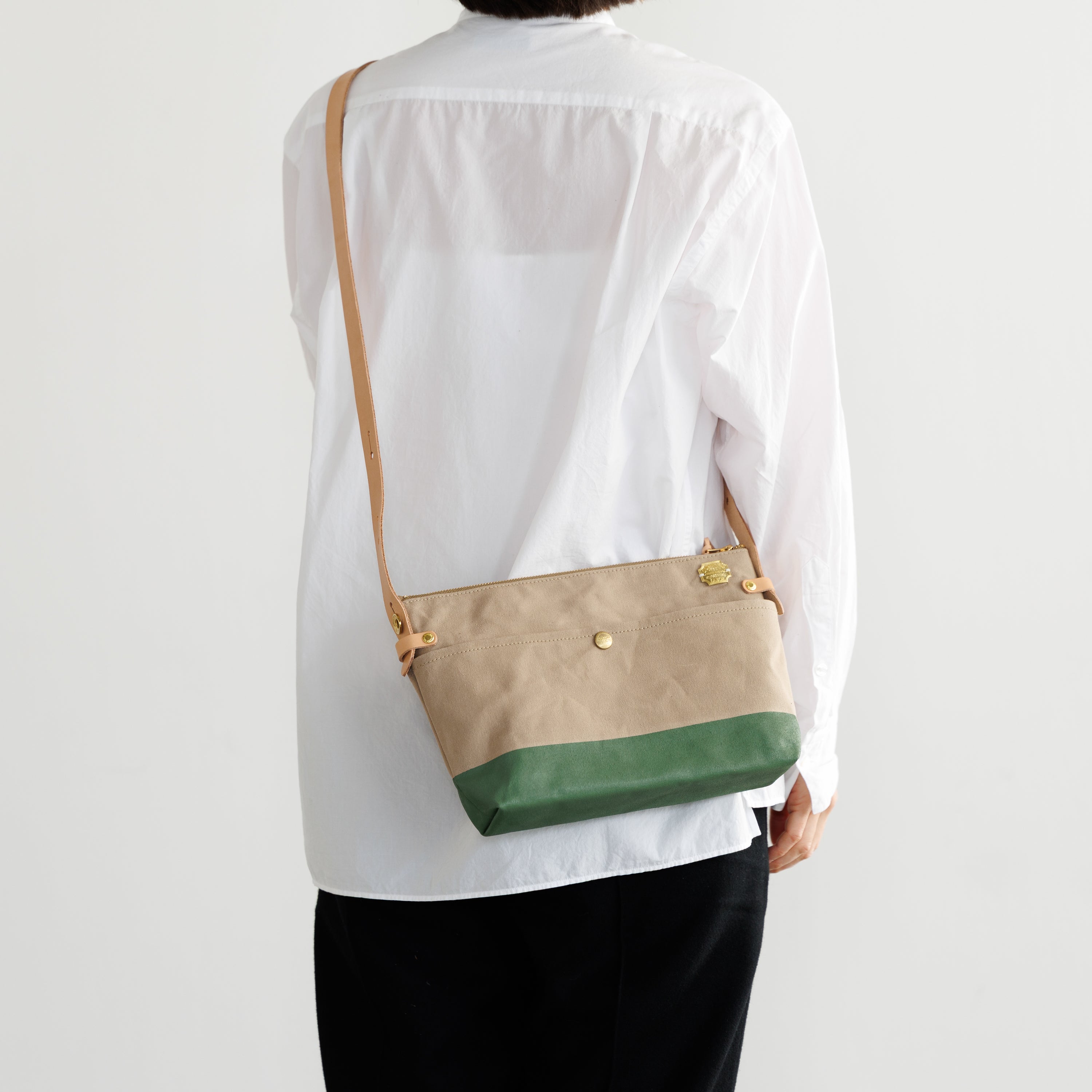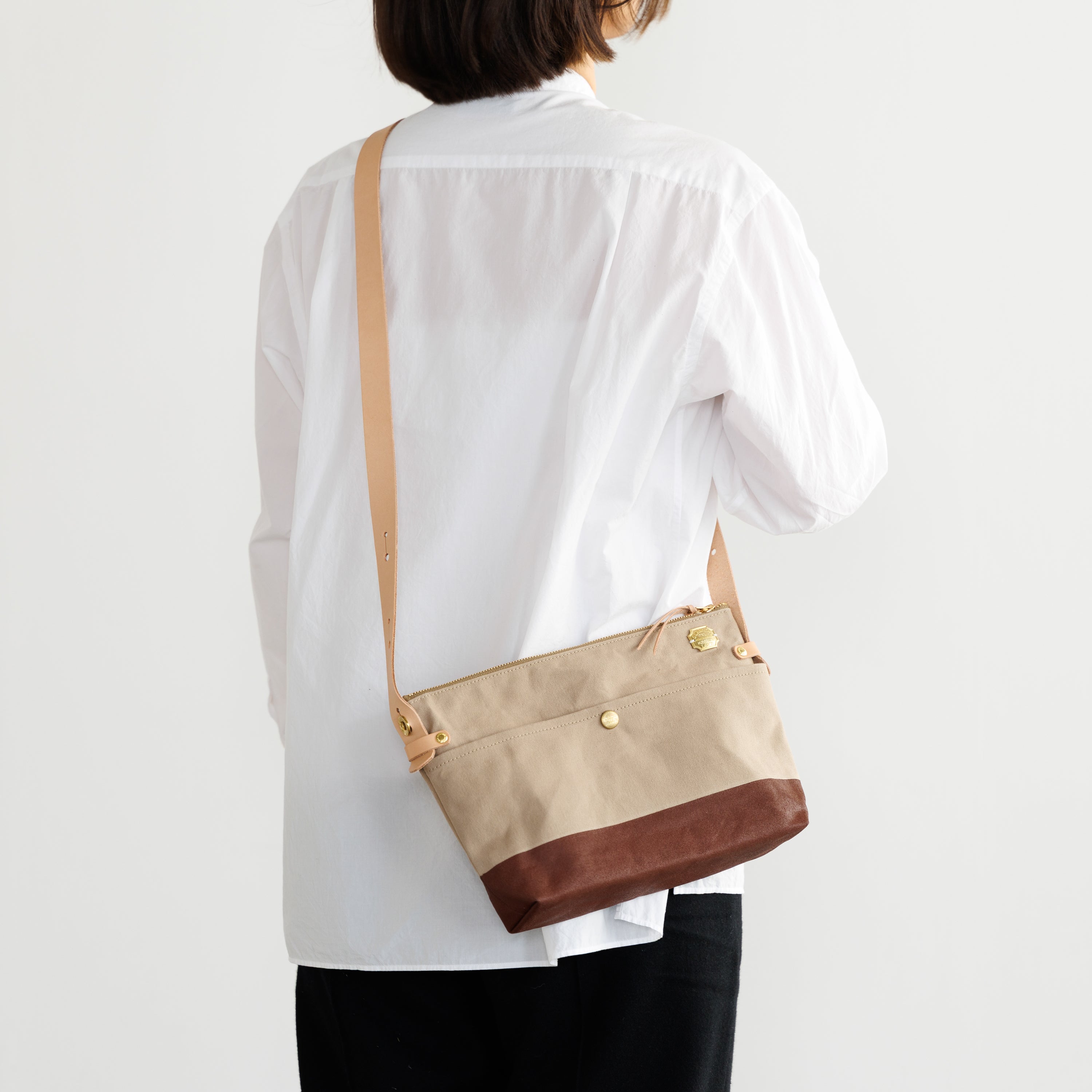 Outer pockets on both sides add storage, with a subtle stamp inspired by the streets of Kurashiki.