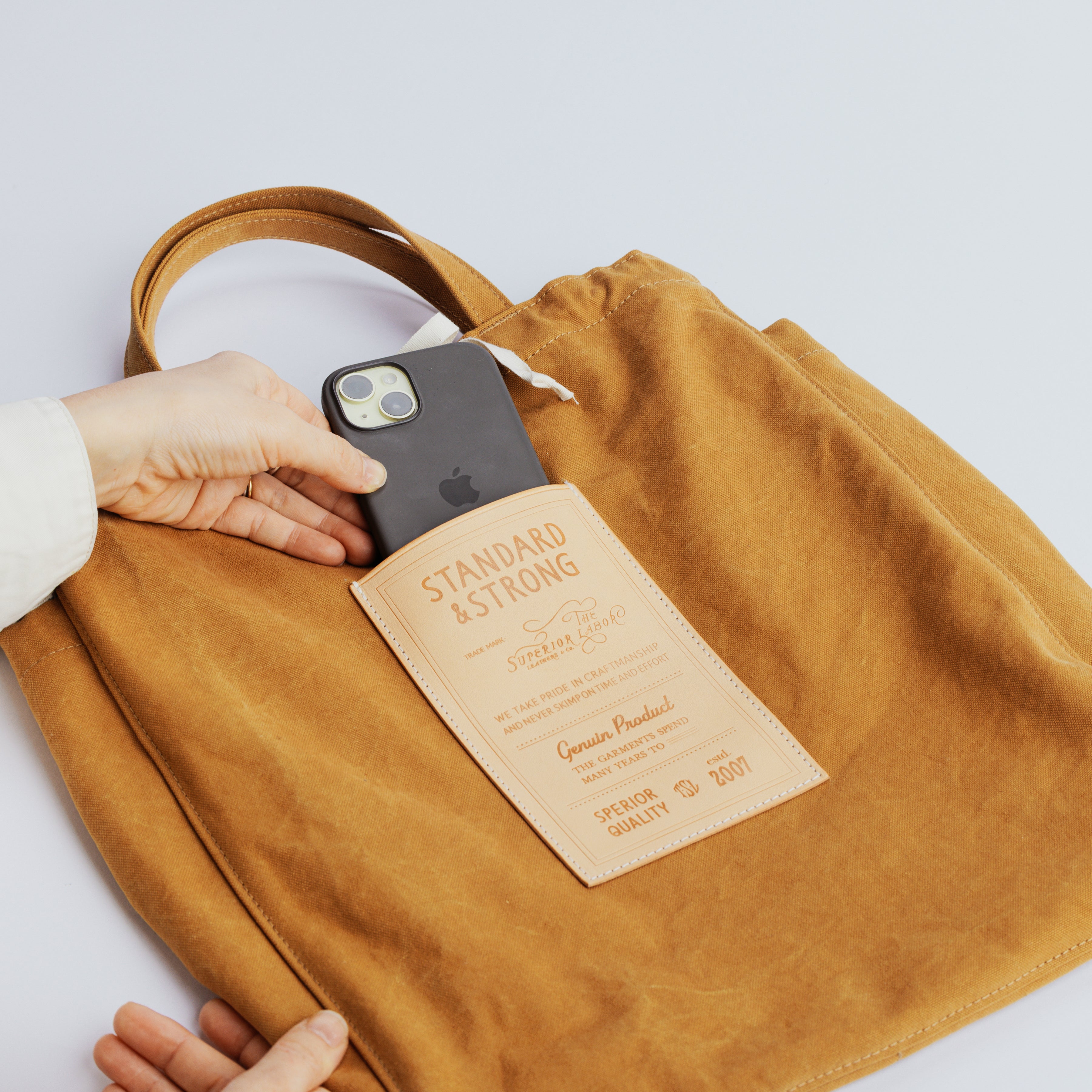 Made from high-density canvas woven in the USA, this tote bag is spacious yet easy to carry.