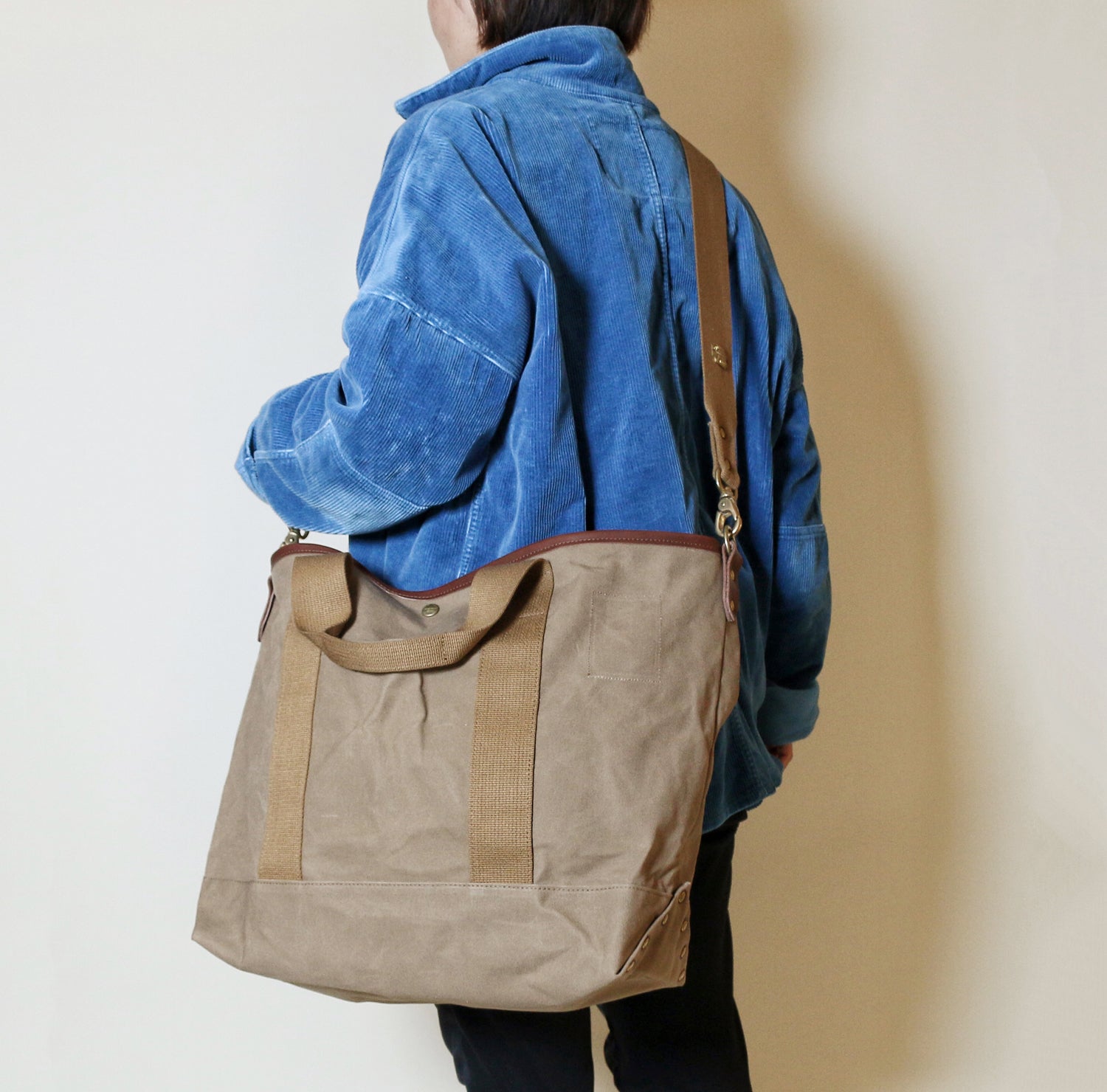 This work-style 2-way tote bag has been reconstructed to be stronger and lighter.