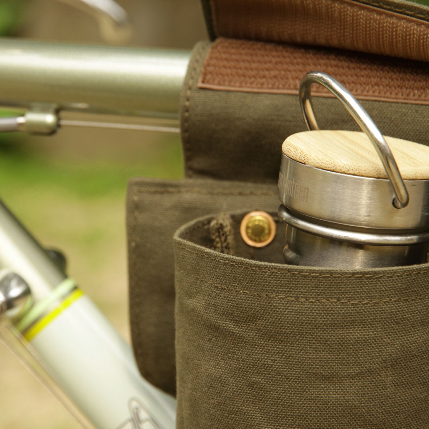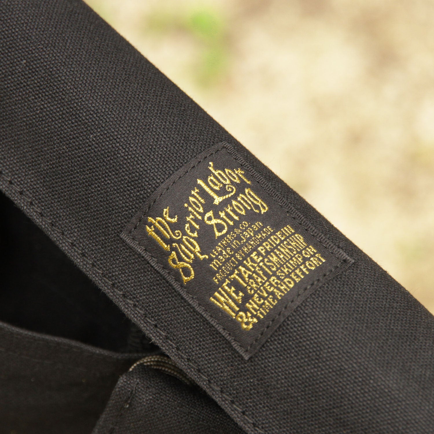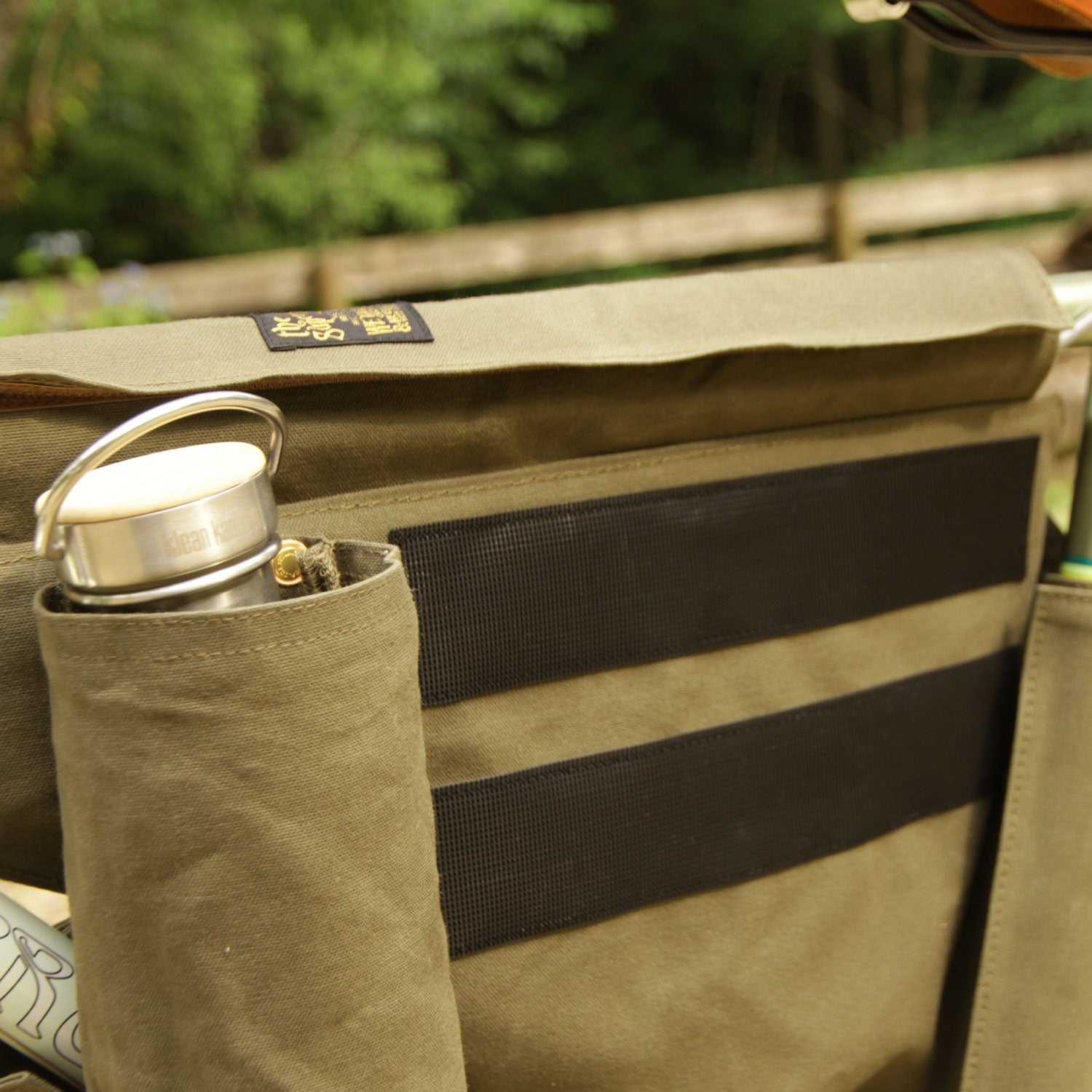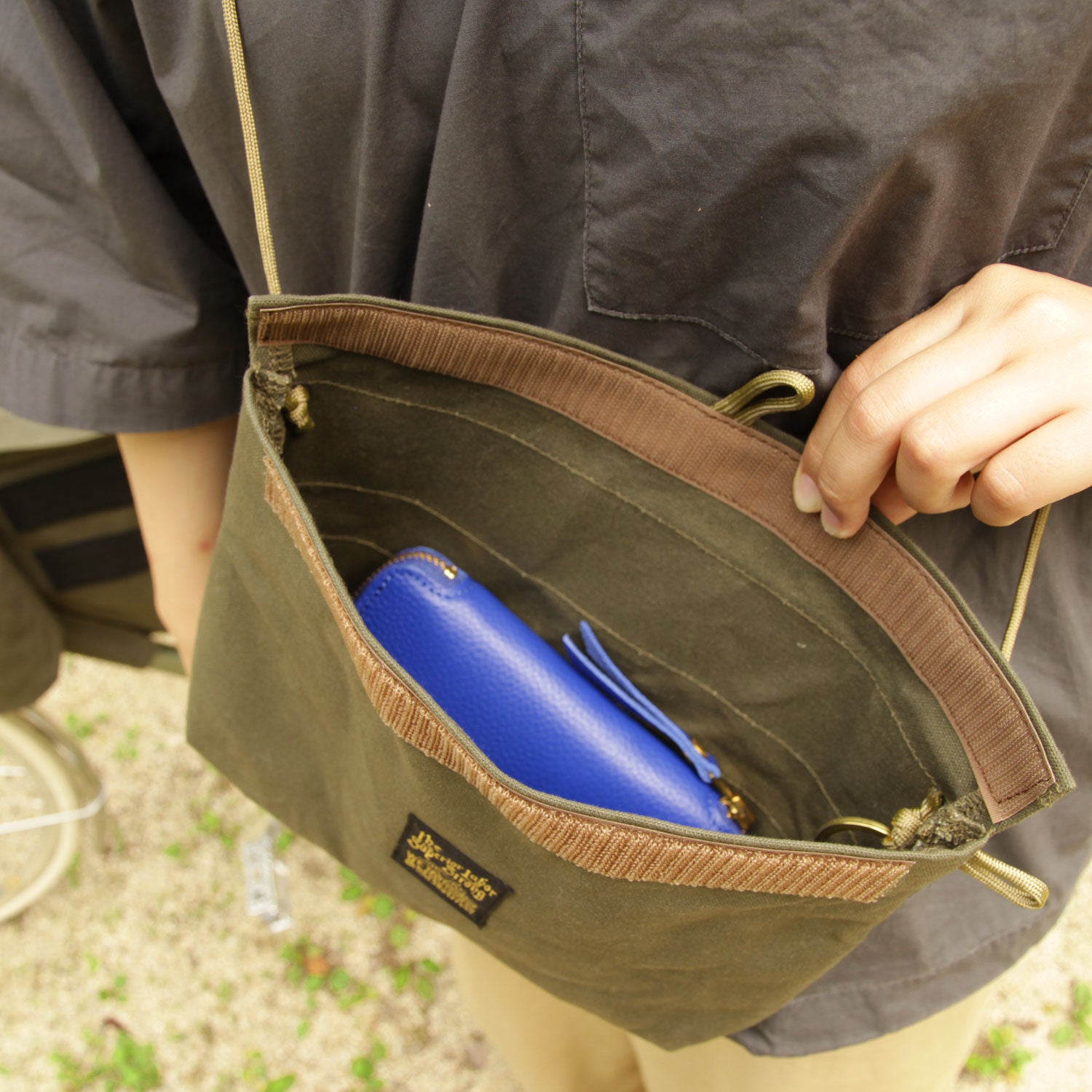 Made of paraffin canvas, it comes with a sakosh-type bag on the left and right sides and a bottle holder on the left side. The left side bag can be detached for carrying.