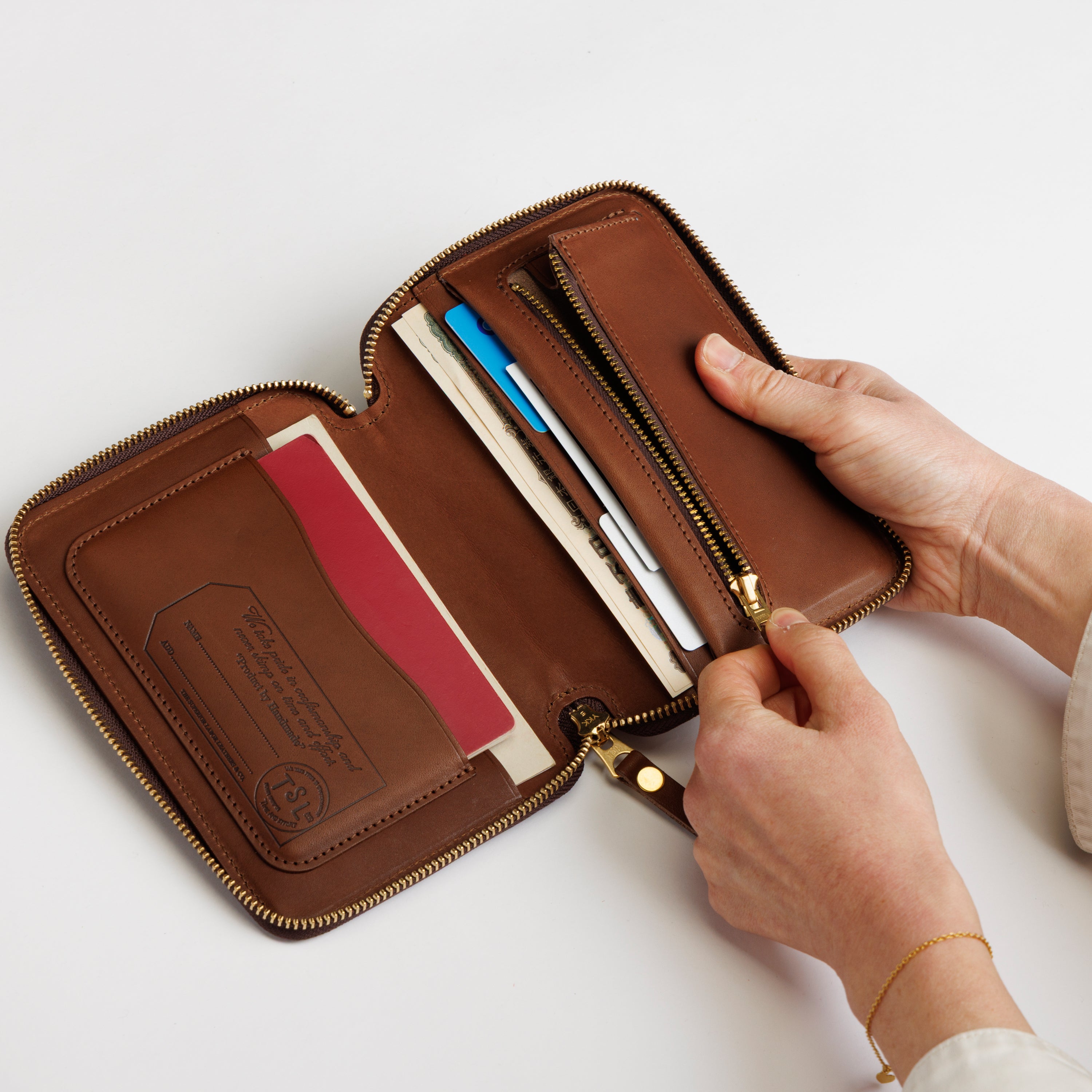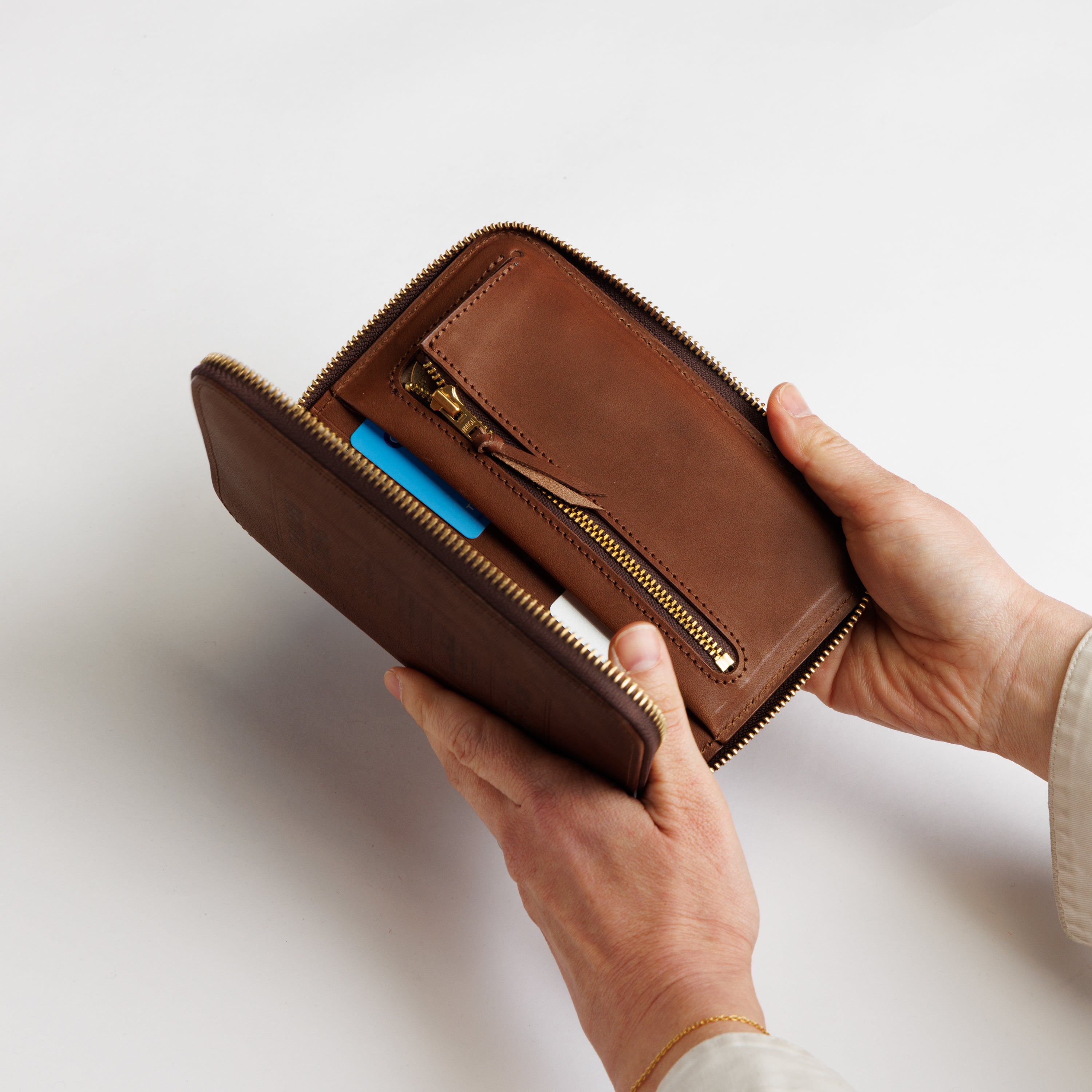Inside, you’ll find compartments designed to neatly organize cards, coins, and small essentials—making it ideal as both a stationery case and a wallet.