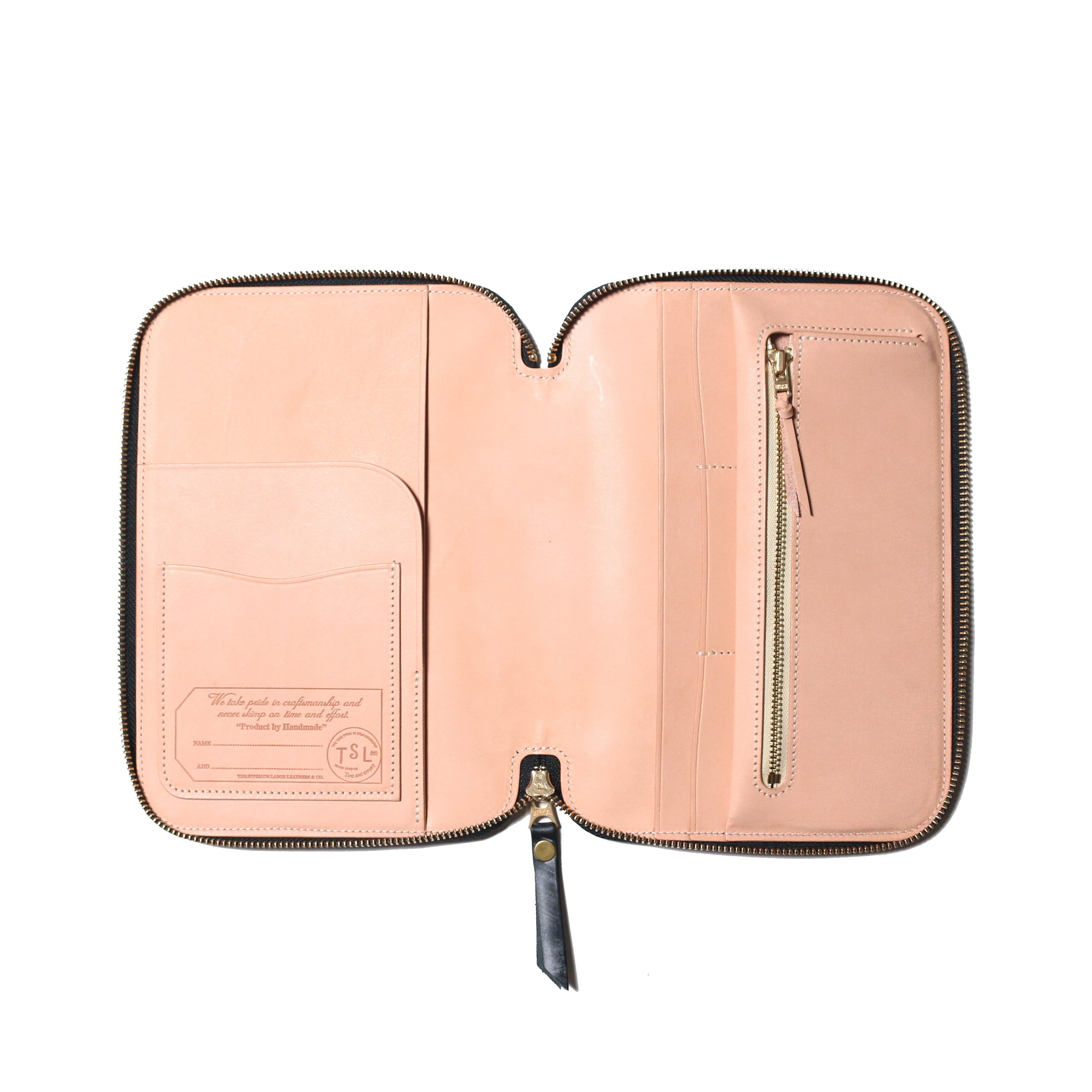 ラウンドファスナータイプで、全てあけるとフラットに開きます。