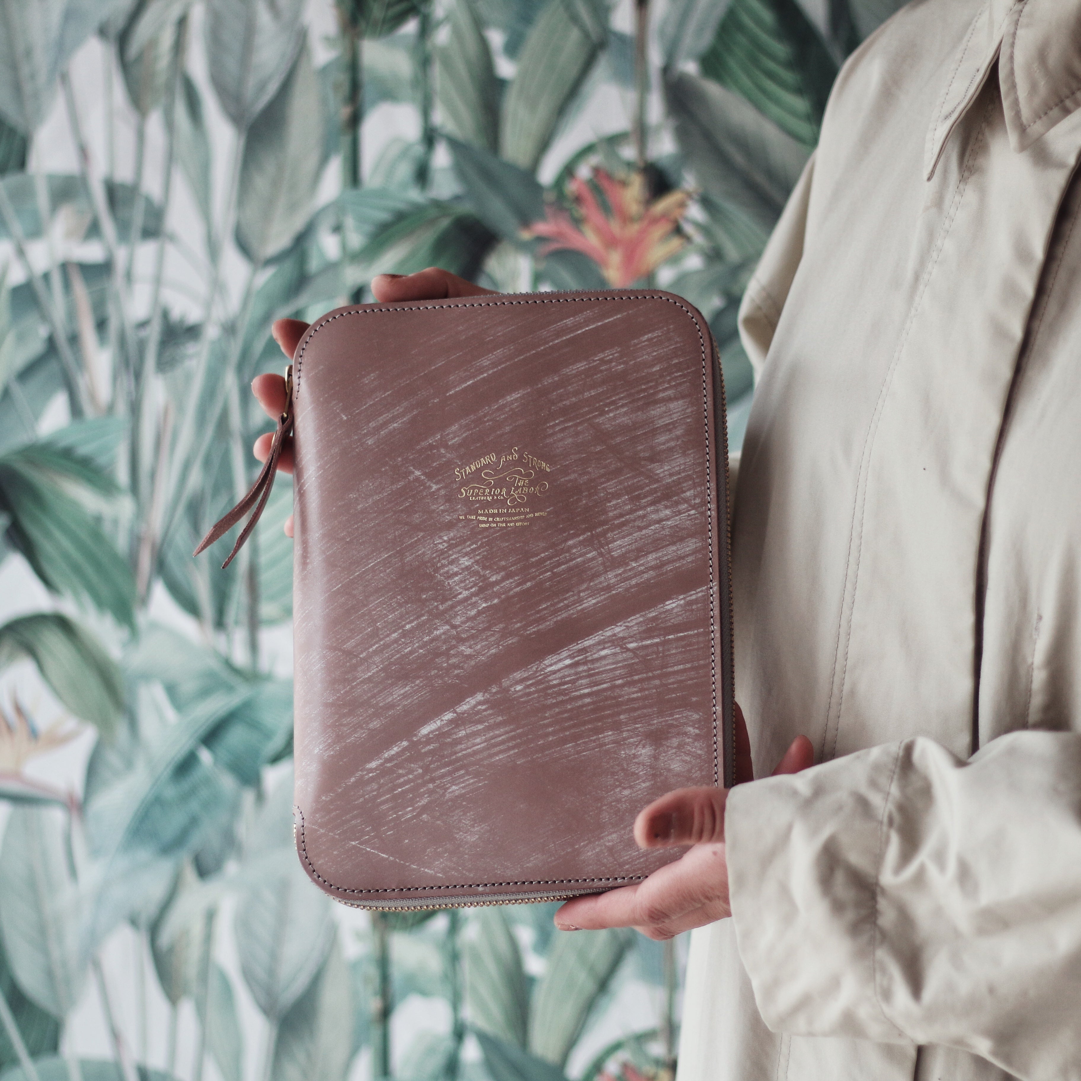 ブライドルレザーの象徴は、この塗り込んだオイルとロウによって革表面に出てくる