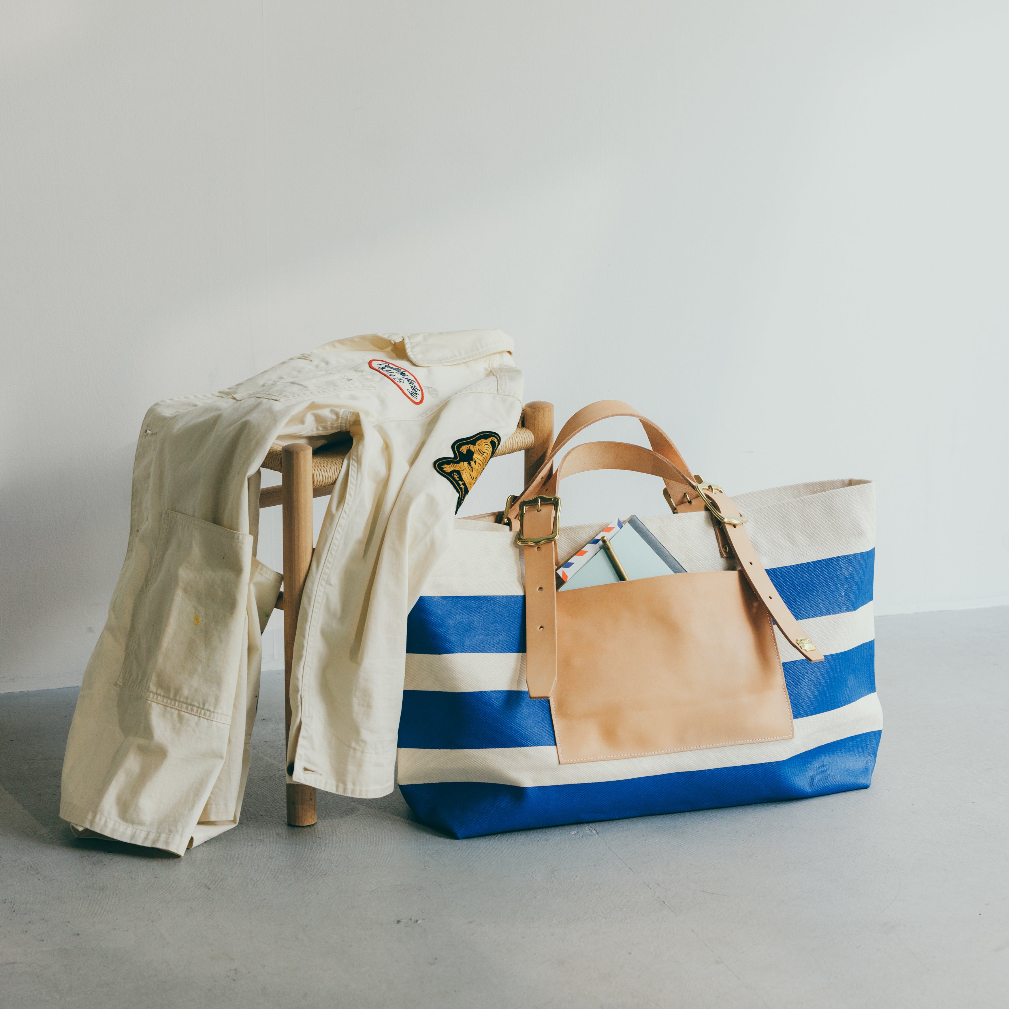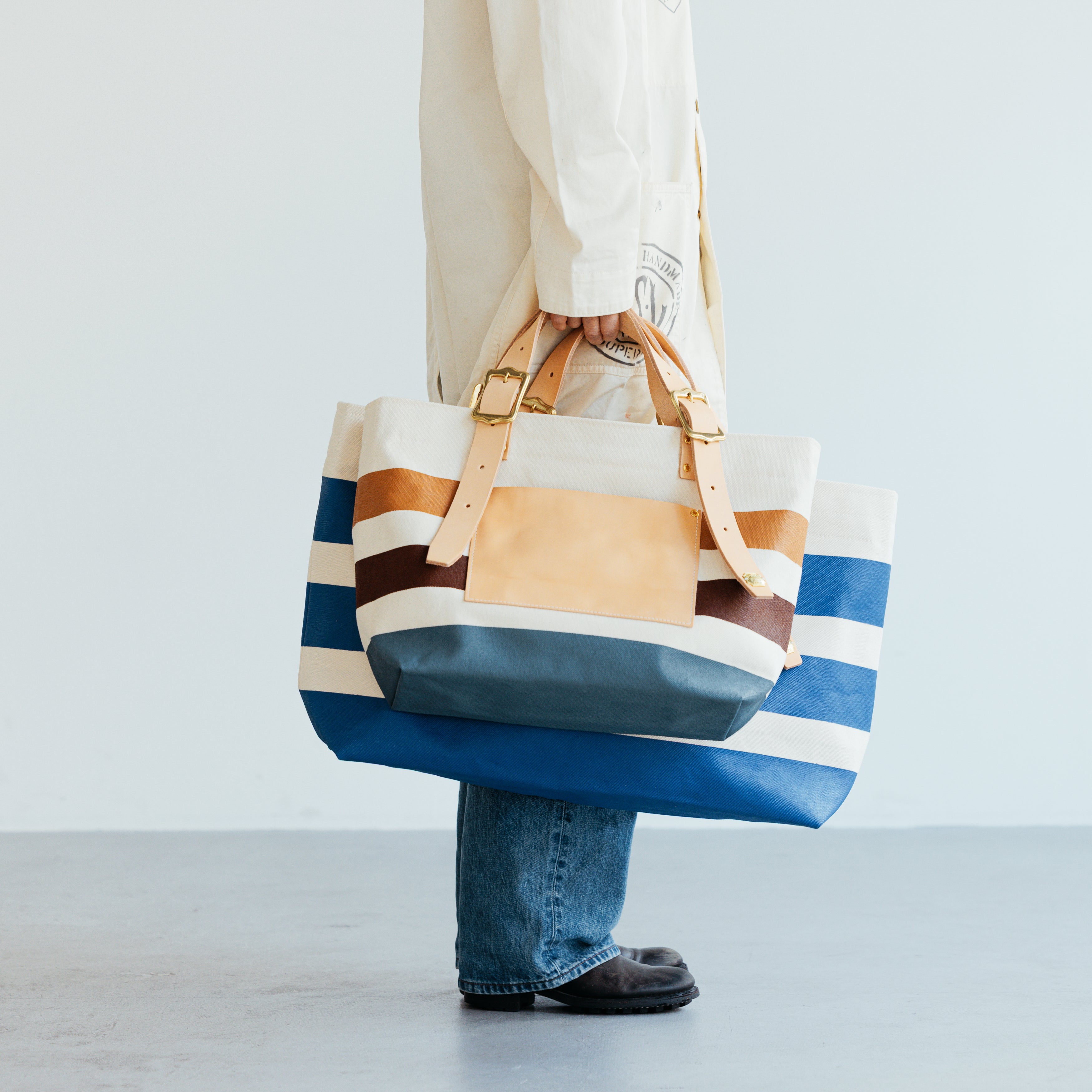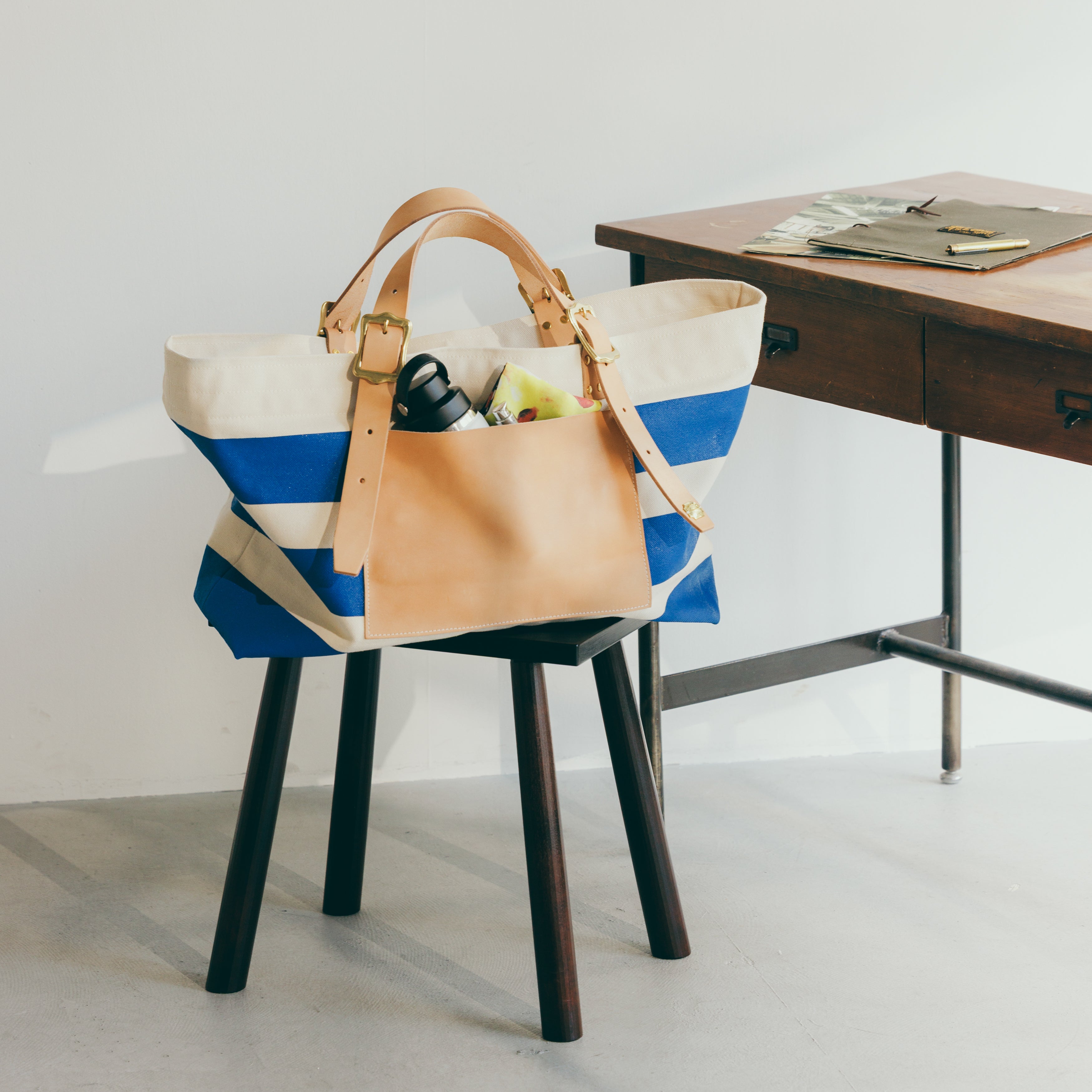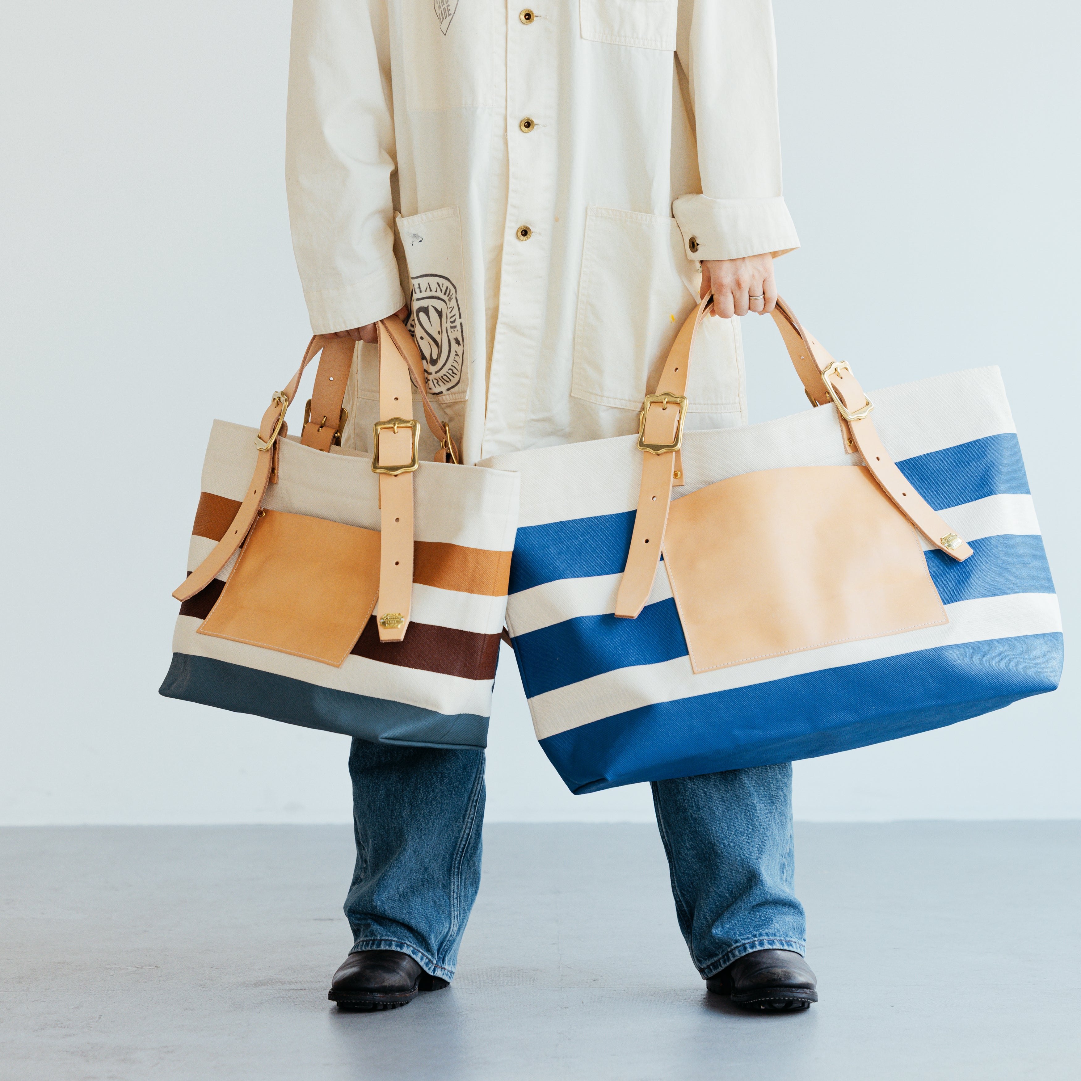 シャトル織機で一日2反しか織ることのできない倉敷産帆布や、東京下町の鋳物工場で作られた真鍮金具、そして、ミモザの樹皮から抽出されたタンニンでなめされた国産のヌメ革。