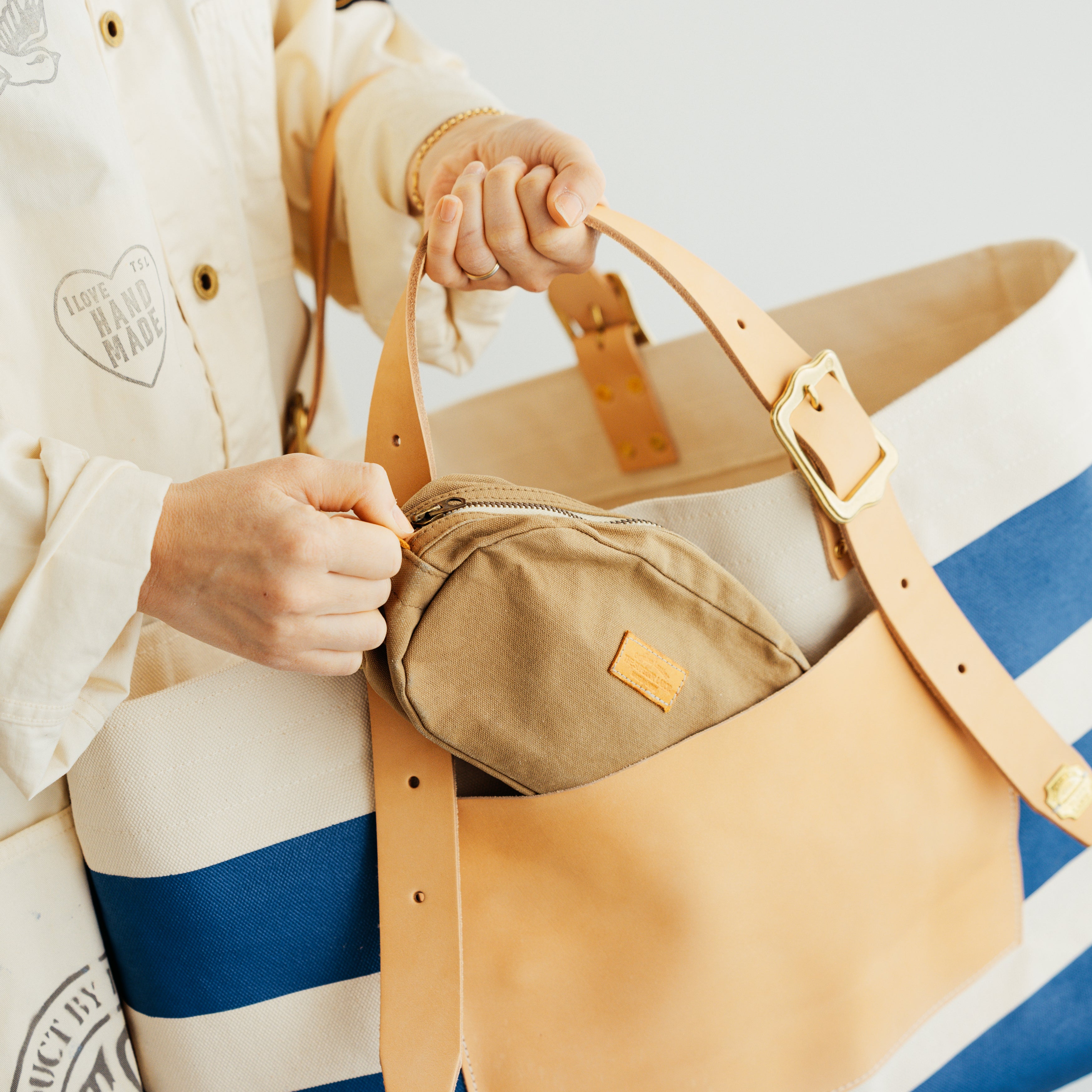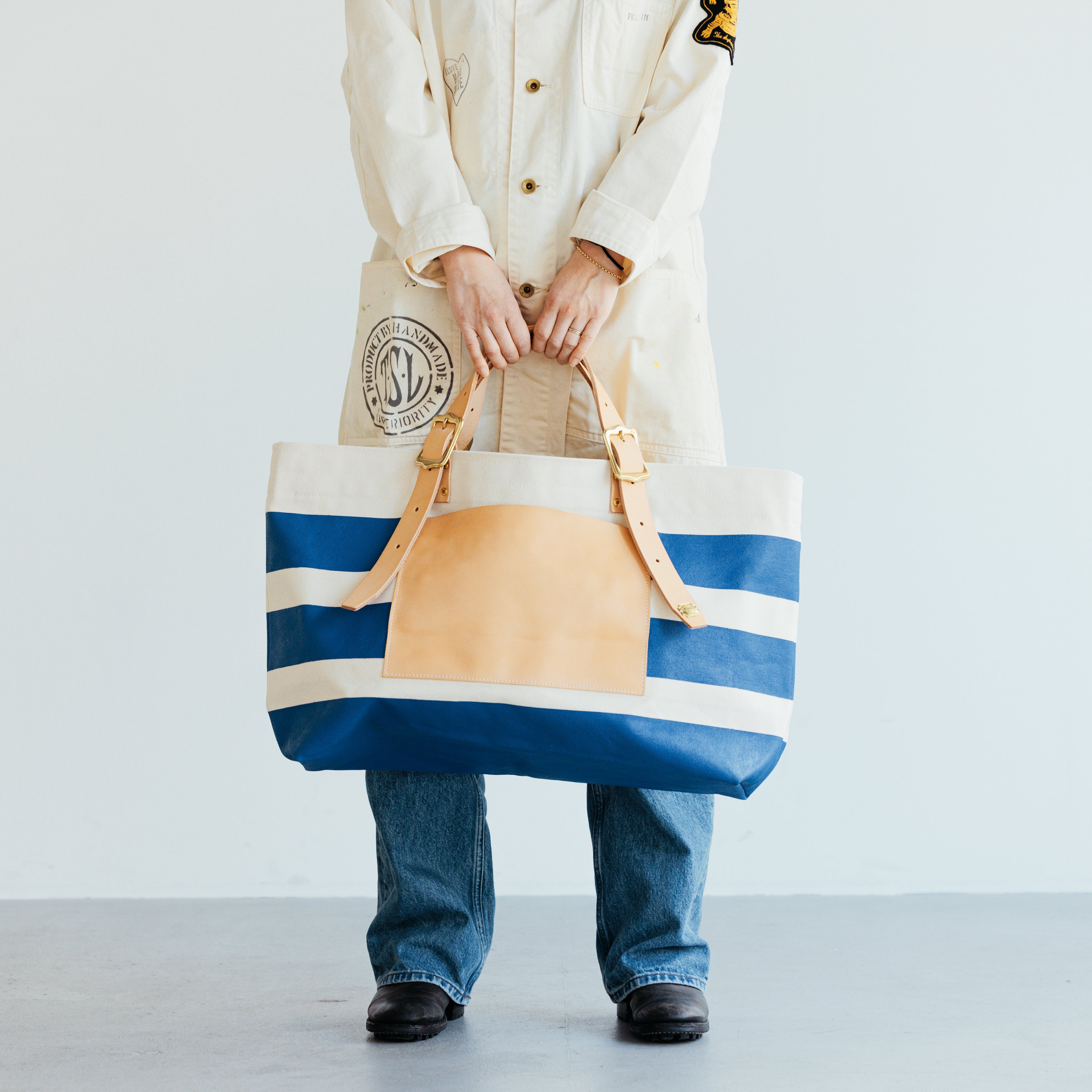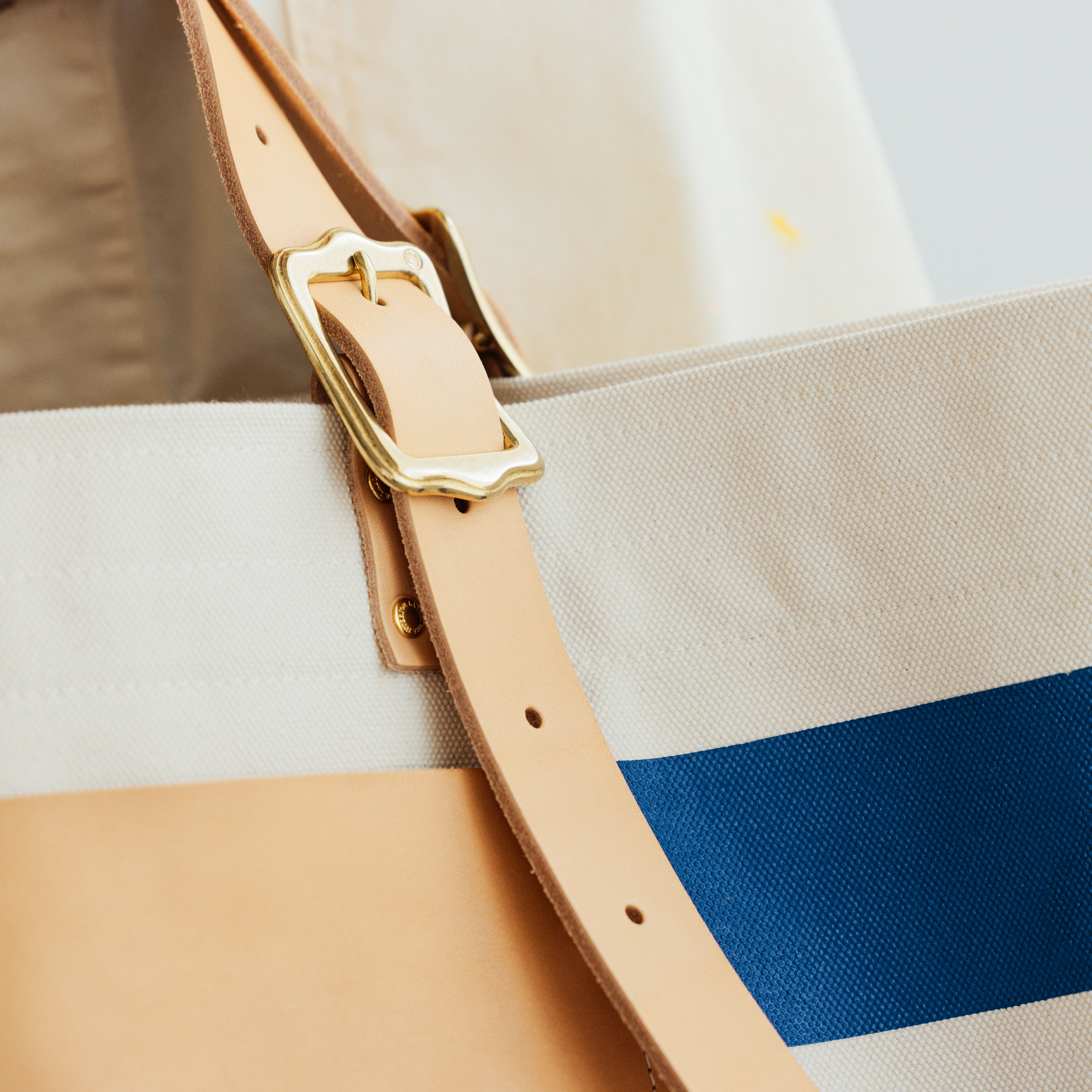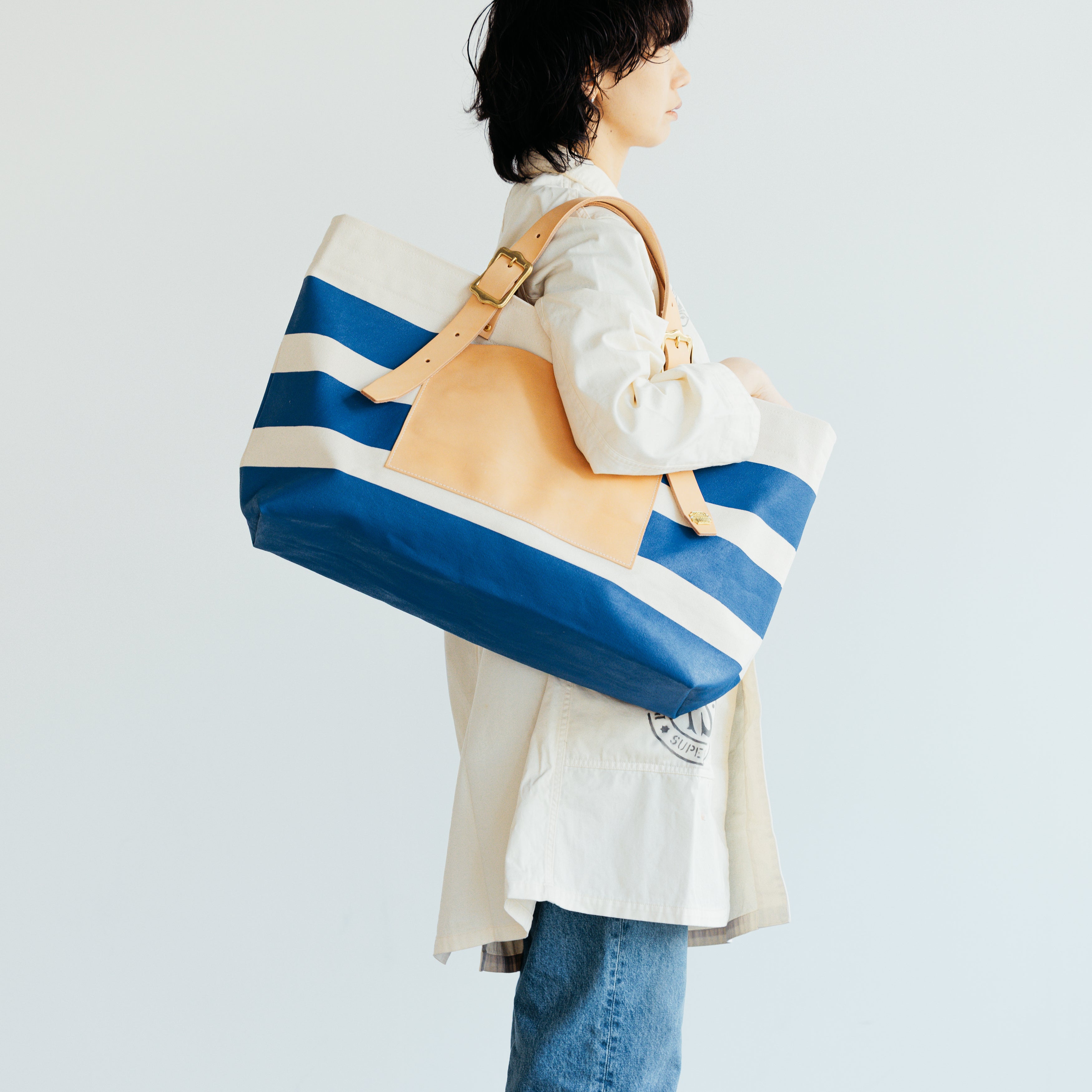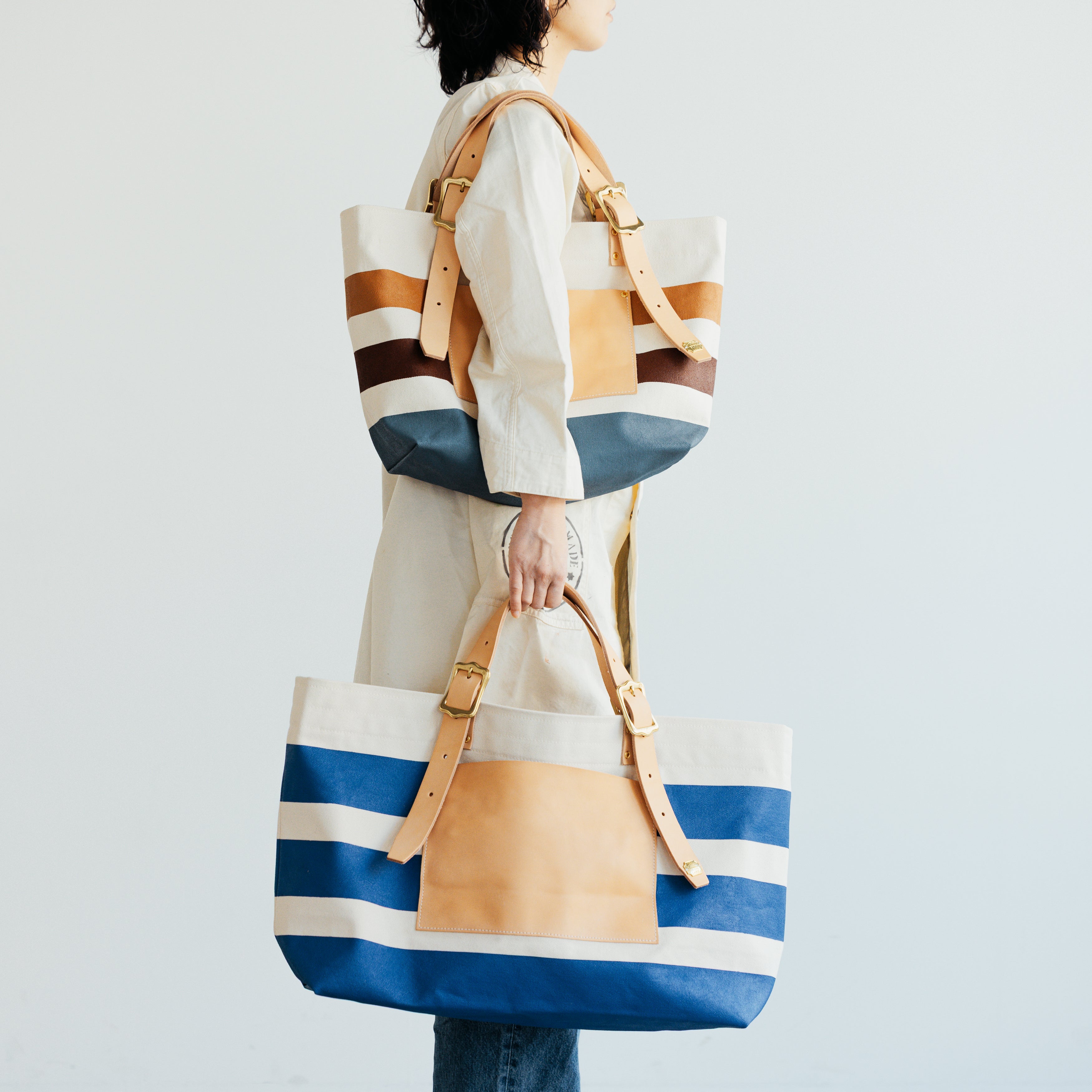 シャトル織機で一日2反しか織ることのできない倉敷産帆布や、東京下町の鋳物工場で作られた真鍮金具、そして、ミモザの樹皮から抽出されたタンニンでなめされた国産のヌメ革。