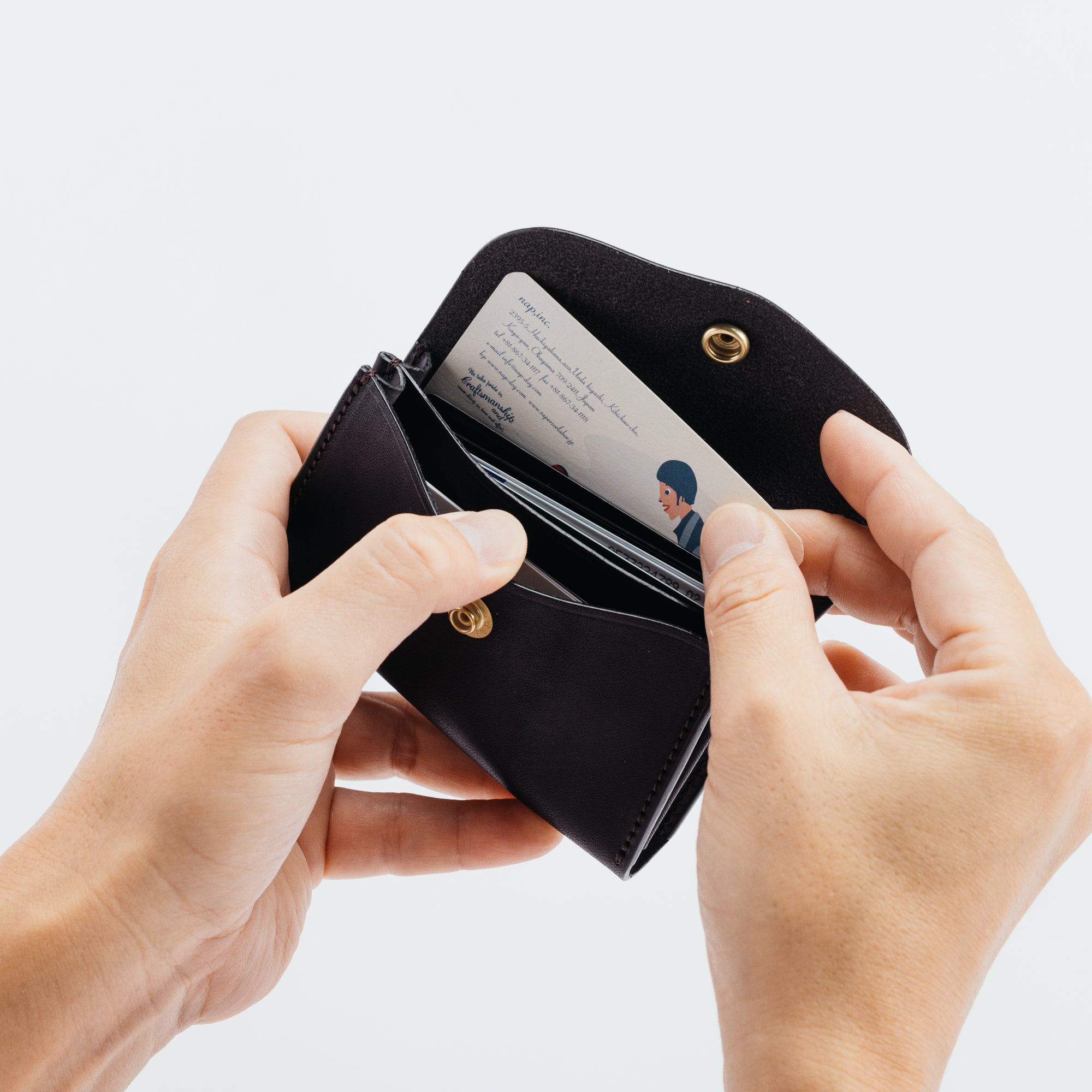 ベリーと呼ばれる繊維の粗い部位を落とした上質部位のみを鞣し、たっぷりとオイルを入れたオリジナルレザーを使用した手に収まりの良いcard case 。