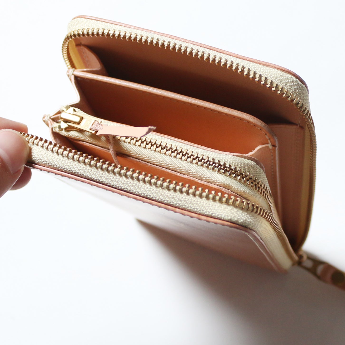 - 使用している革は天然皮革です。 破れや裂けに繋がる傷は使用していませんが、もともと革にある傷やしわは素材の特徴として商品に使用しています。 また、同じ革でも色味や厚み、風合いに個体差がございます。