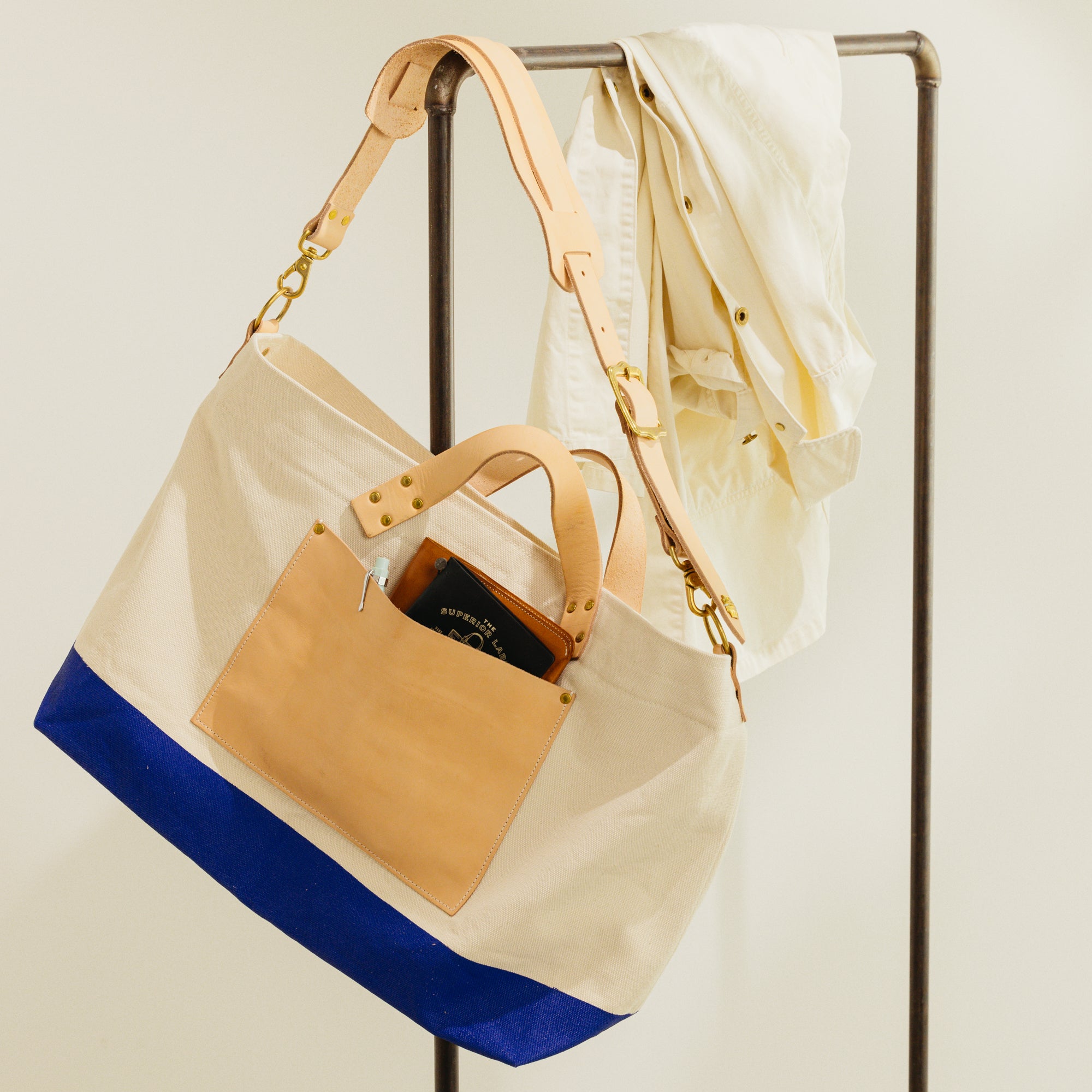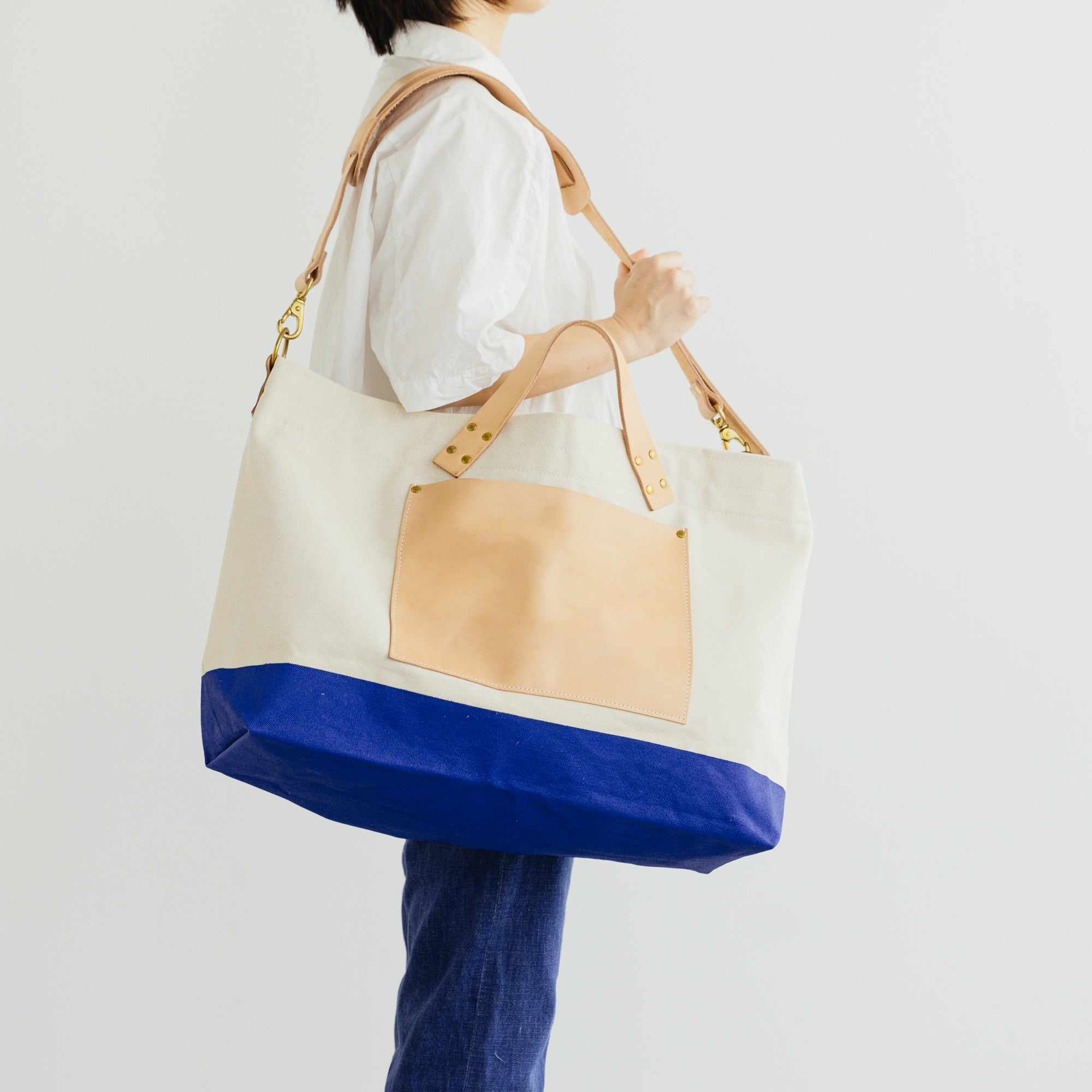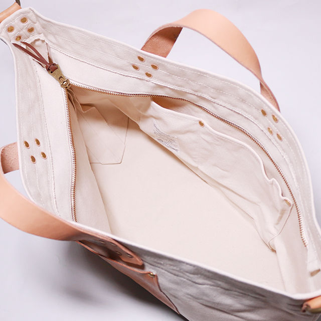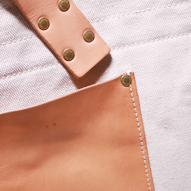シャトル織機で一日2反しか織ることのできない倉敷産帆布や、東京下町の鋳物工場で作られた真鍮金具、そして、ミモザの樹皮から抽出されたタンニンでなめされた国産のヌメ革。