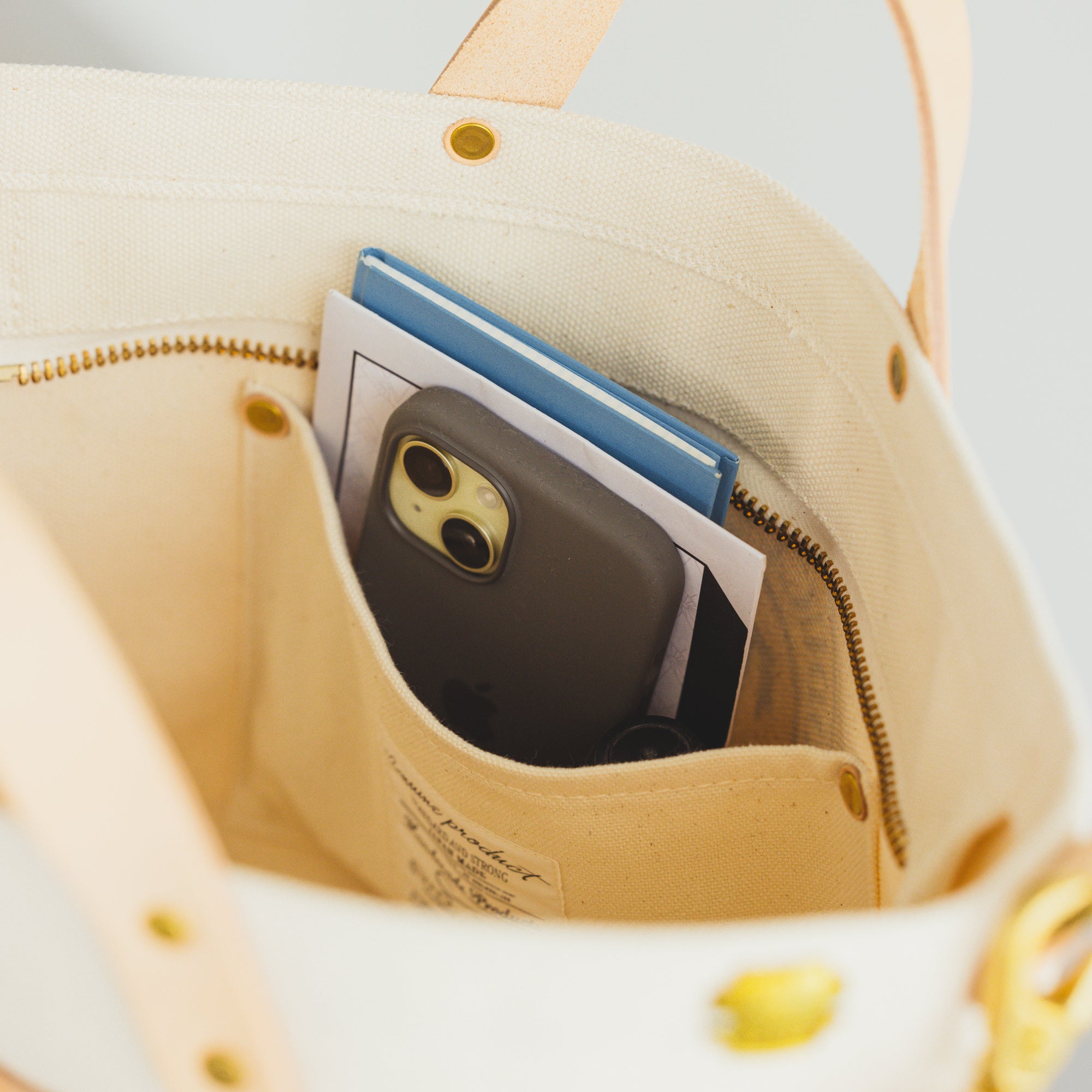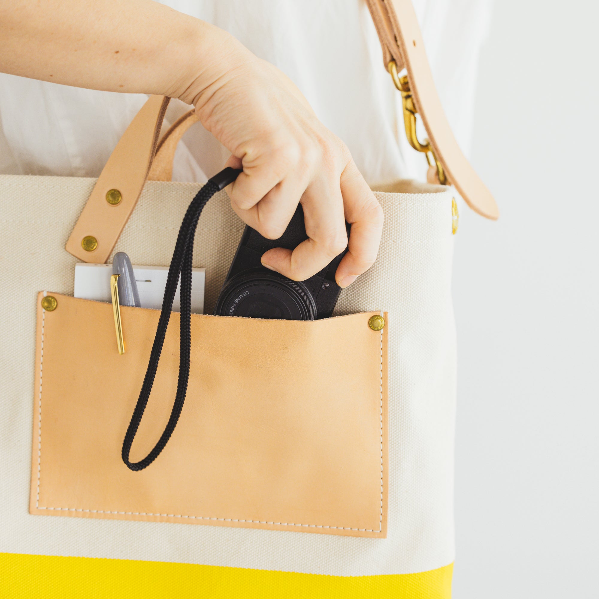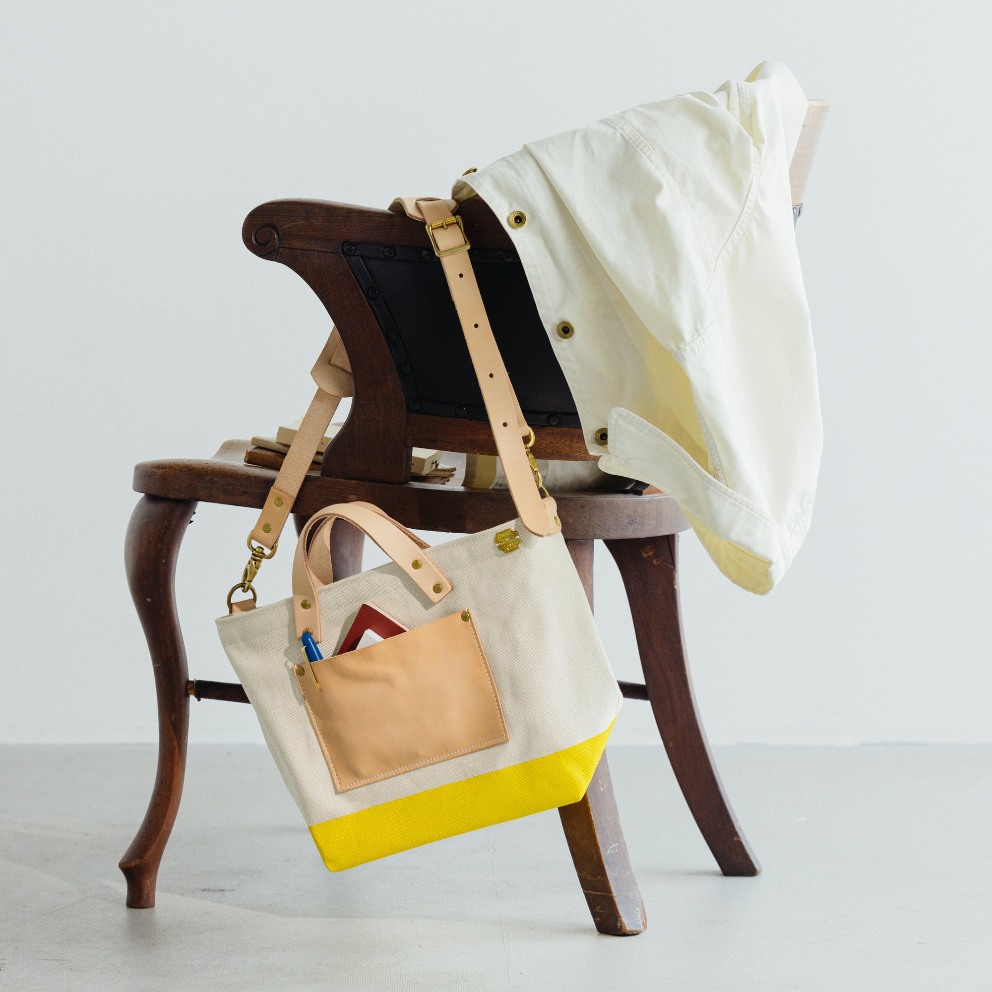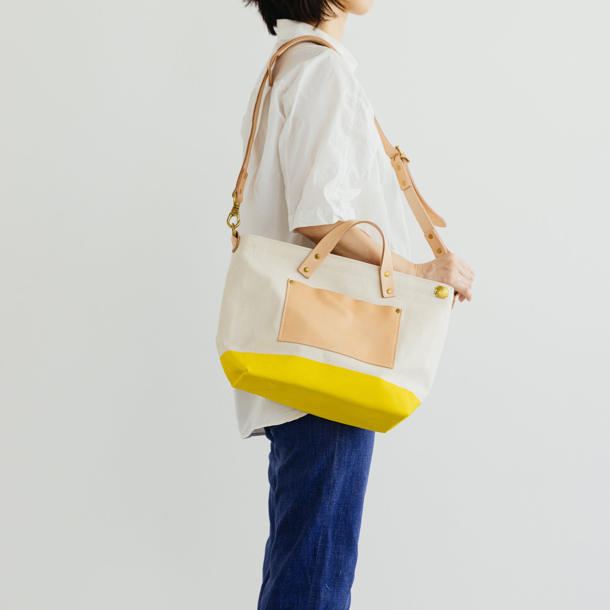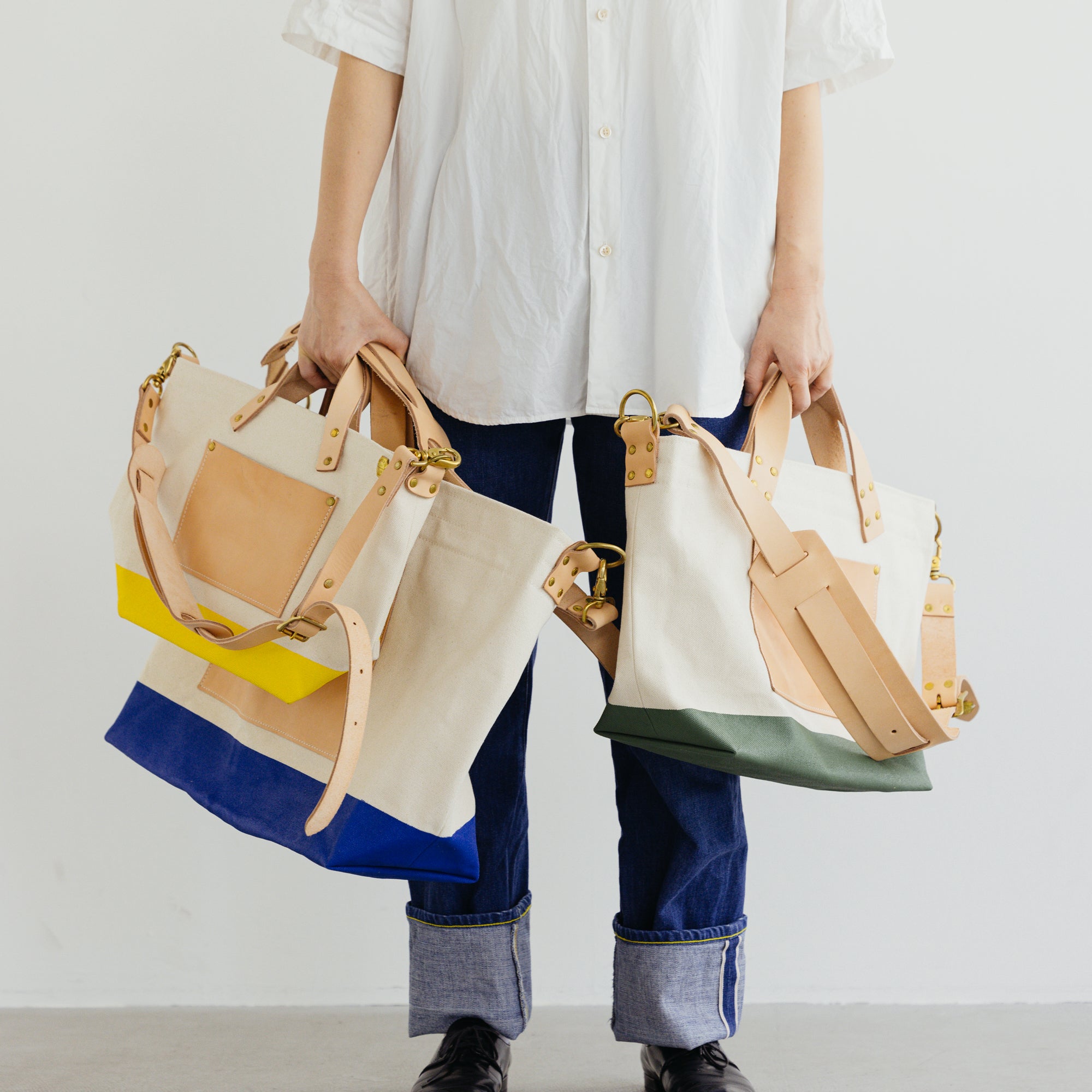 シャトル織機で一日2反しか織ることのできない倉敷産帆布や、東京下町の鋳物工場で作られた真鍮金具、そして、ミモザの樹皮から抽出されたタンニンでなめされた国産のヌメ革。