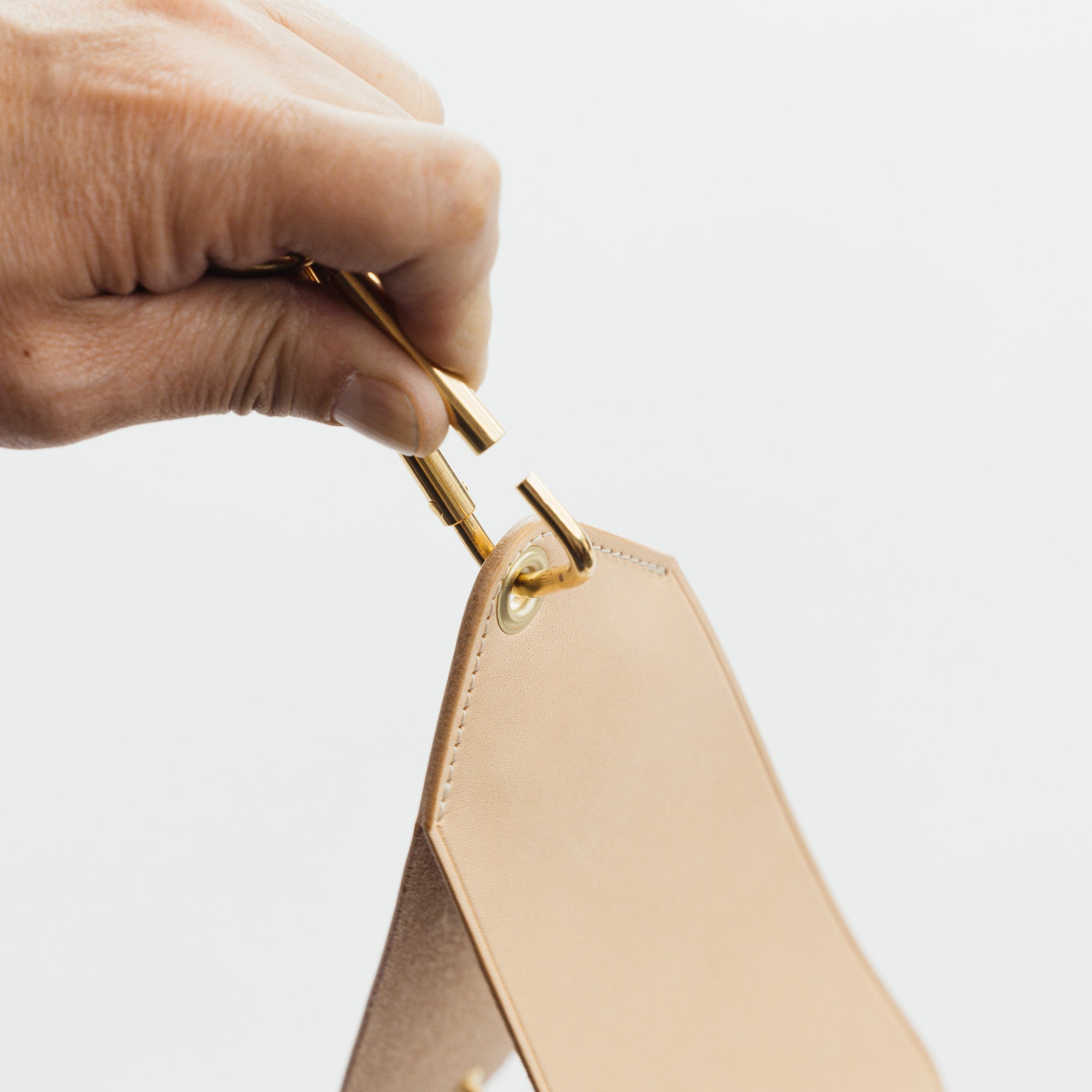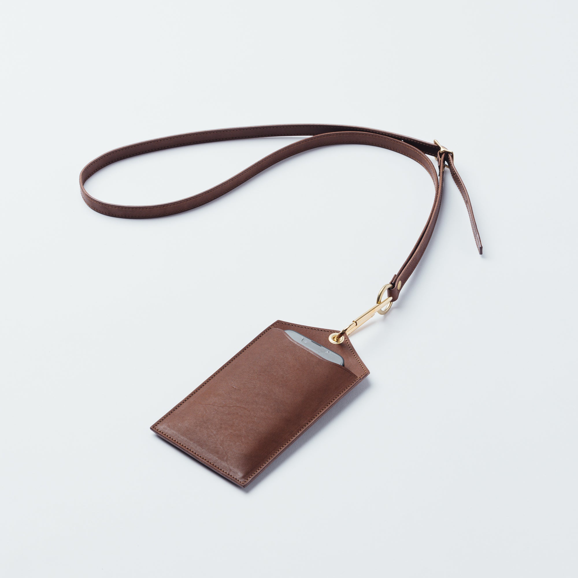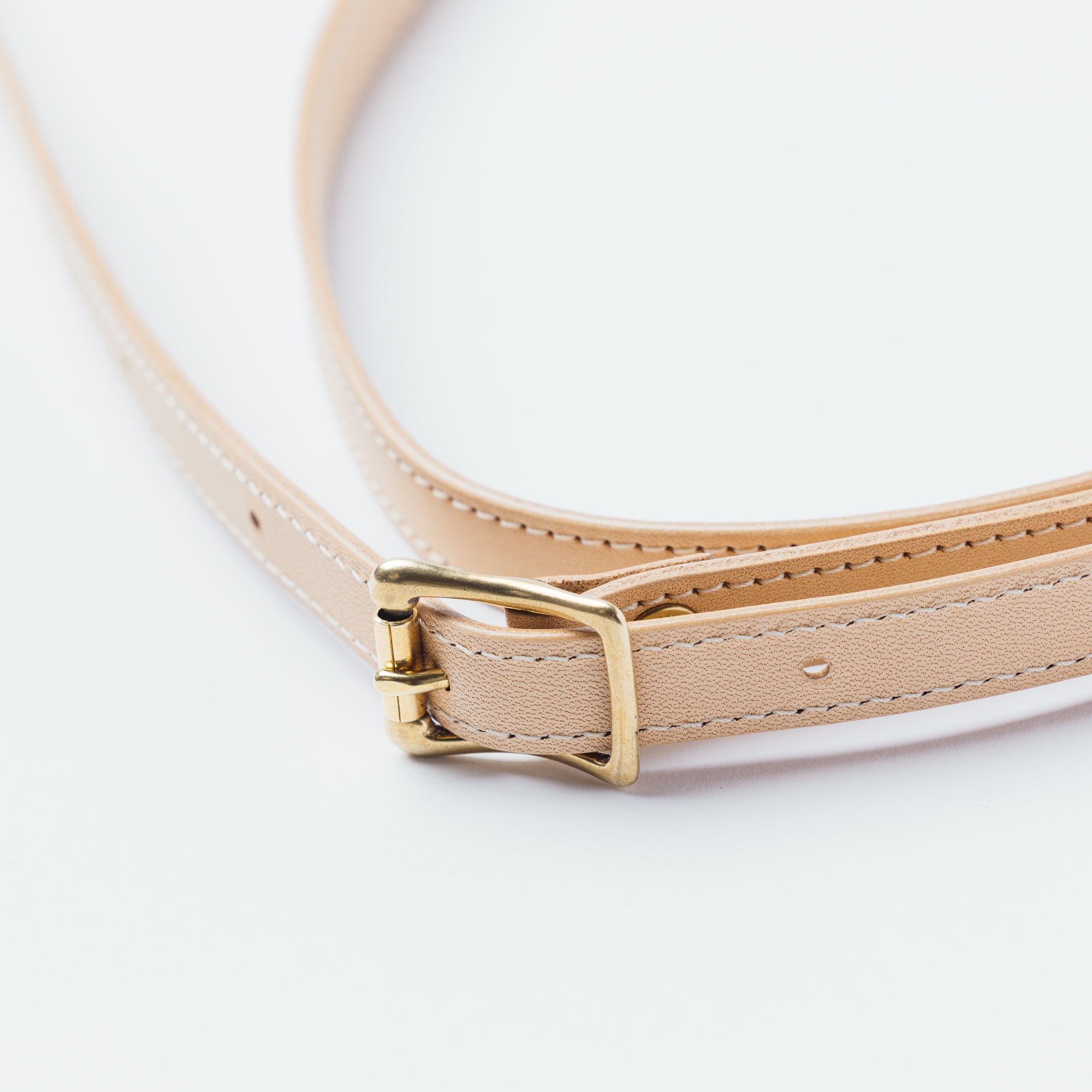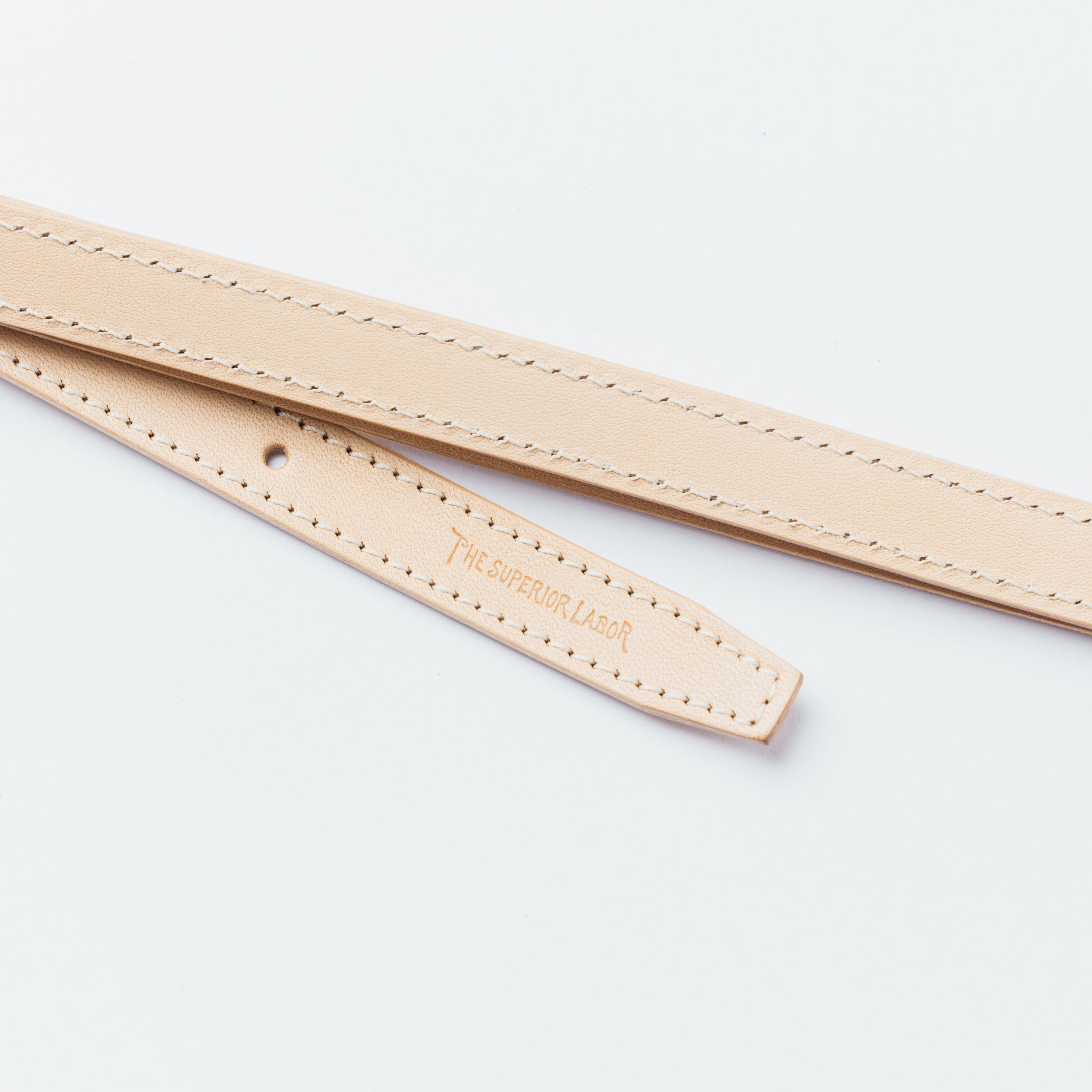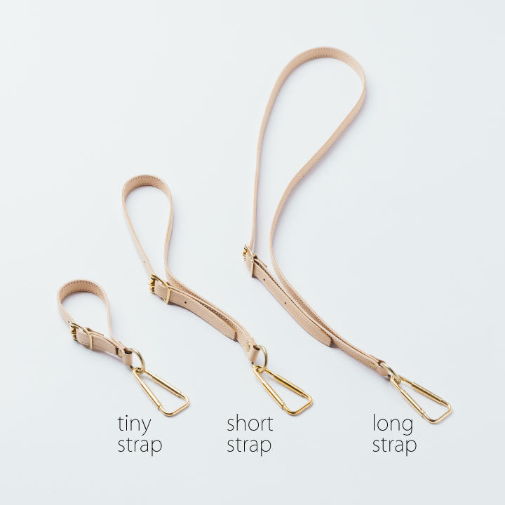 国産ヌメ革を貼り合わせて作ったストラップ。