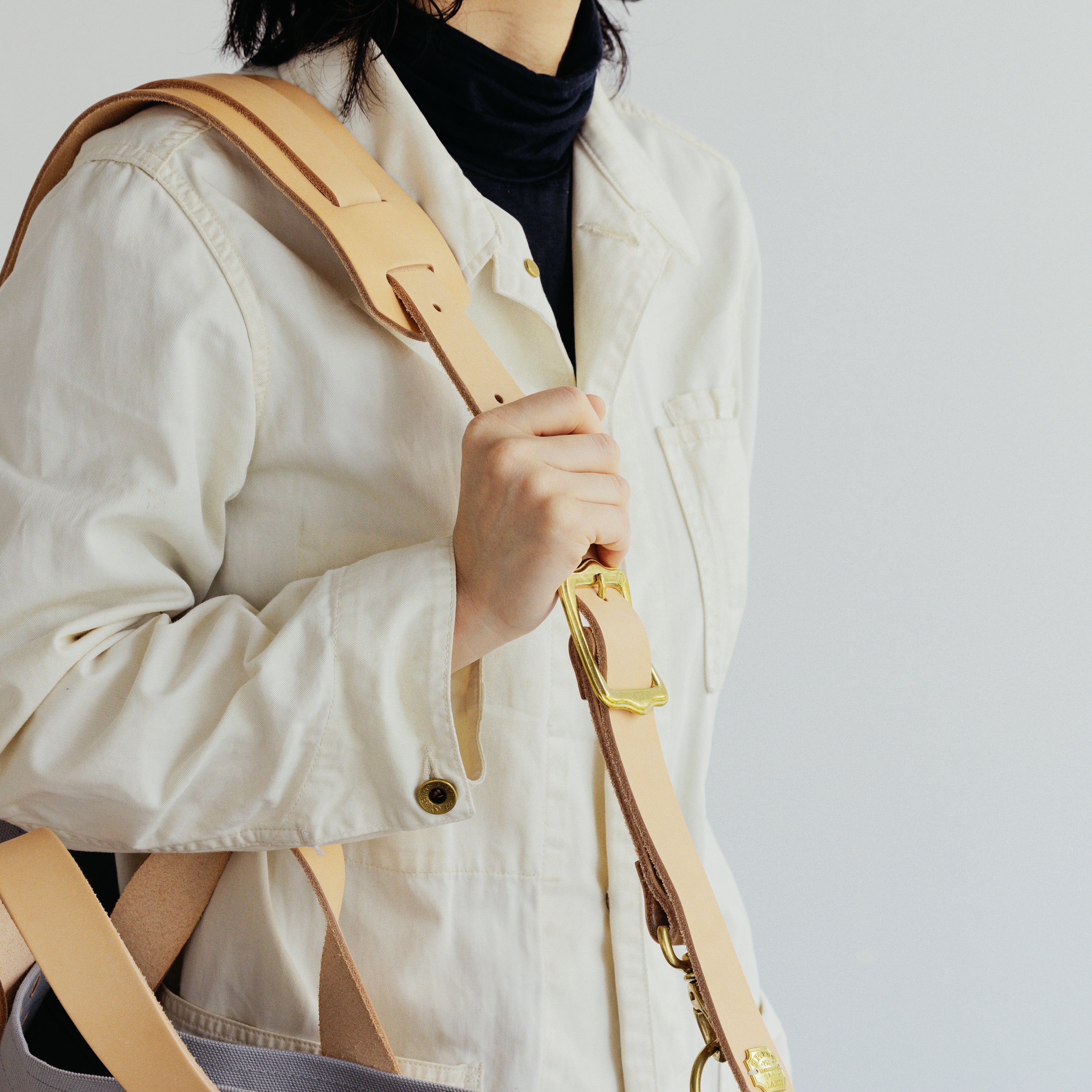 帆布は、国産の4号帆布を、金具は東京下町の鋳物工場から、革は国産のヌメ革をミモザの樹皮から抽出されたタンニンでなめしたものを使っています。