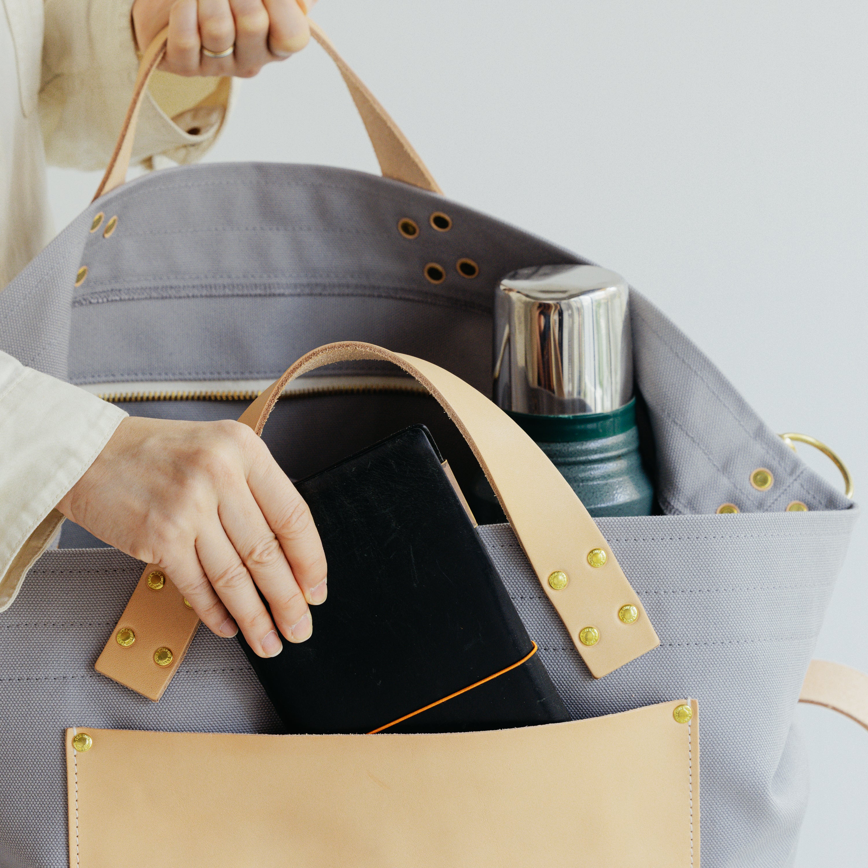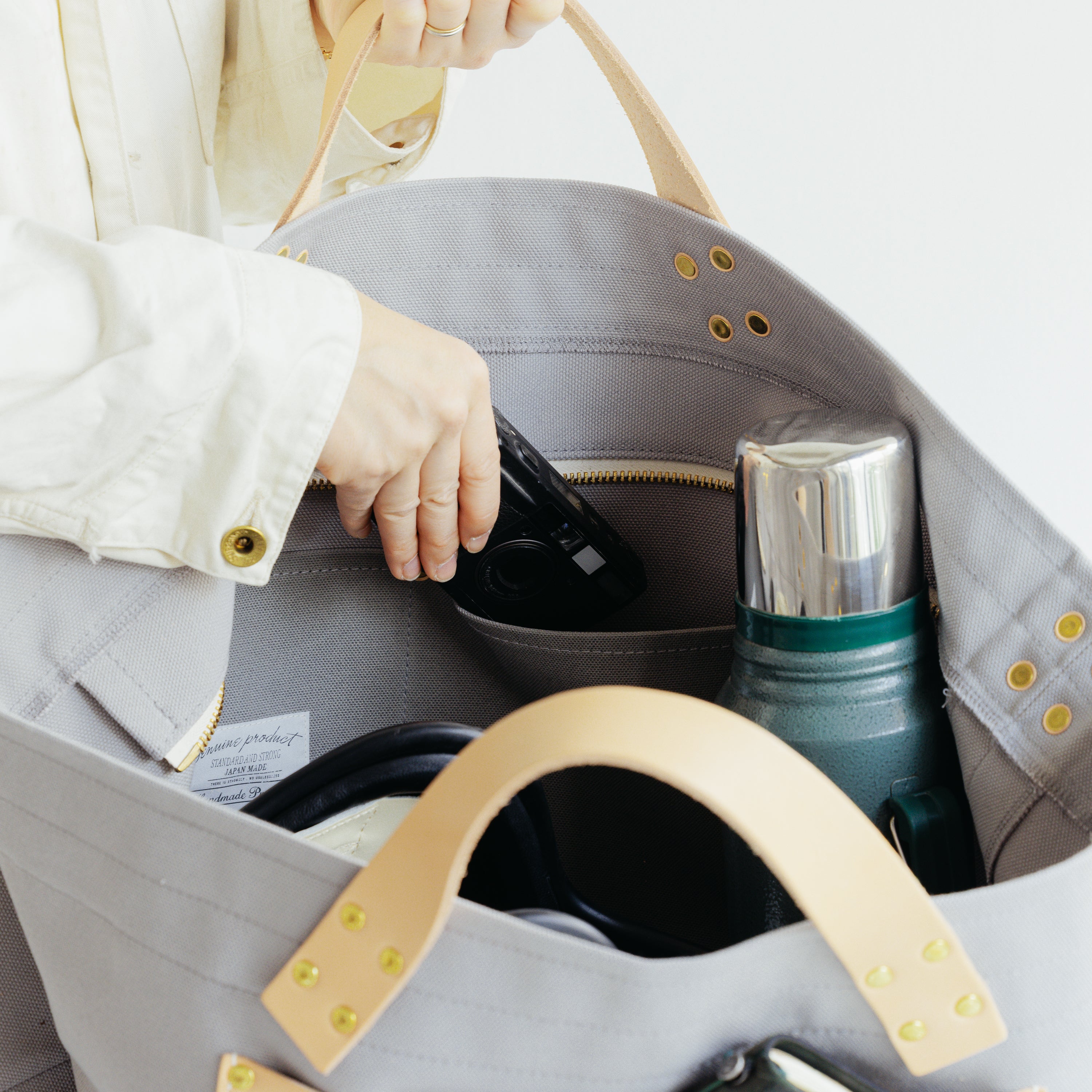 今季は、定番の生成ではなく、グレー帆布でご用意しています。