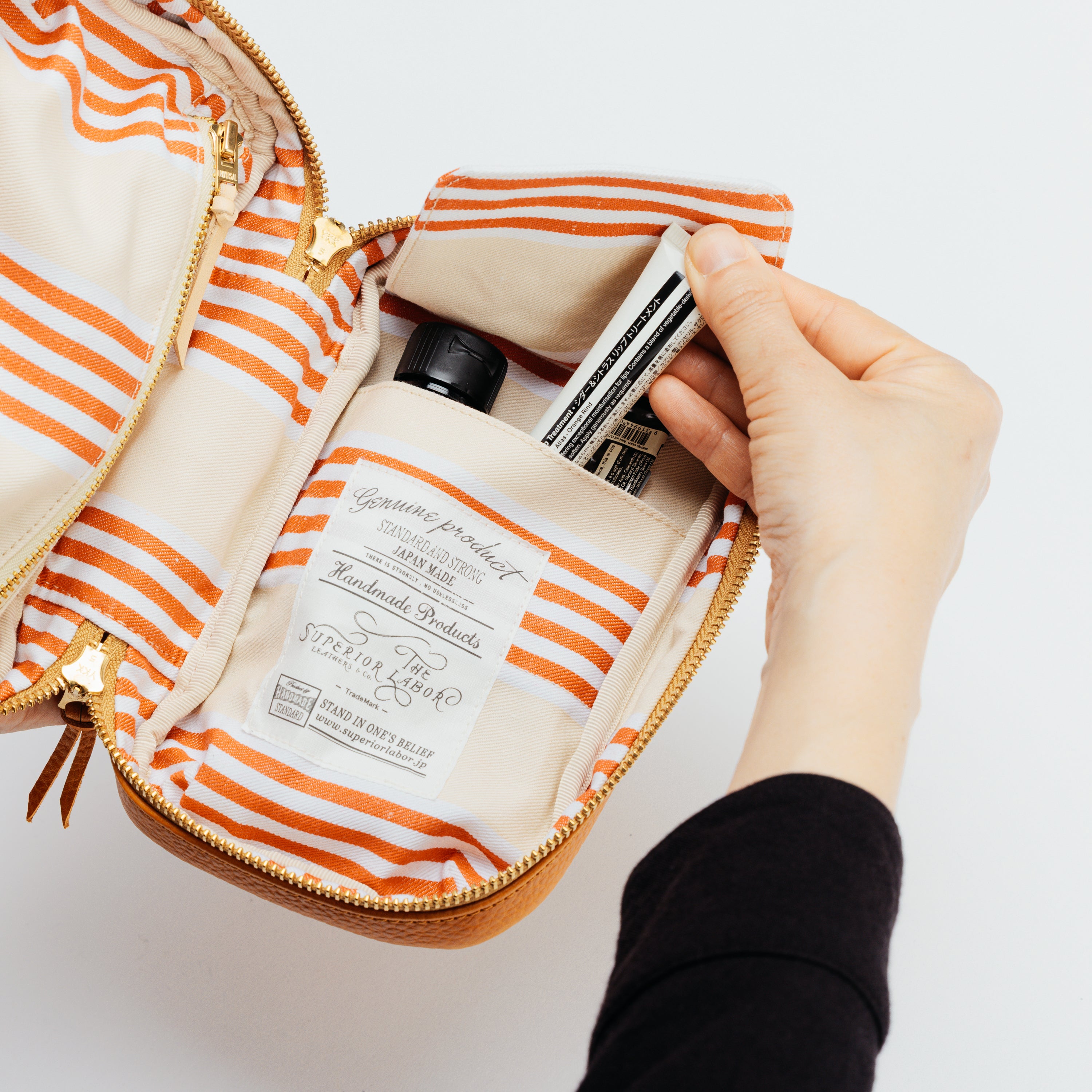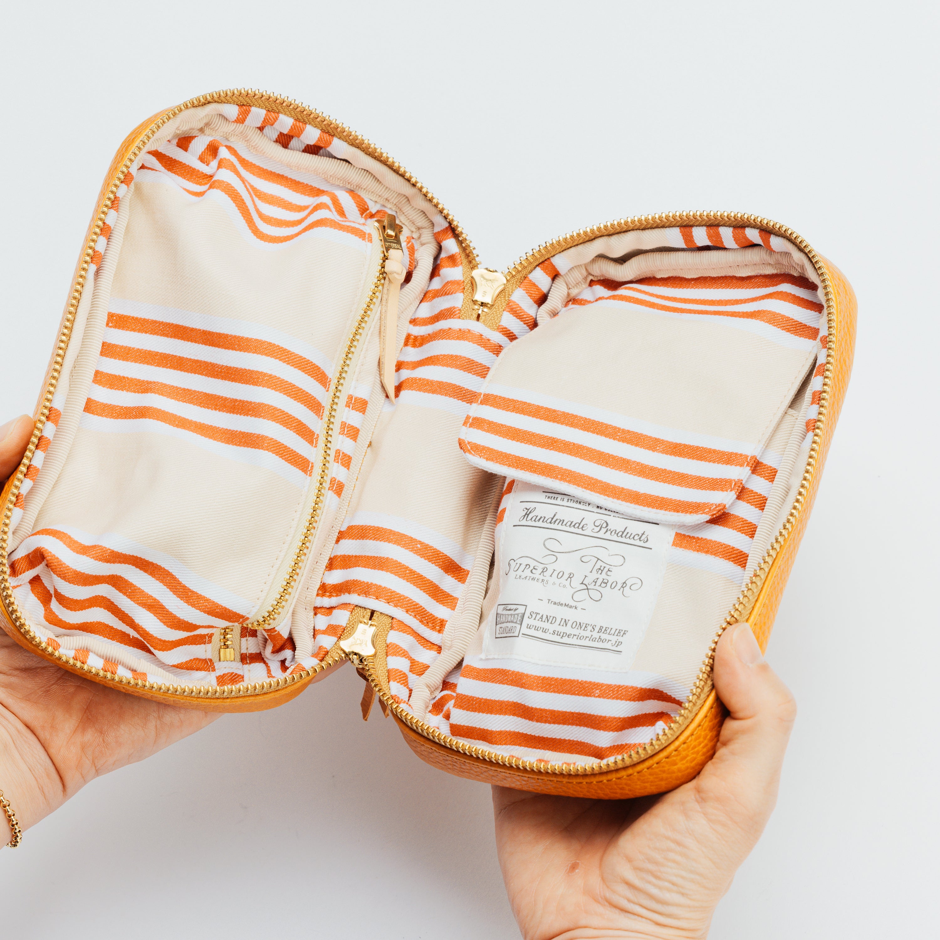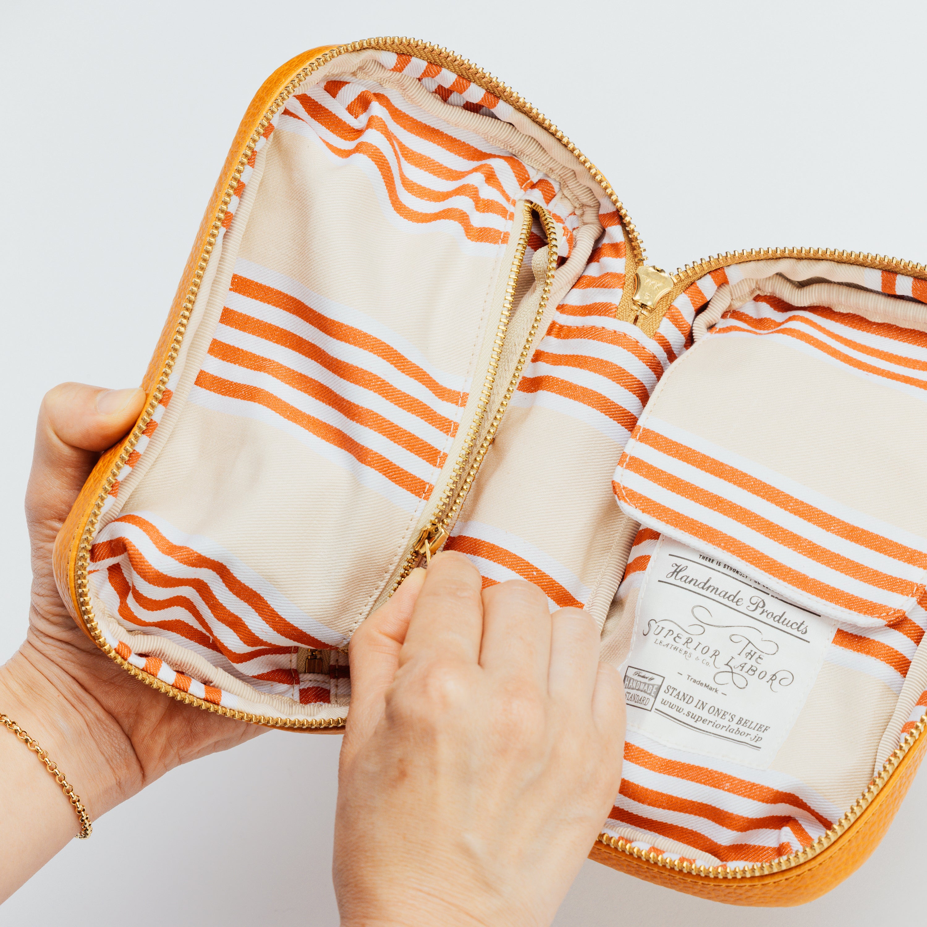 主にフランス原皮を使用し、伝統的なバケッタ製法によるタンニン鞣しで仕上げられた