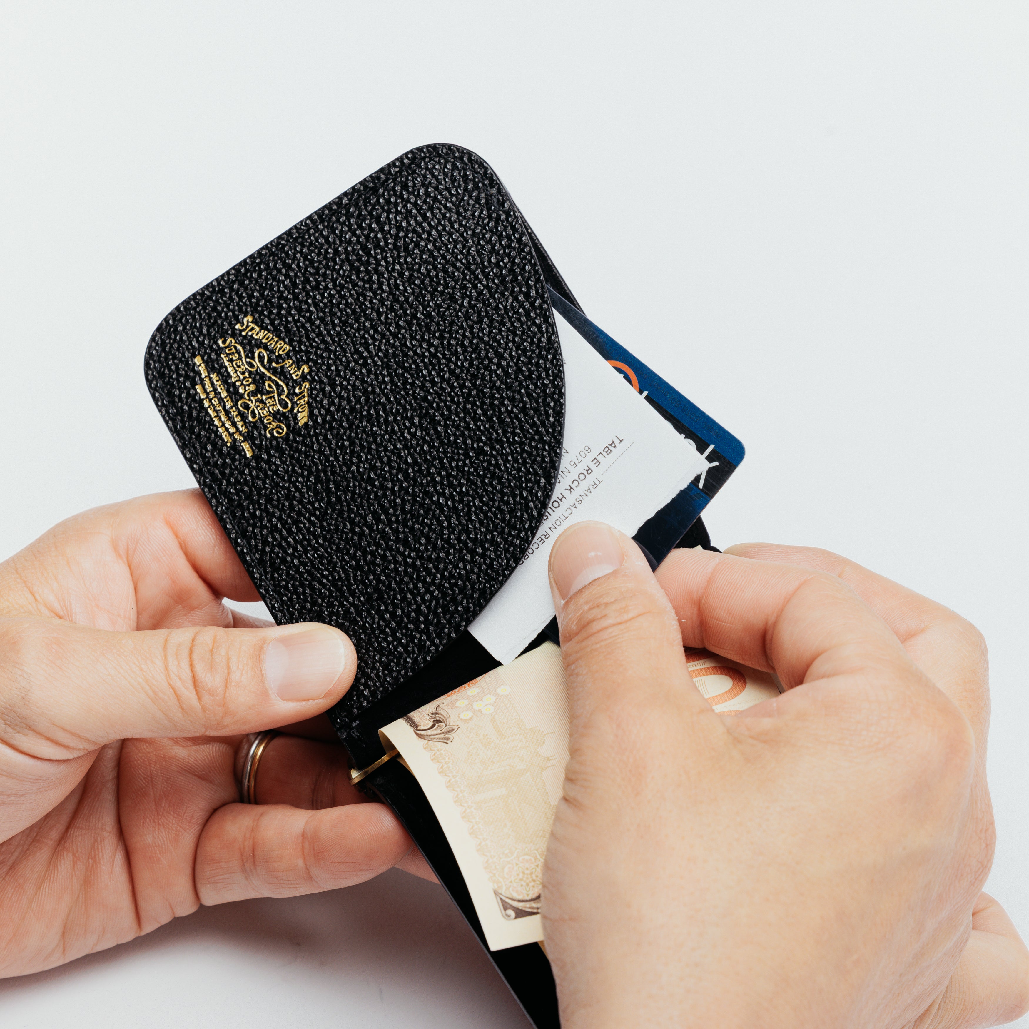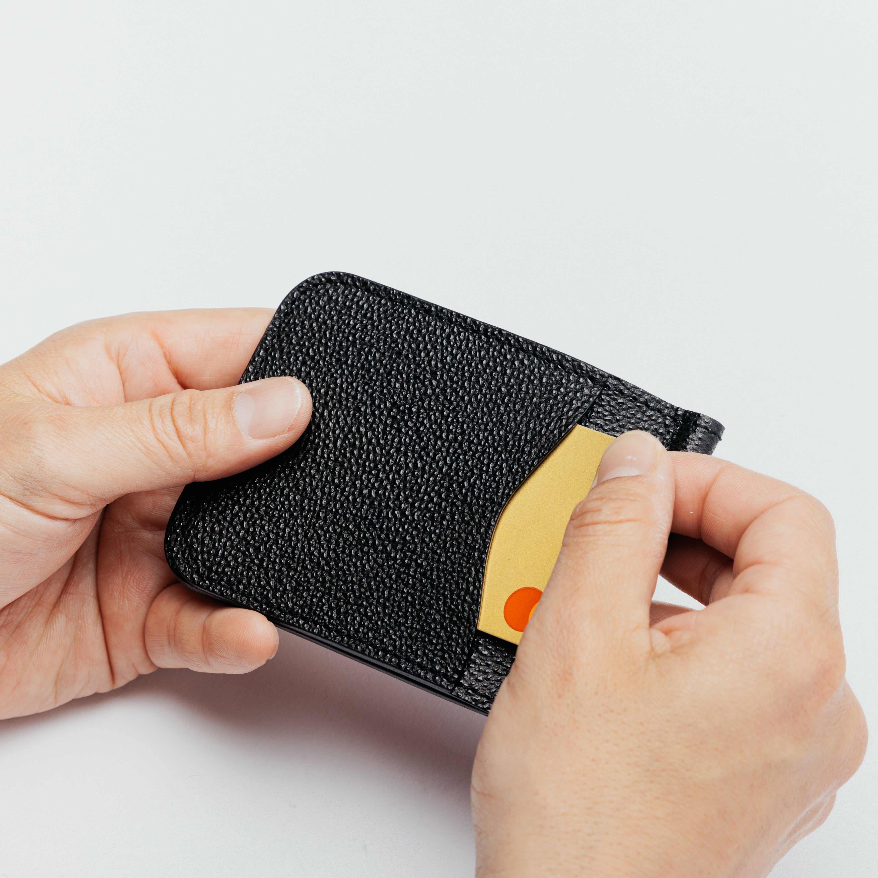 国産黒毛和牛の皮を使用し、伝統的な白鞣しと漆塗りで仕上げた、革の黒ダイヤと称される日本の伝統技術が詰まった革。