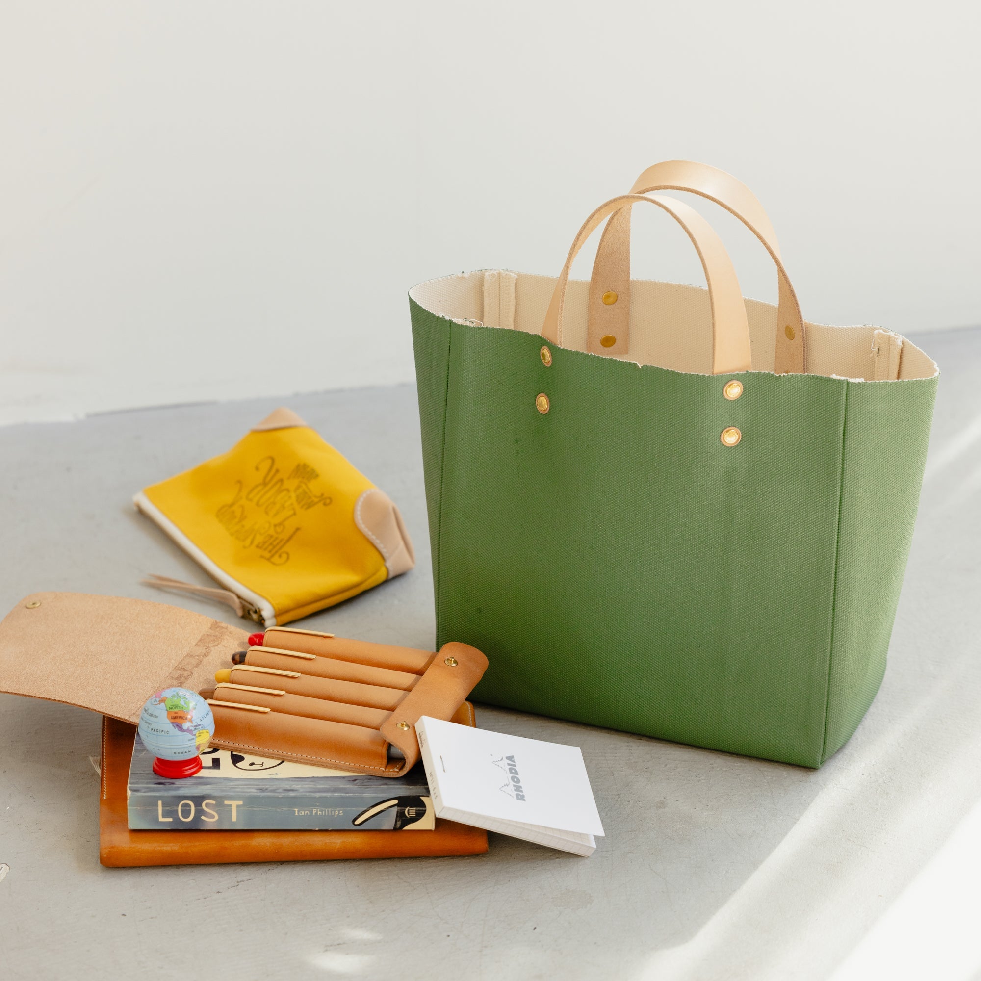 キャンバスは4号の倉敷帆布を使用。4号はデニムで24oz程度の厚みです。
