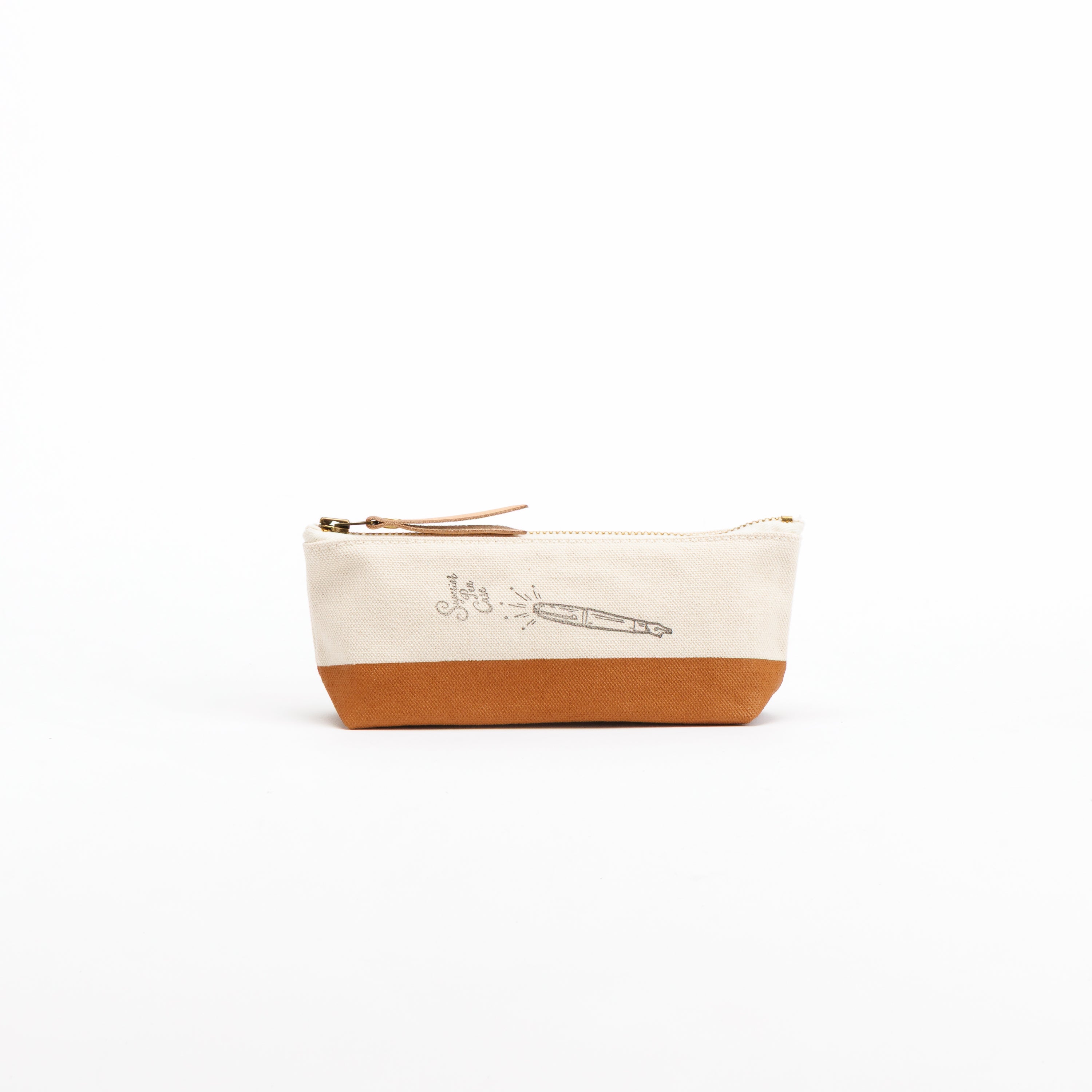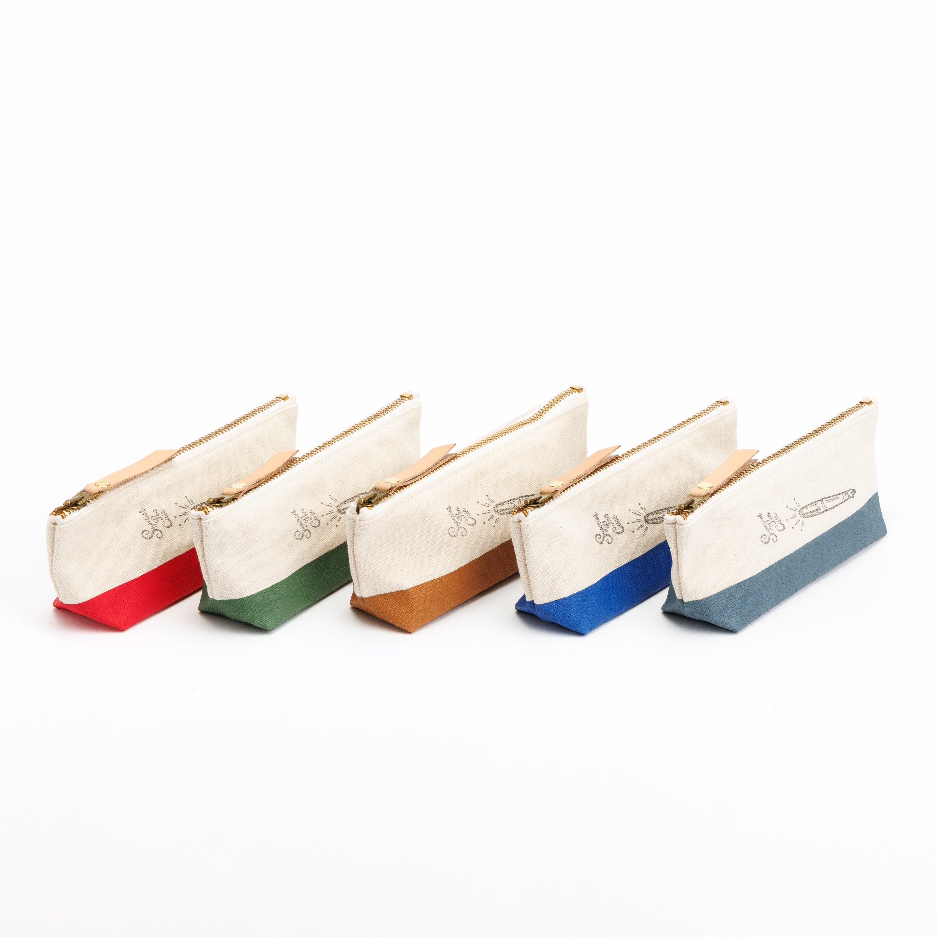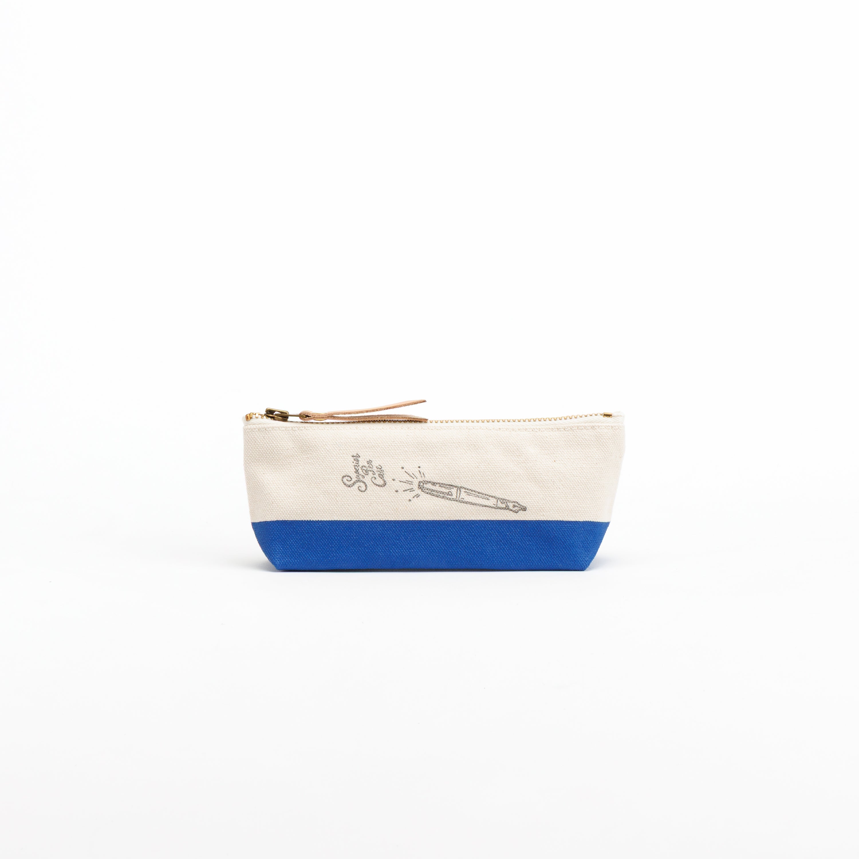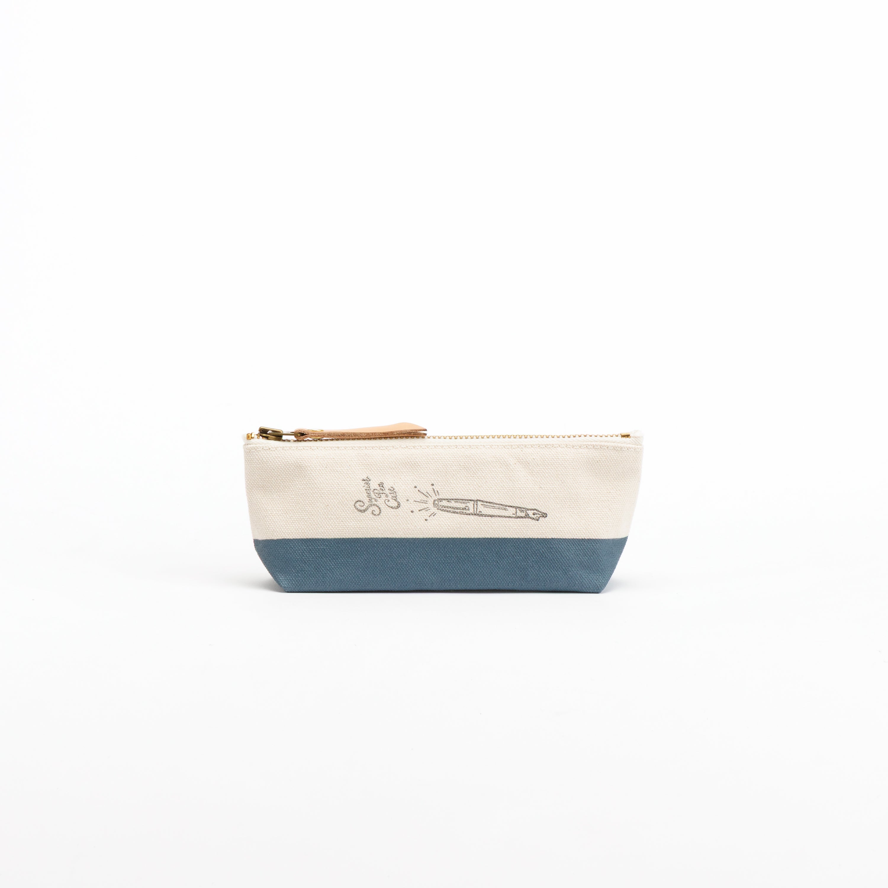 浅型なのでペンケースにぴったり、ということで万年筆イラストのスタンプをあしらいました。