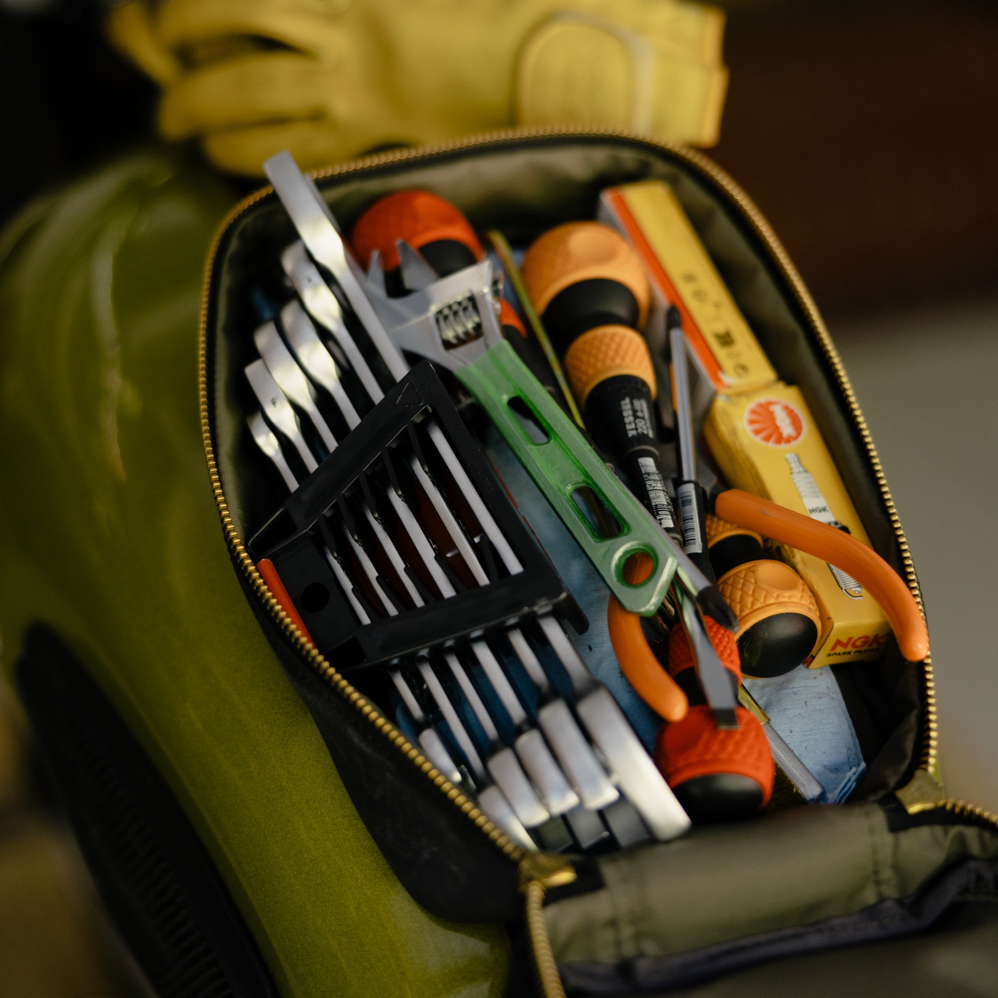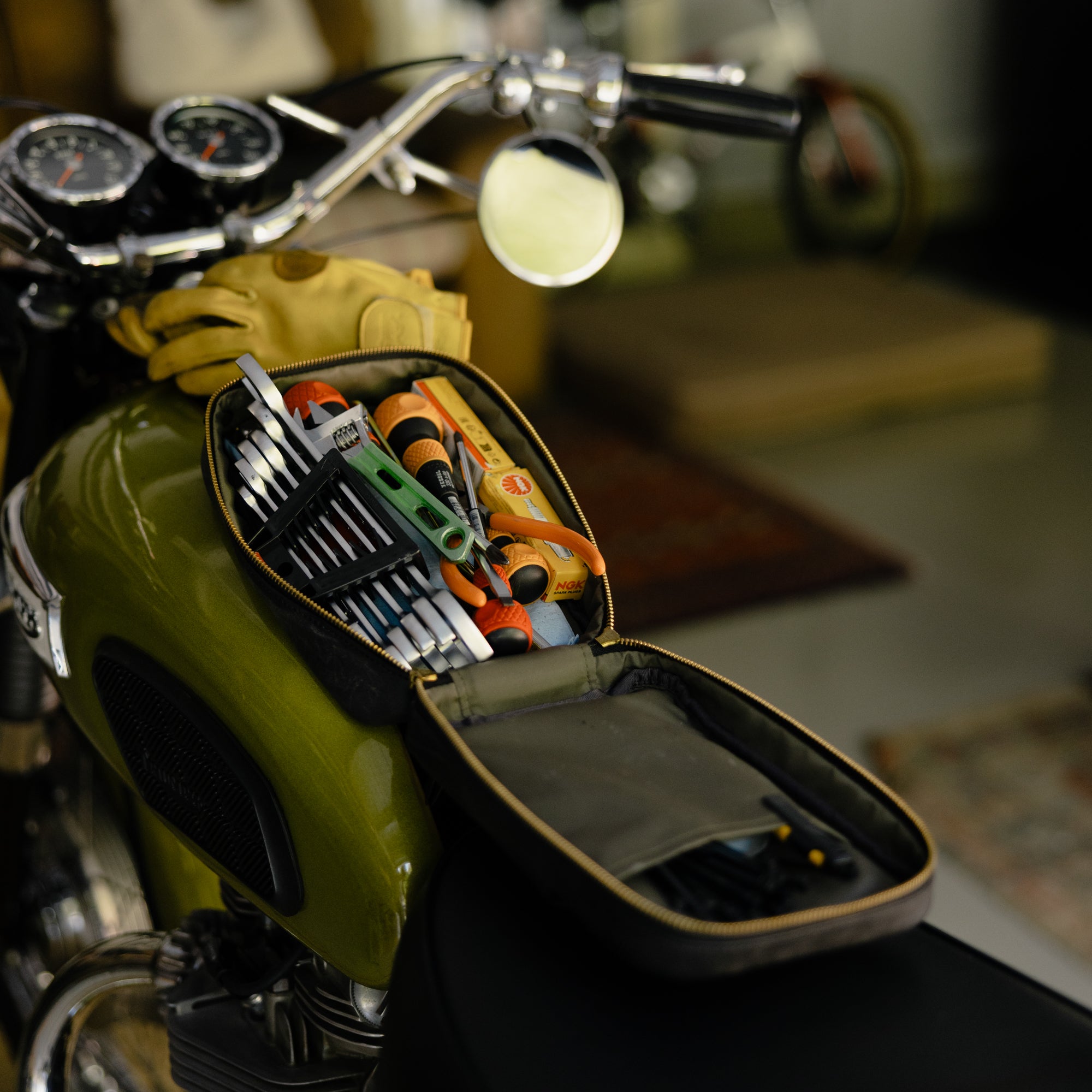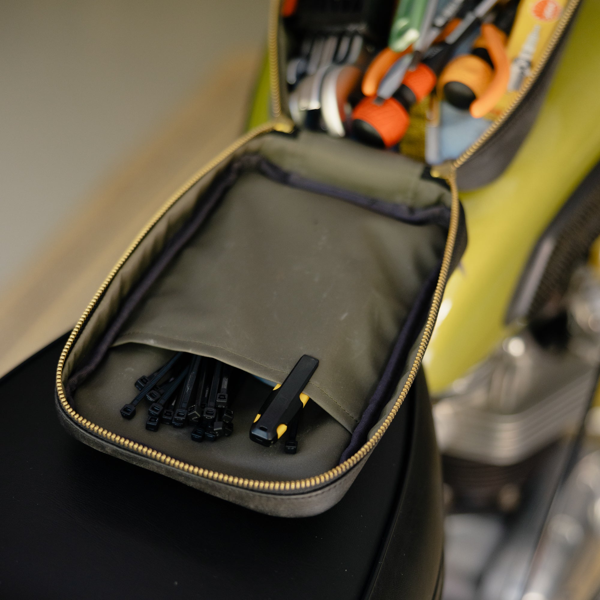 バッグ中身の保護に加えて、中に入れた工具などでタンクを傷つけない仕様になっています。
