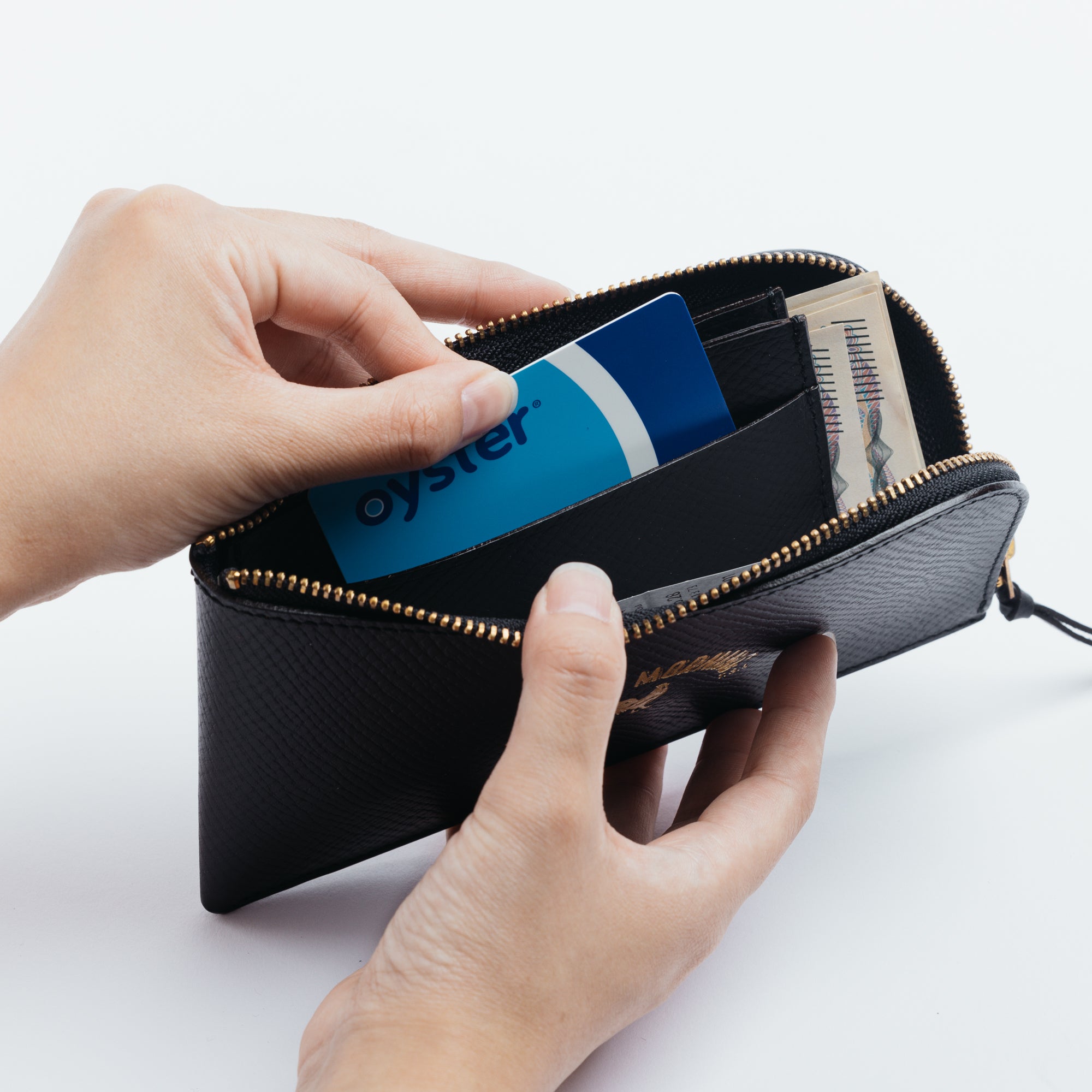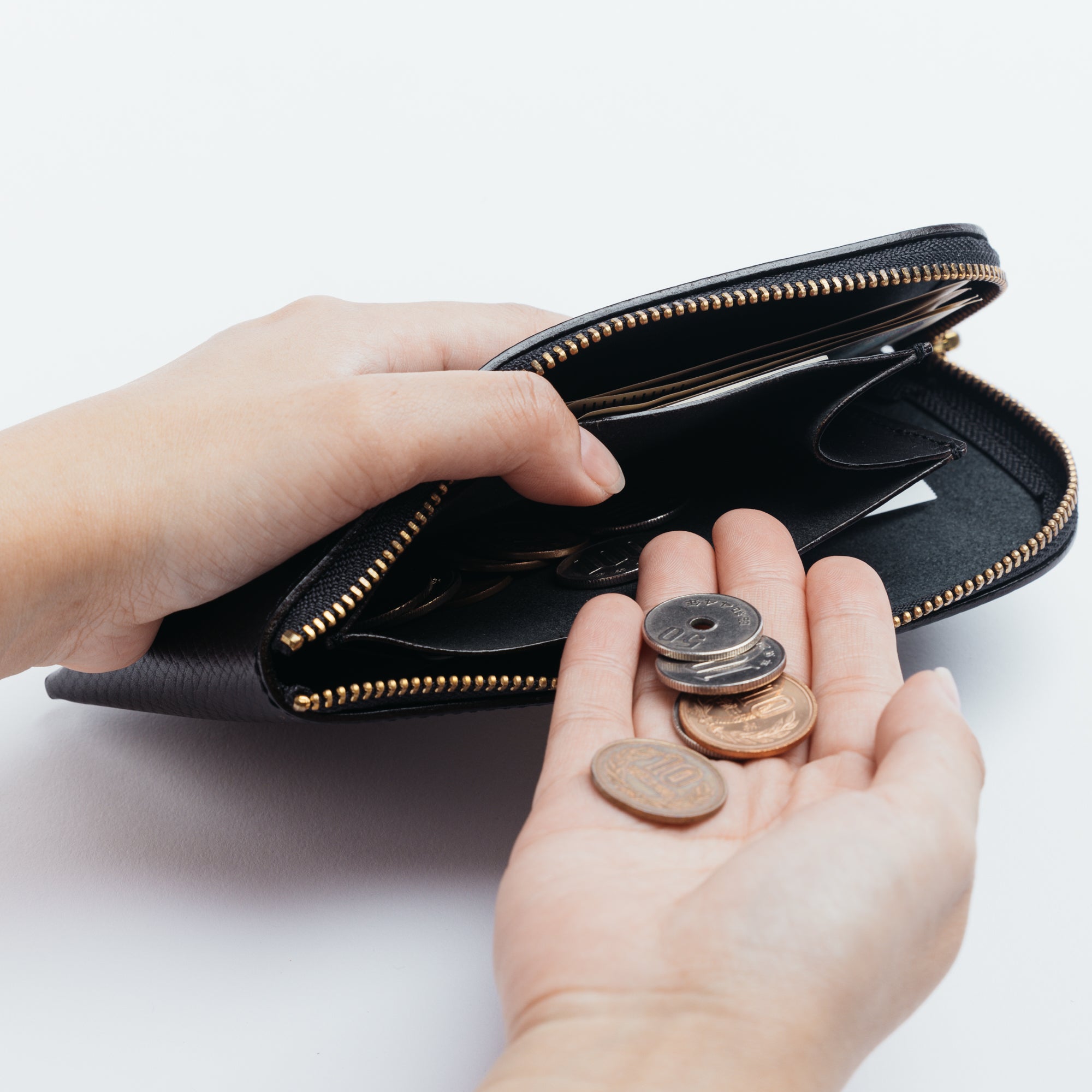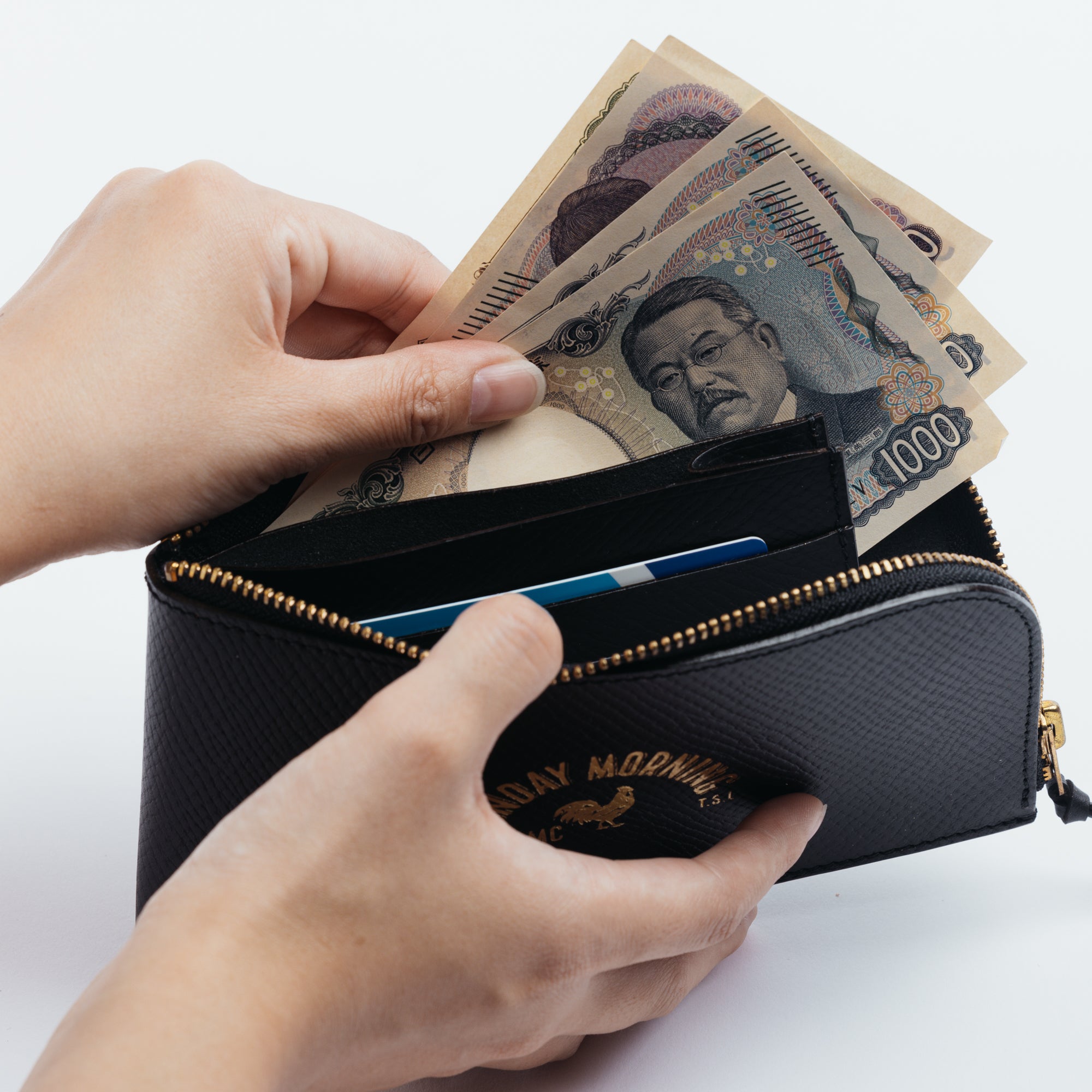 お札を折らず、コインとカードも収納出来て、薄型で中身も見やすい。