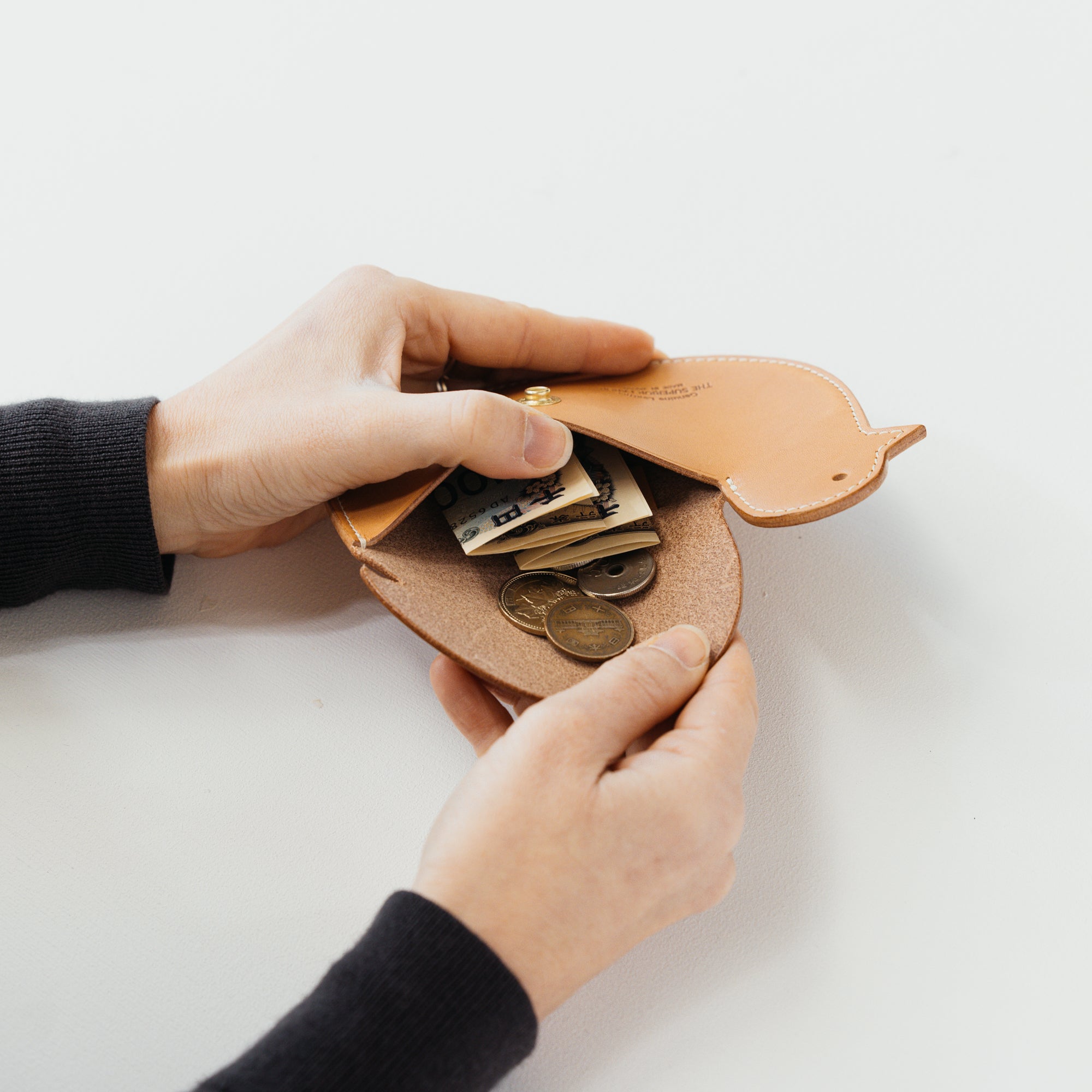 - 使用している革は天然皮革です。 破れや裂けに繋がる傷は使用していませんが、もともと革にある傷やしわは素材の特徴として商品に使用しています。 また、同じ革でも色味や厚み、風合いに個体差がございます。