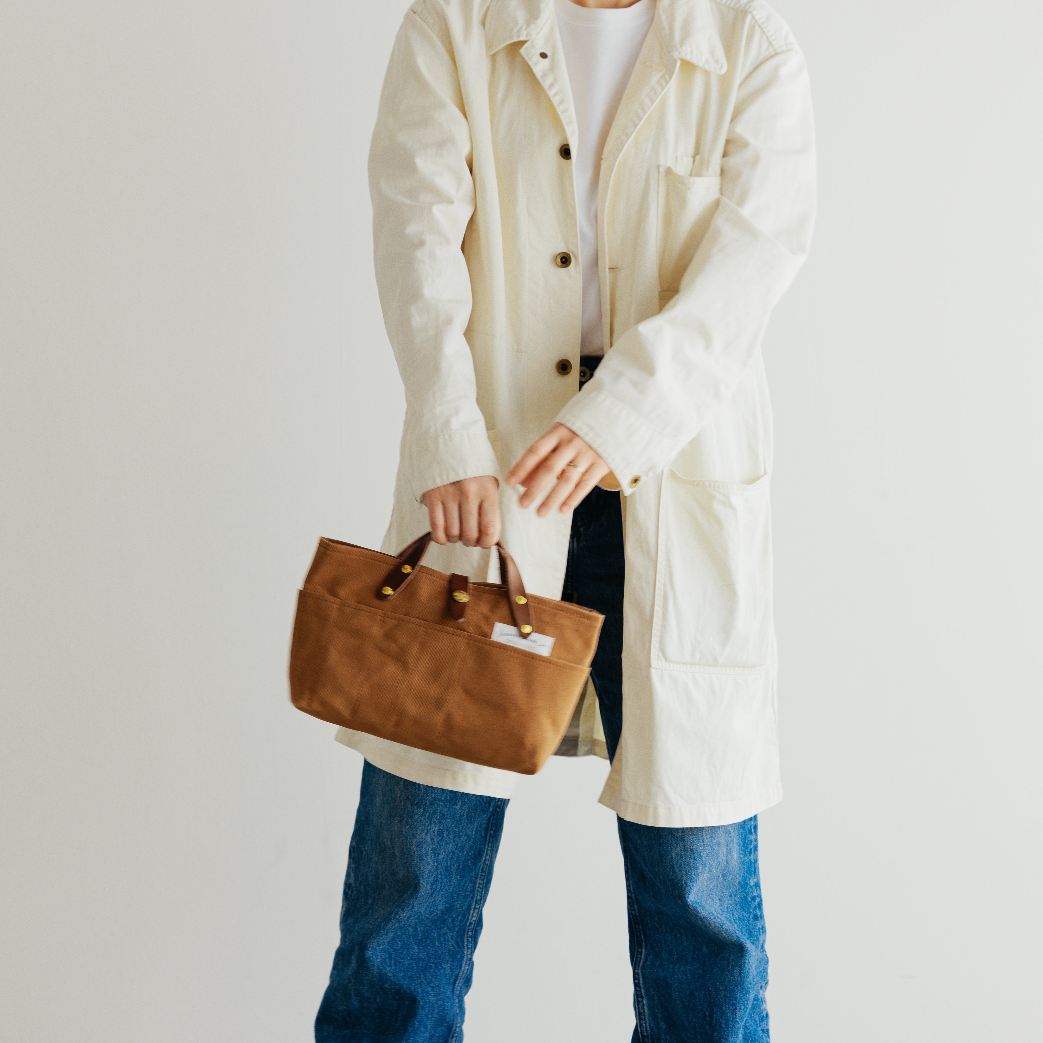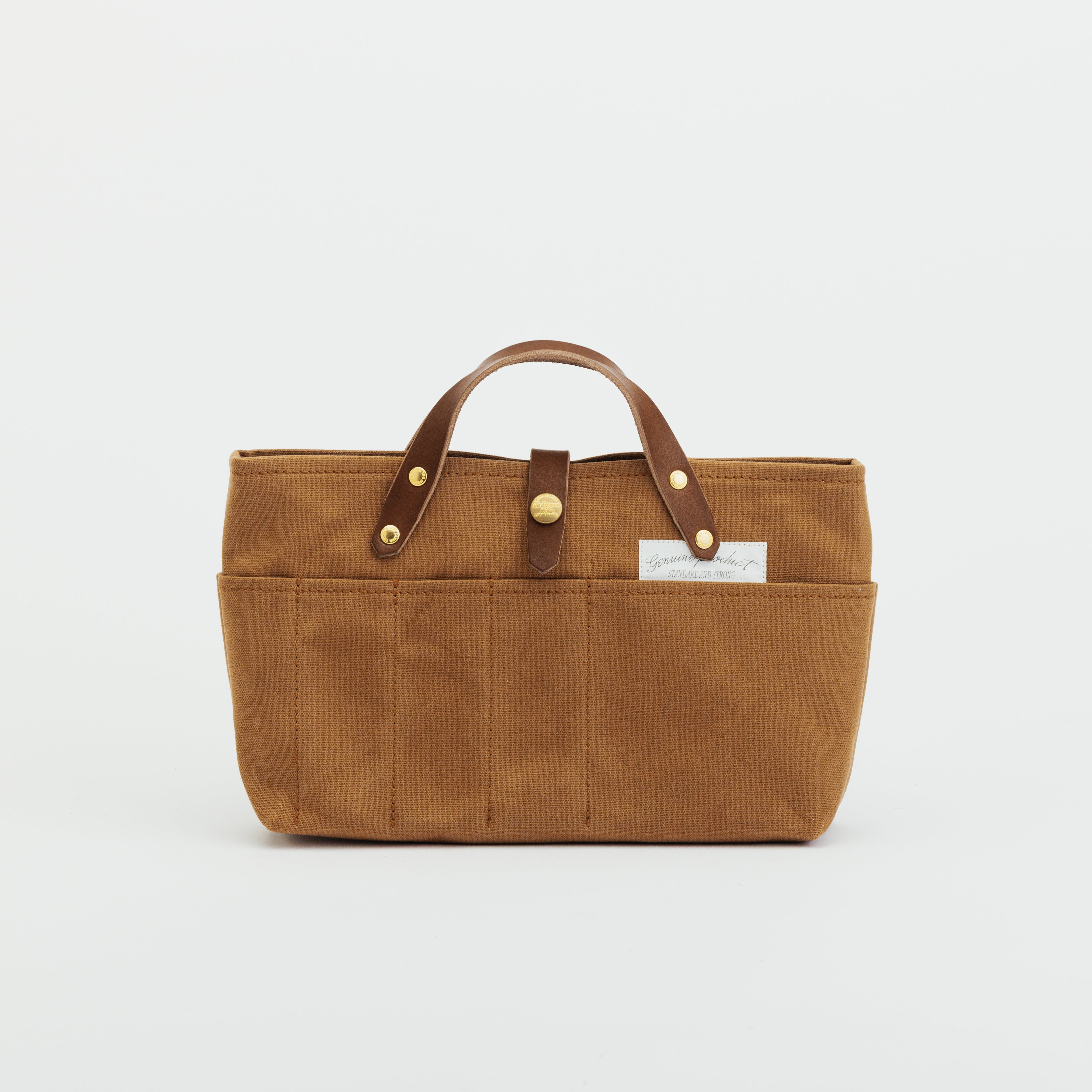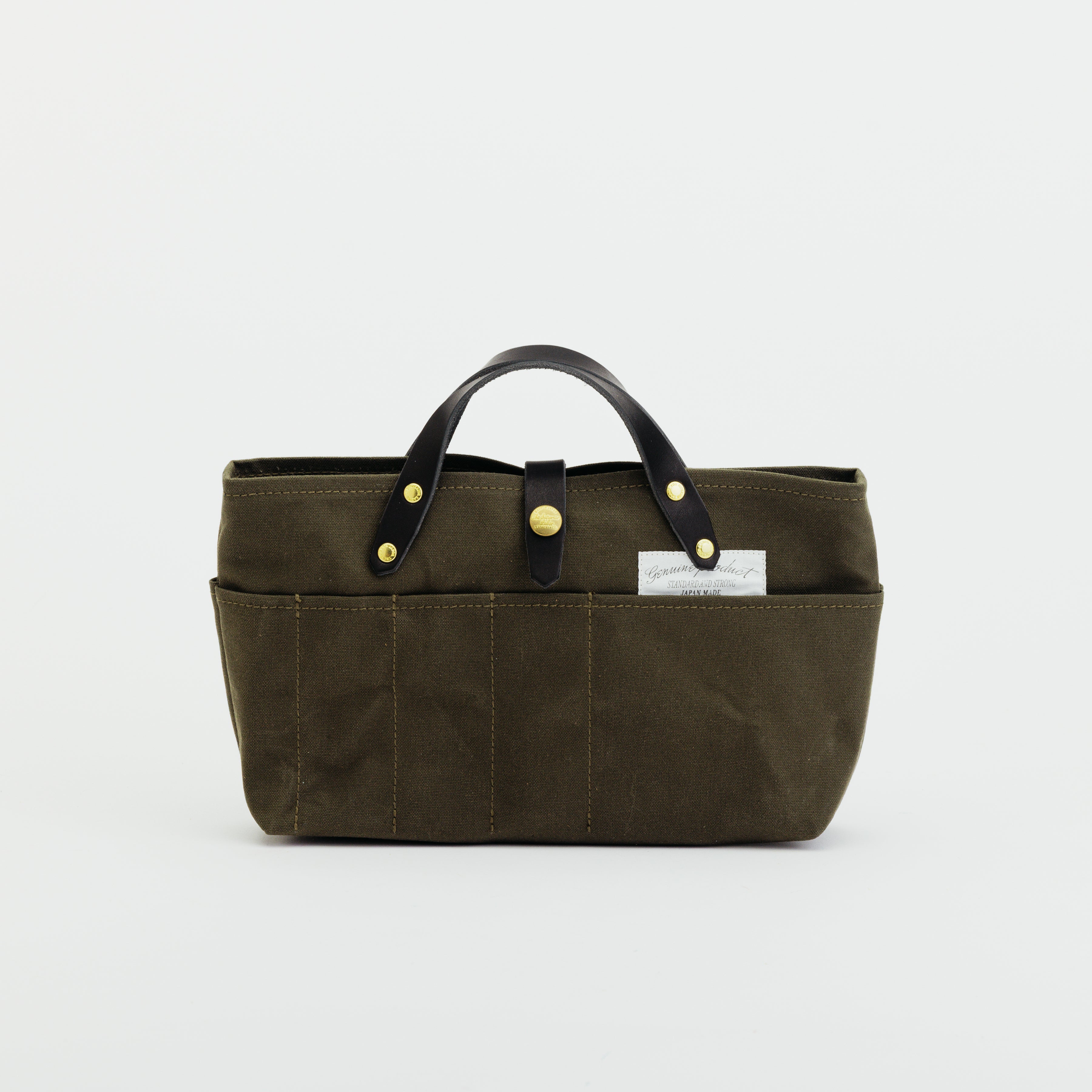 軽くて張りのあるパラフィンキャンバス素材を使った、ミニサイズのトートバッグです。