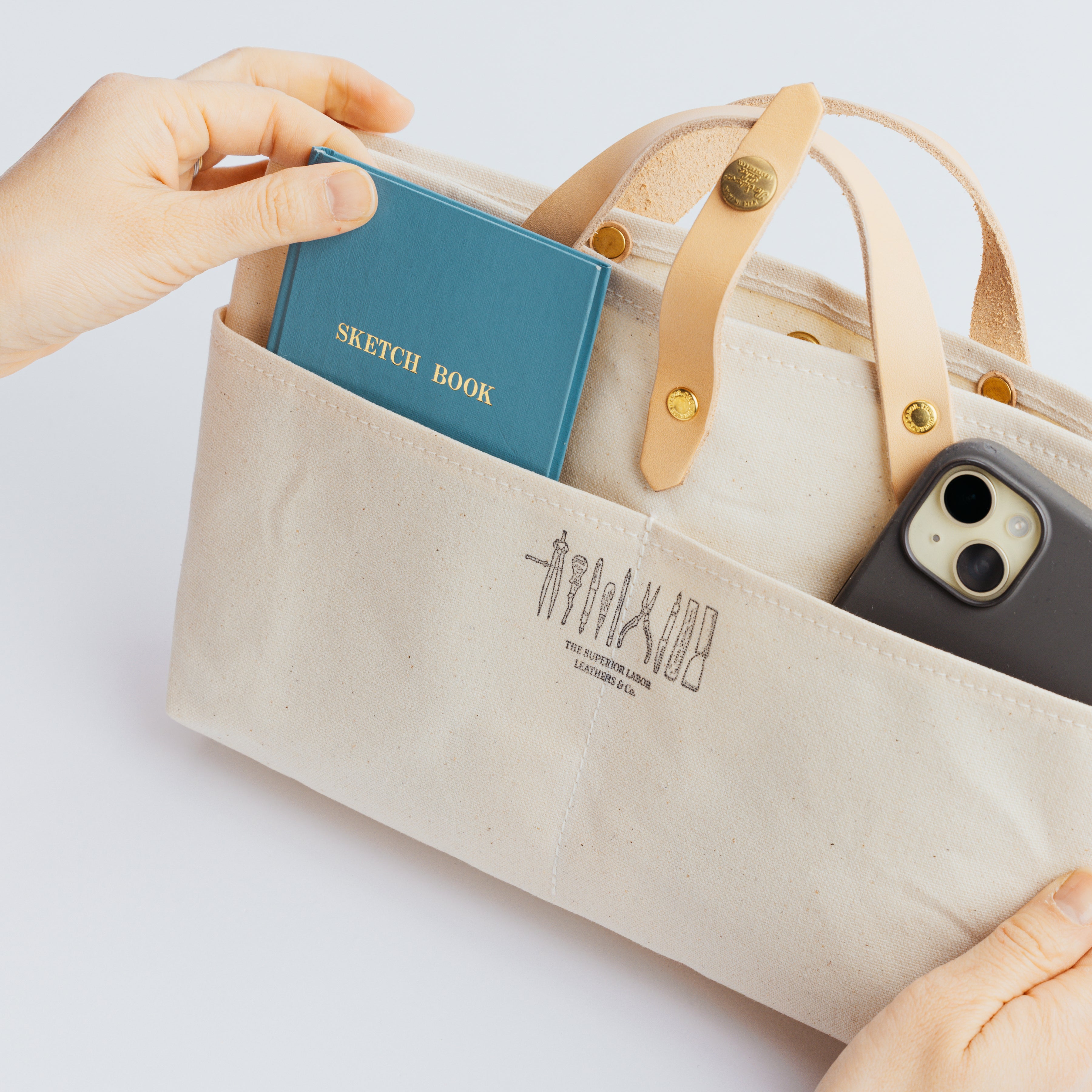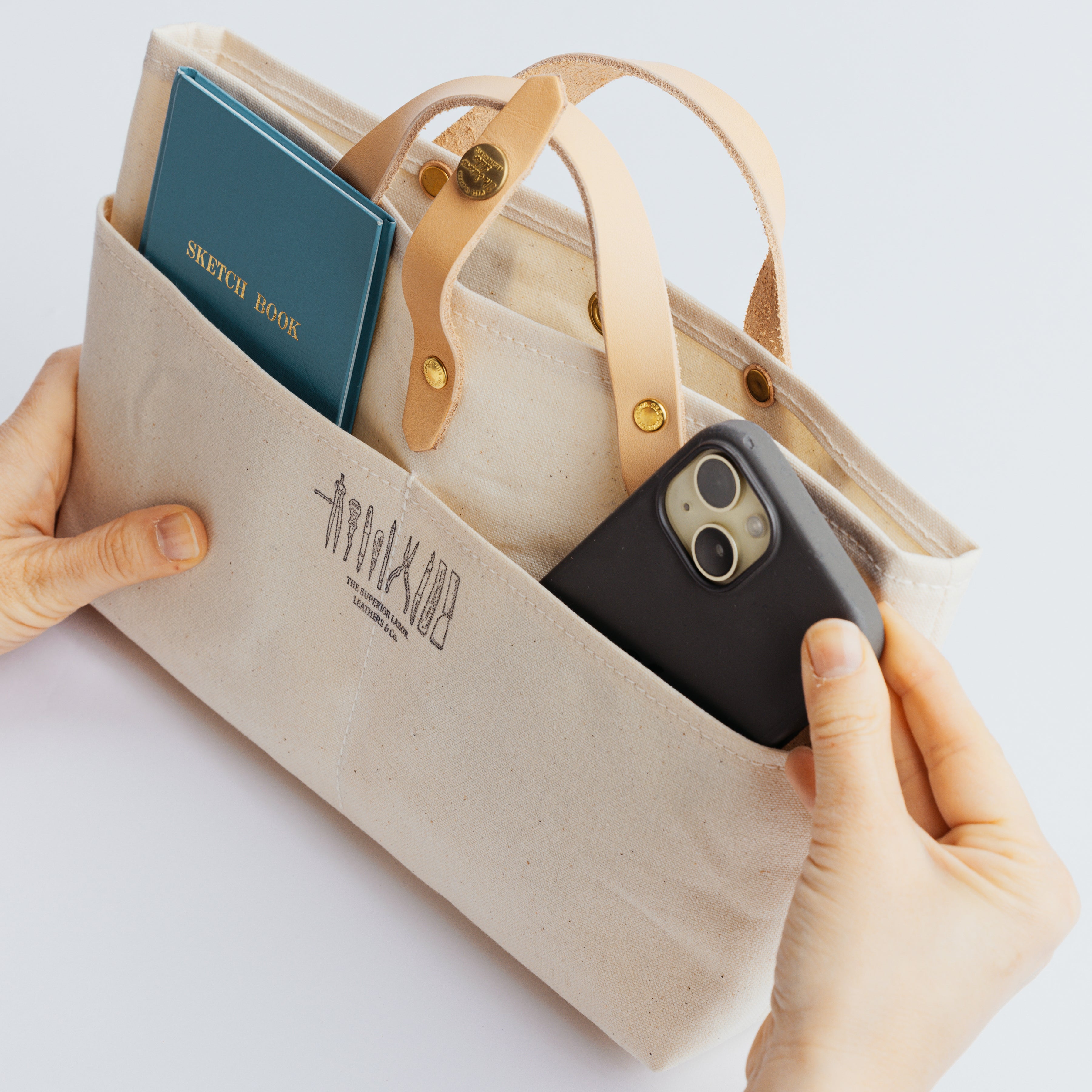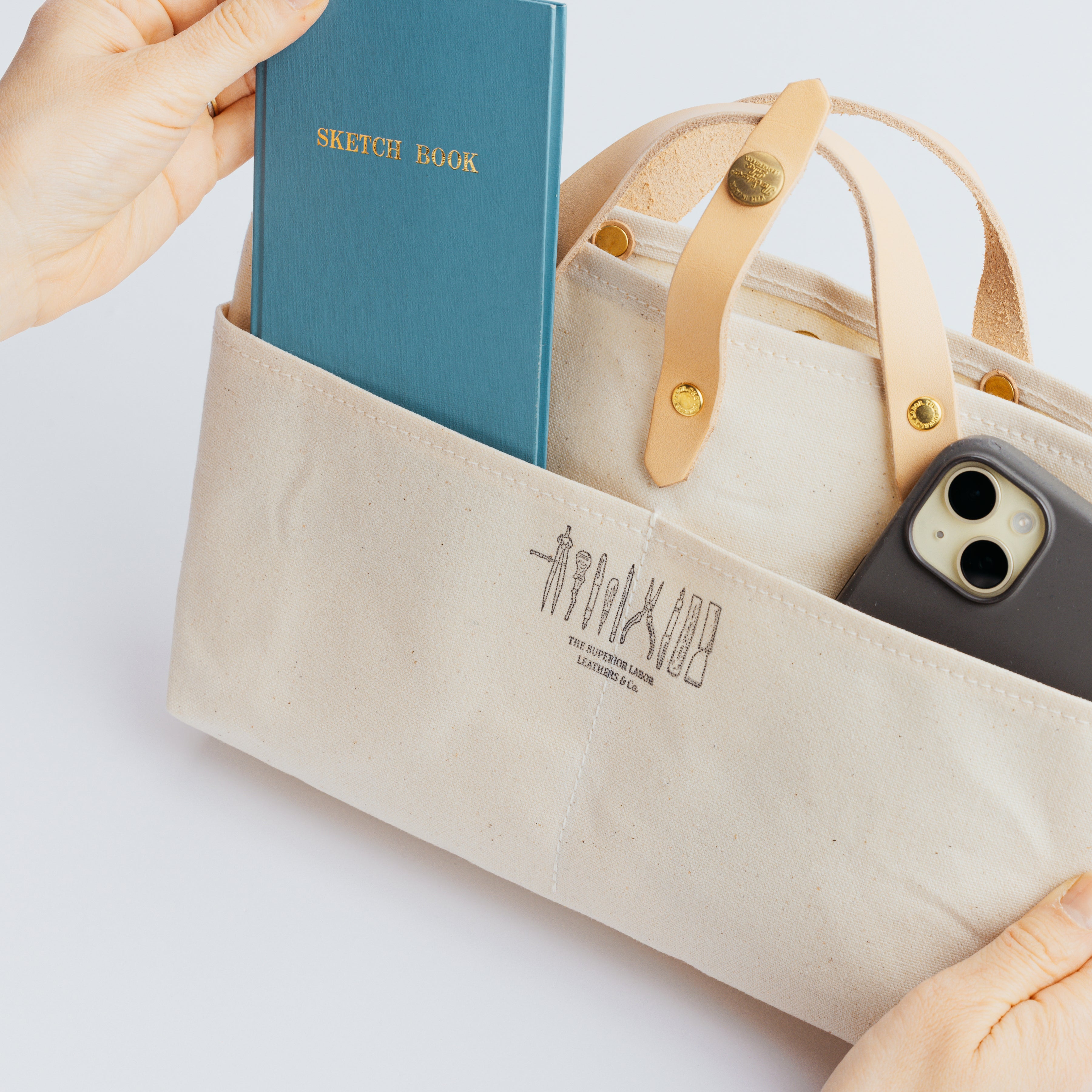 軽くて張りのあるパラフィンキャンバス素材を使った、ミニサイズのトートバッグです。