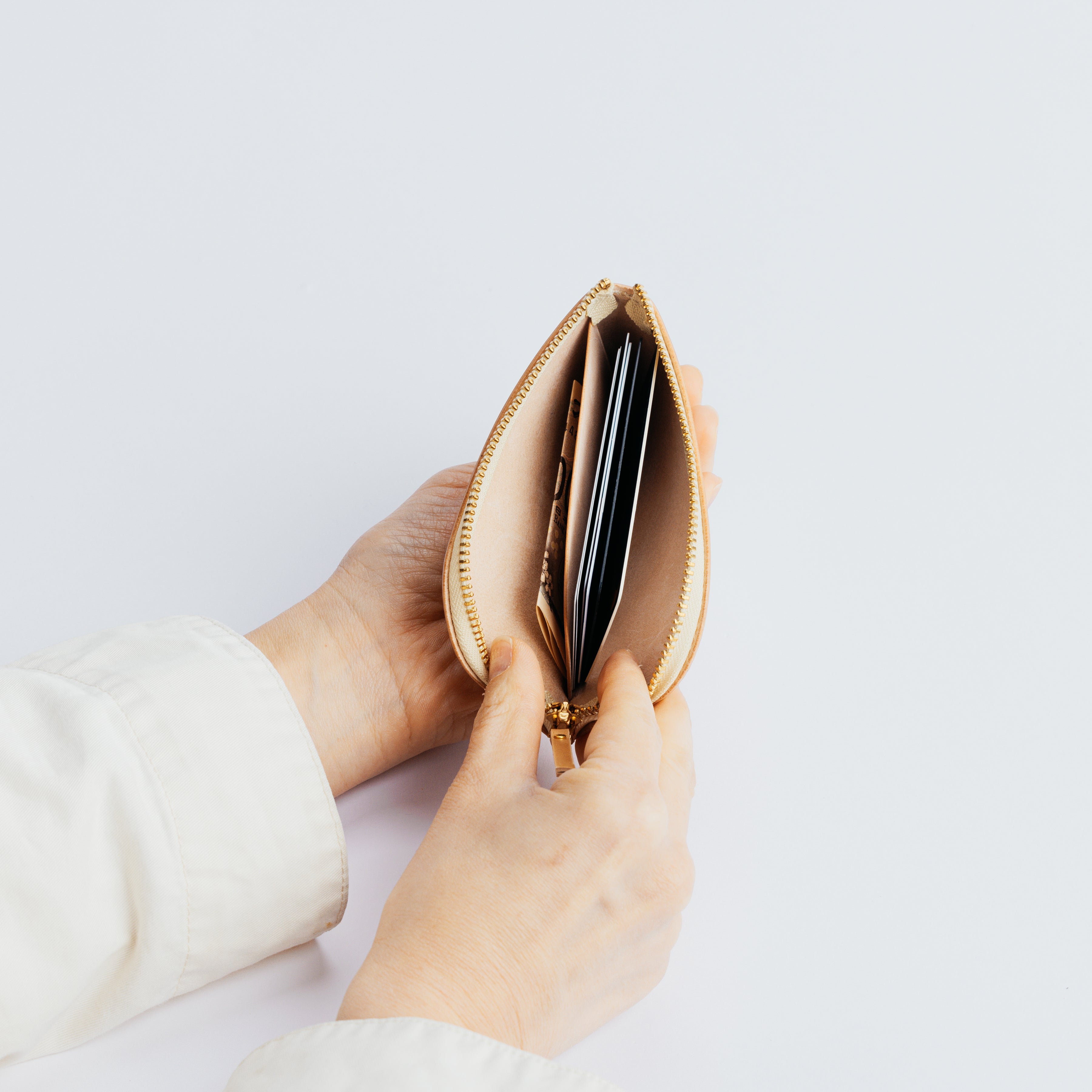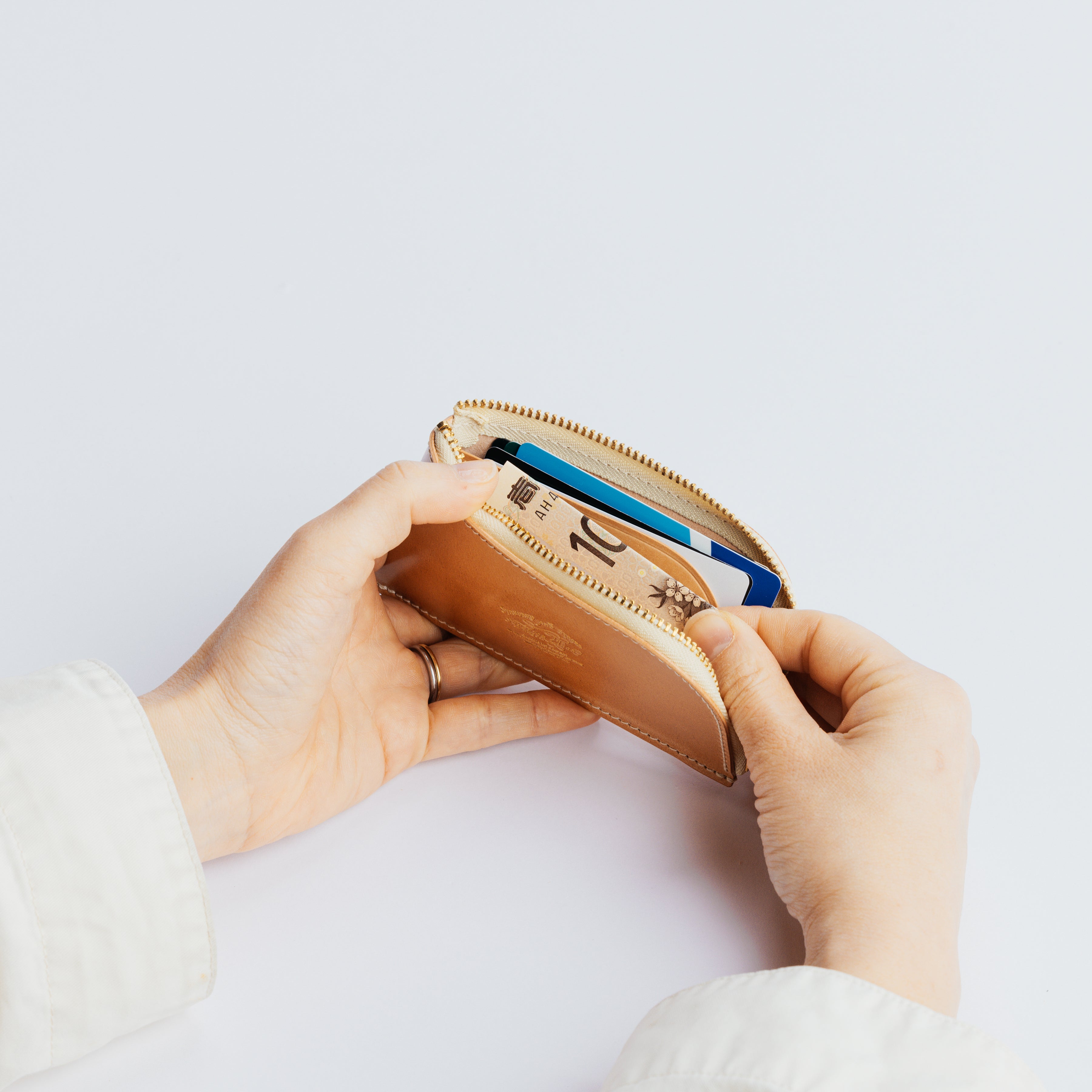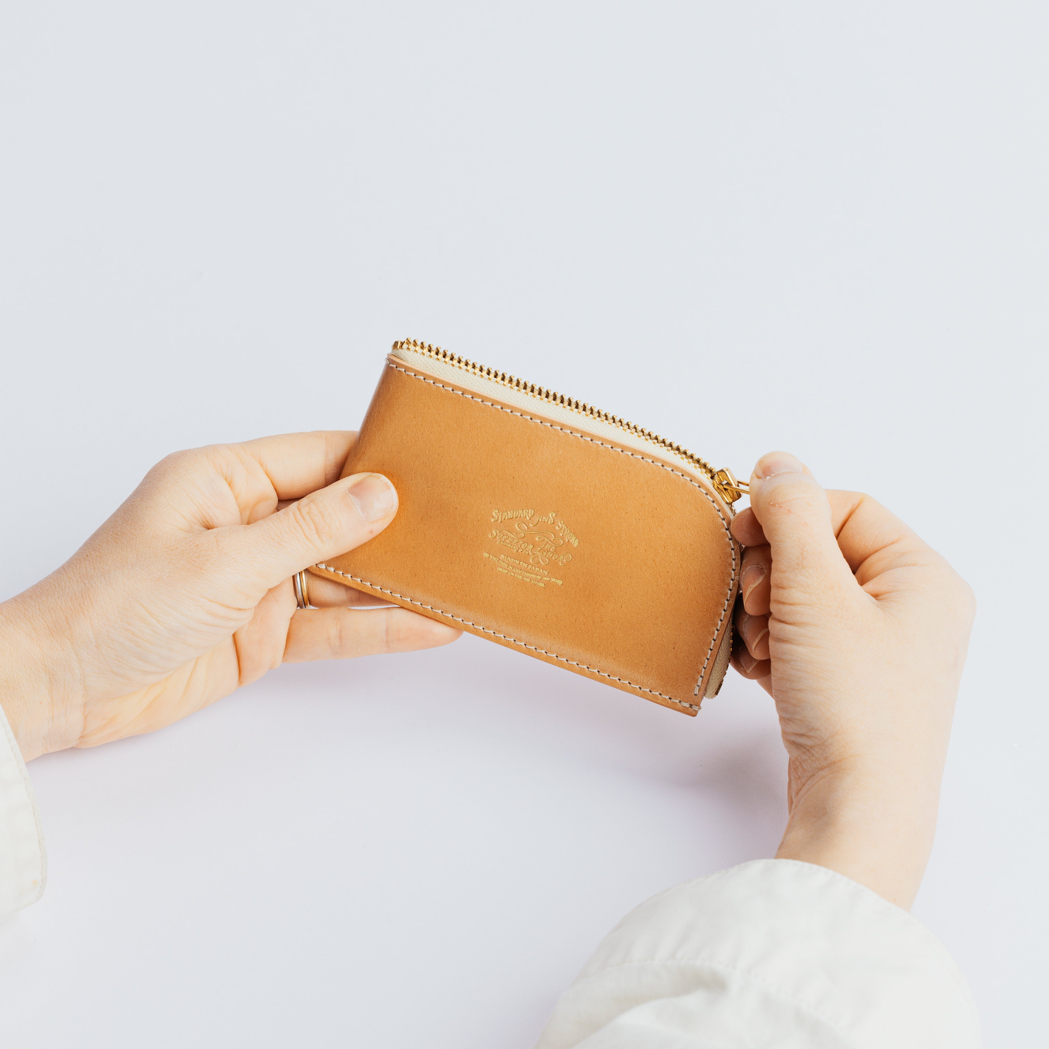 - 使用している革は天然皮革です。 破れや裂けに繋がる傷は使用していませんが、もともと革にある傷やしわは素材の特徴として商品に使用しています。 また、同じ革でも色味や厚み、風合いに個体差がございます。