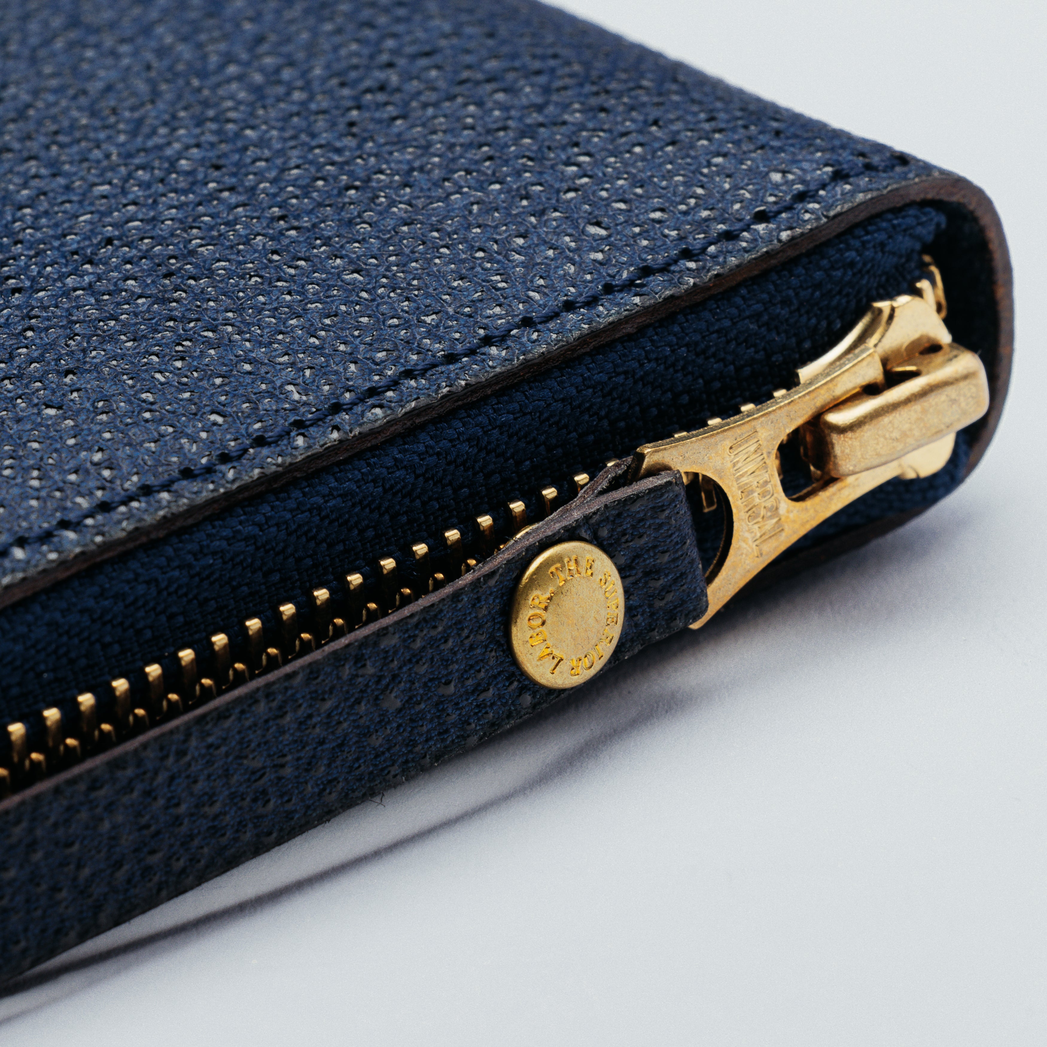 定番モデル「ジップロングウォレット」の表紙に"革の黒ダイヤ"と称される、日本の伝統技術が詰まった黒桟革を使用したファインレザープロダクト。