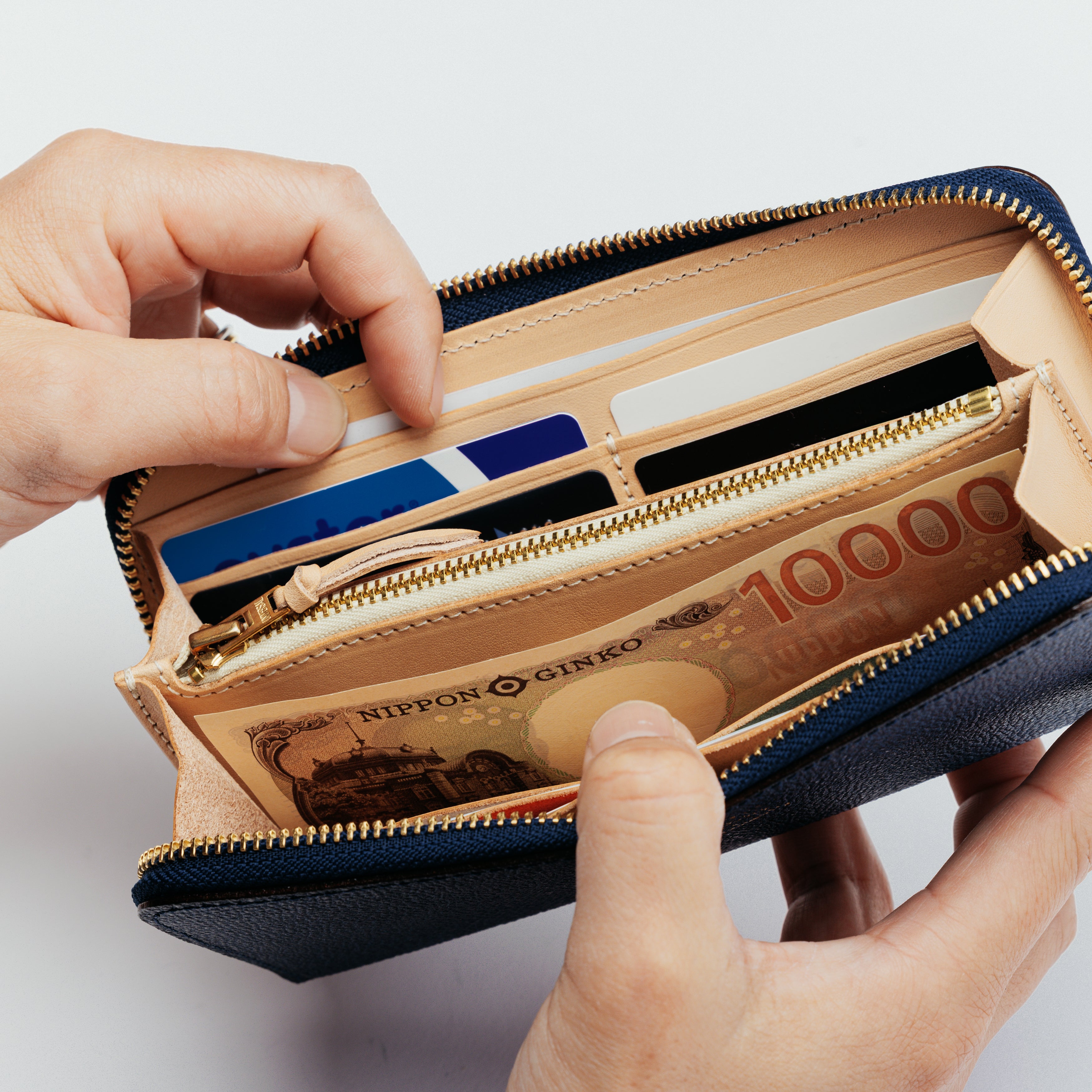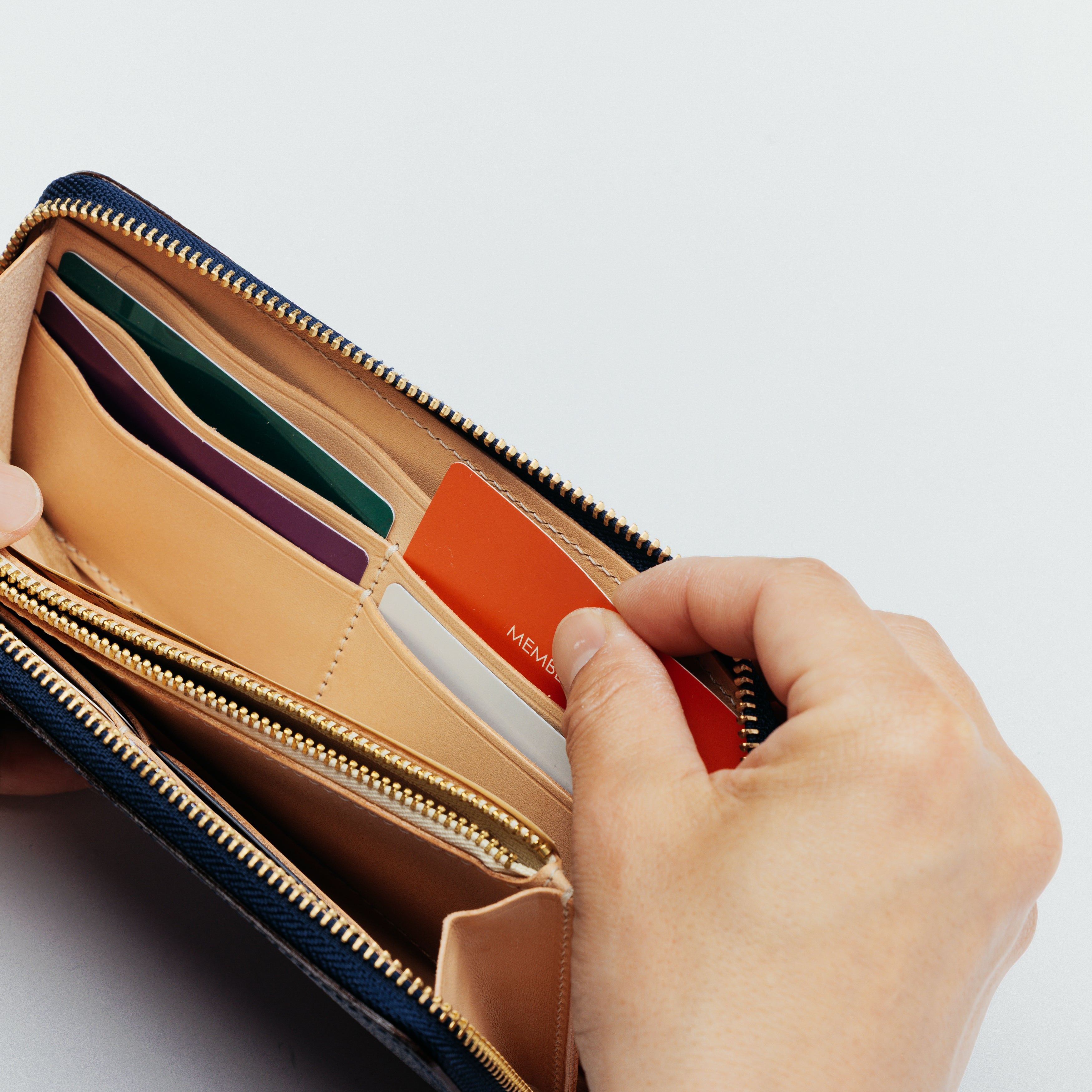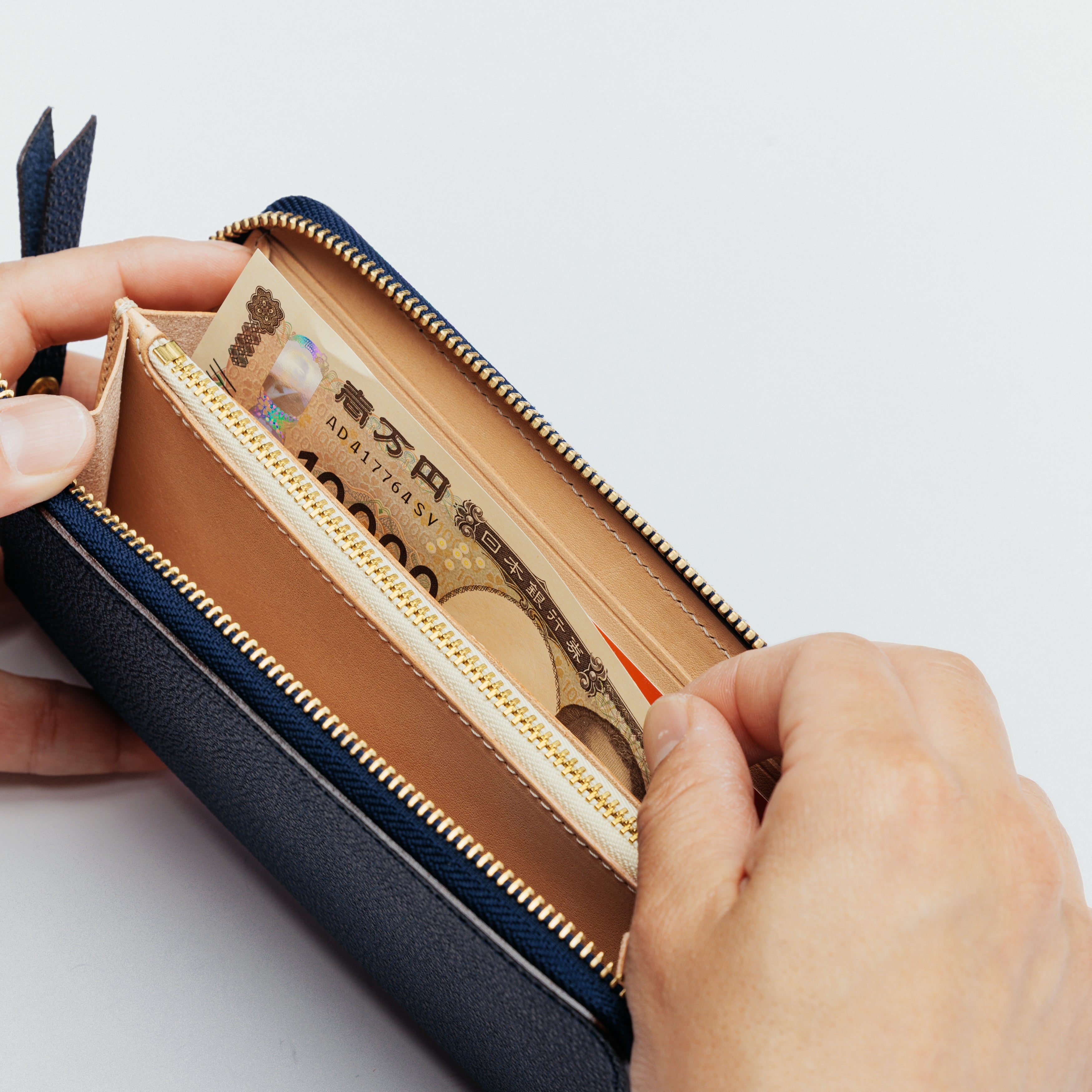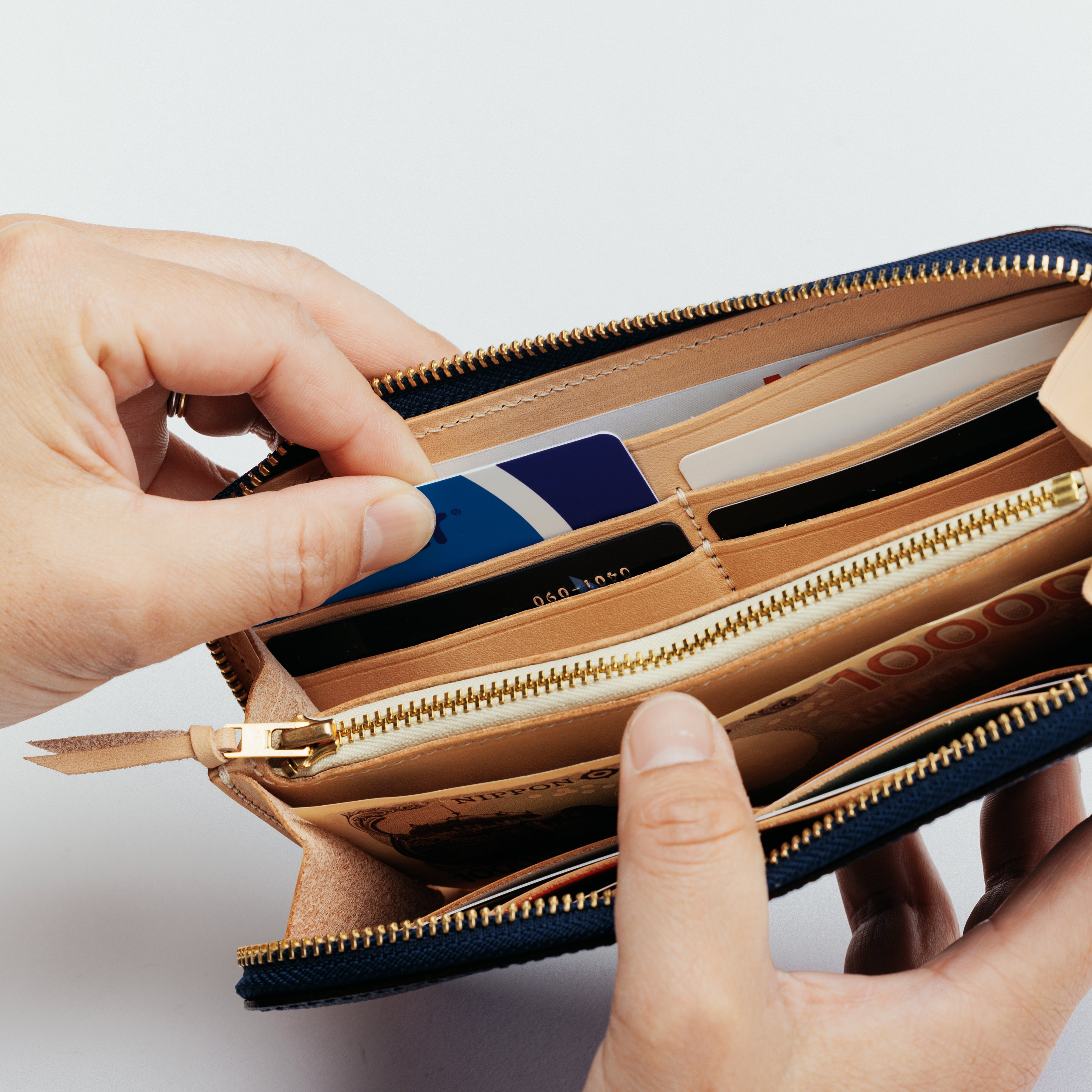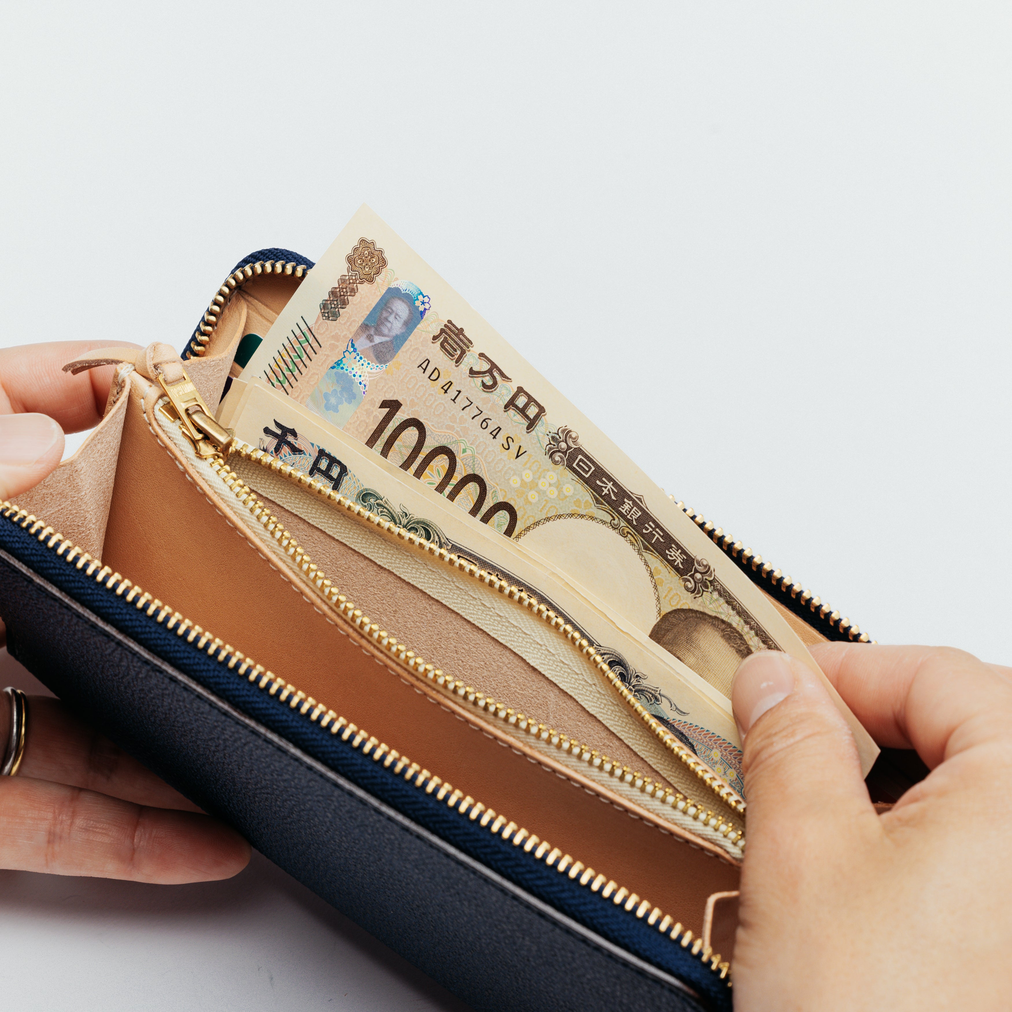 大きすぎず、厚すぎない、絶妙なバランスに仕上げたロングウォレット。