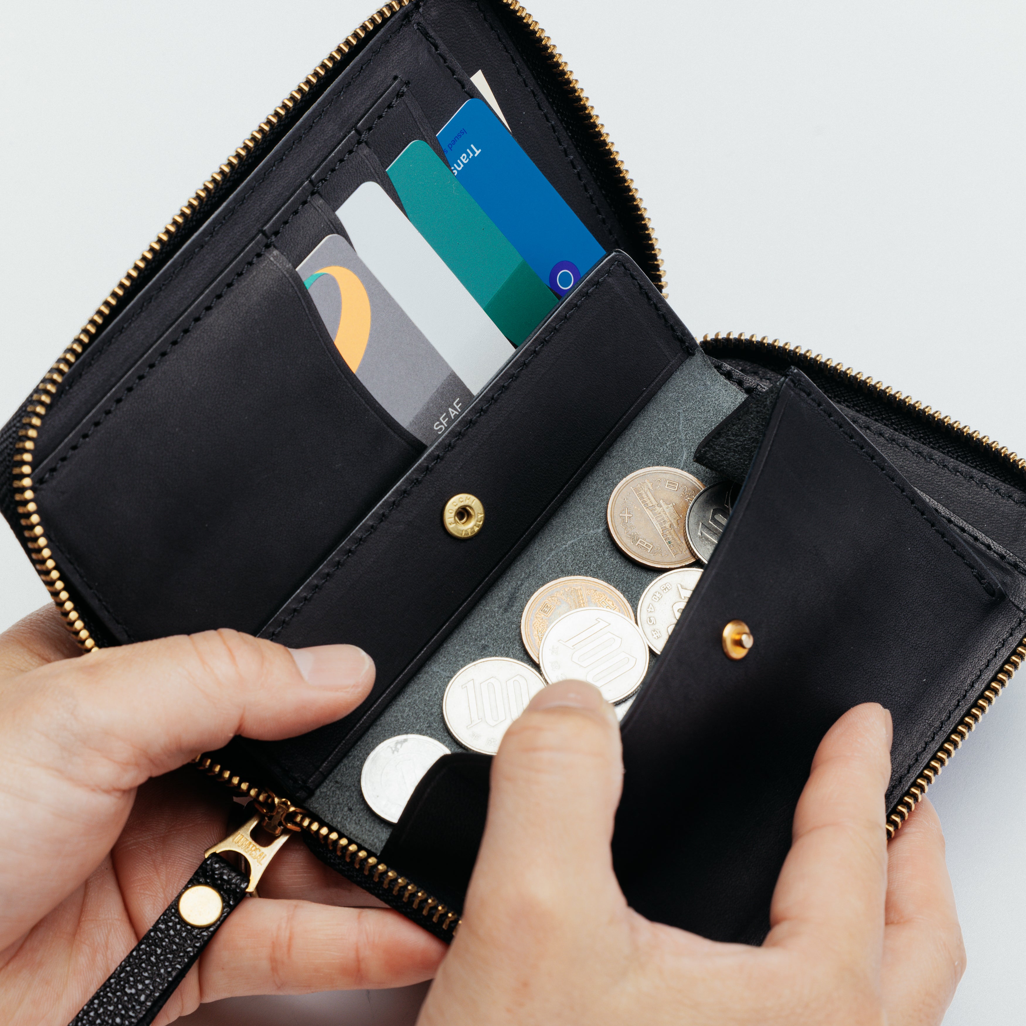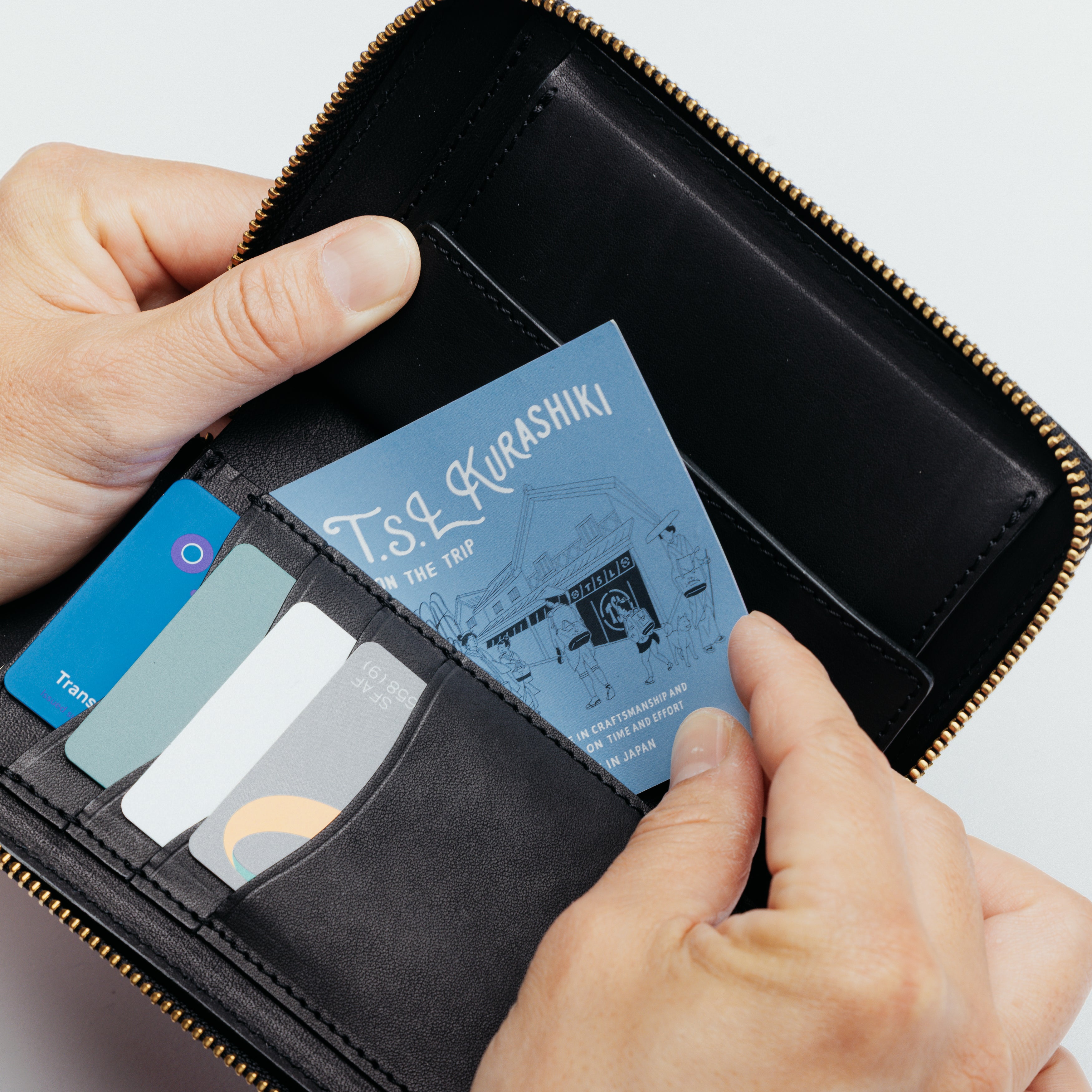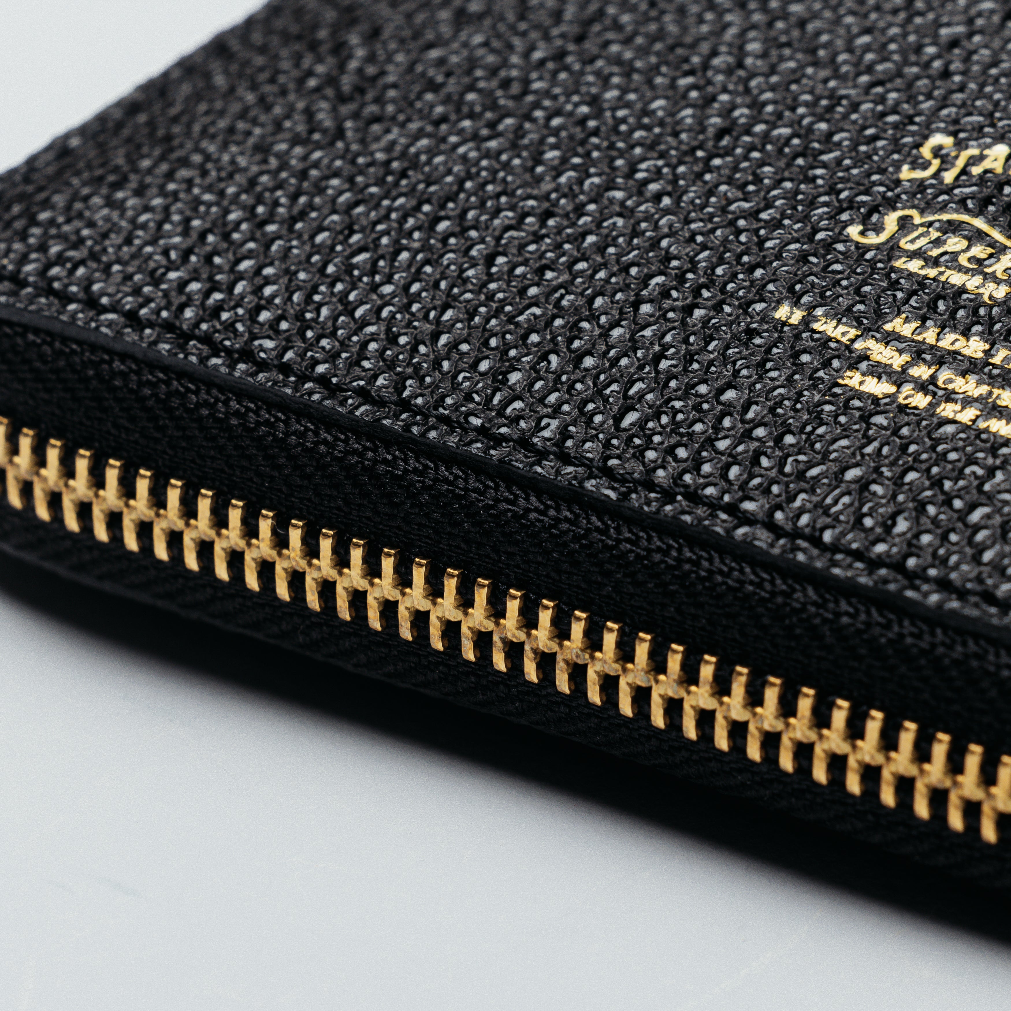定番モデル「ジップミドルウォレット」の表紙に"革の黒ダイヤ"と称される、日本の伝統技術が詰まった黒桟革を使用したファインレザープロダクト。