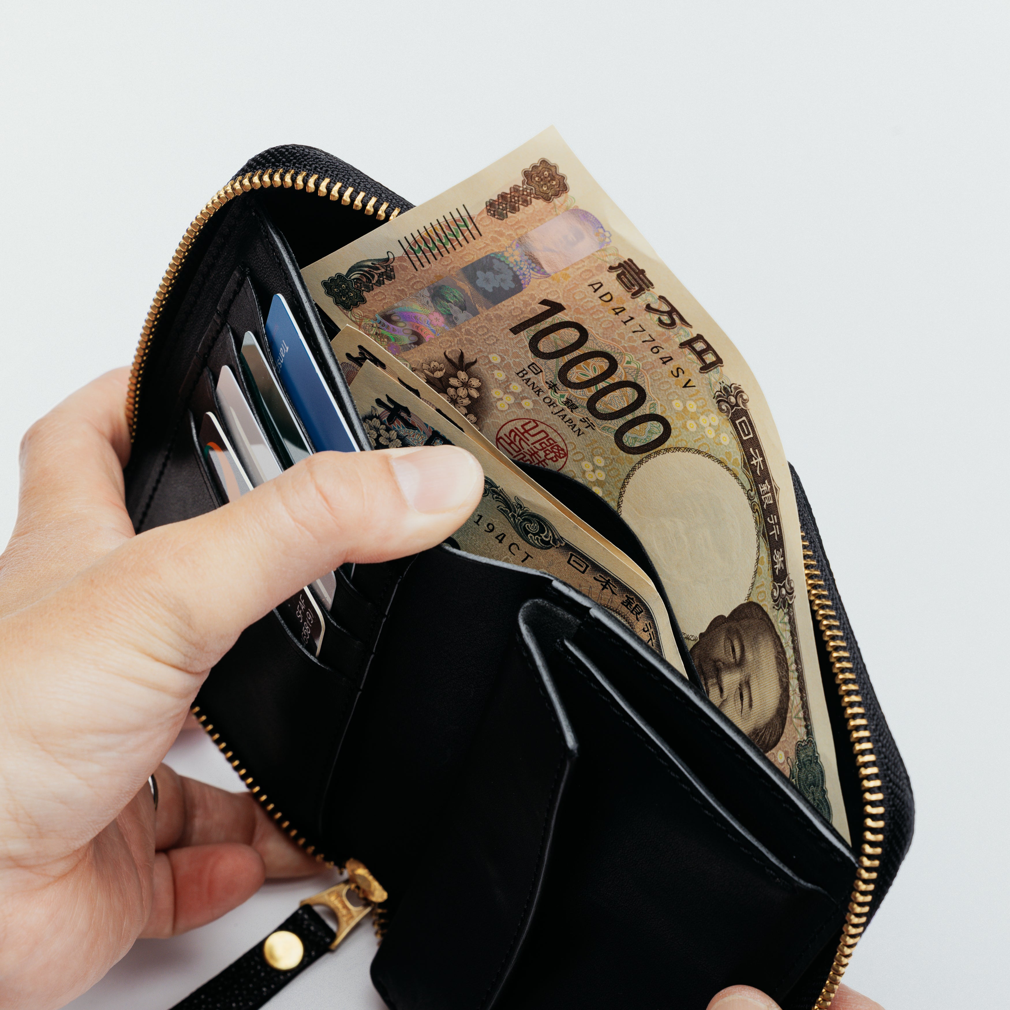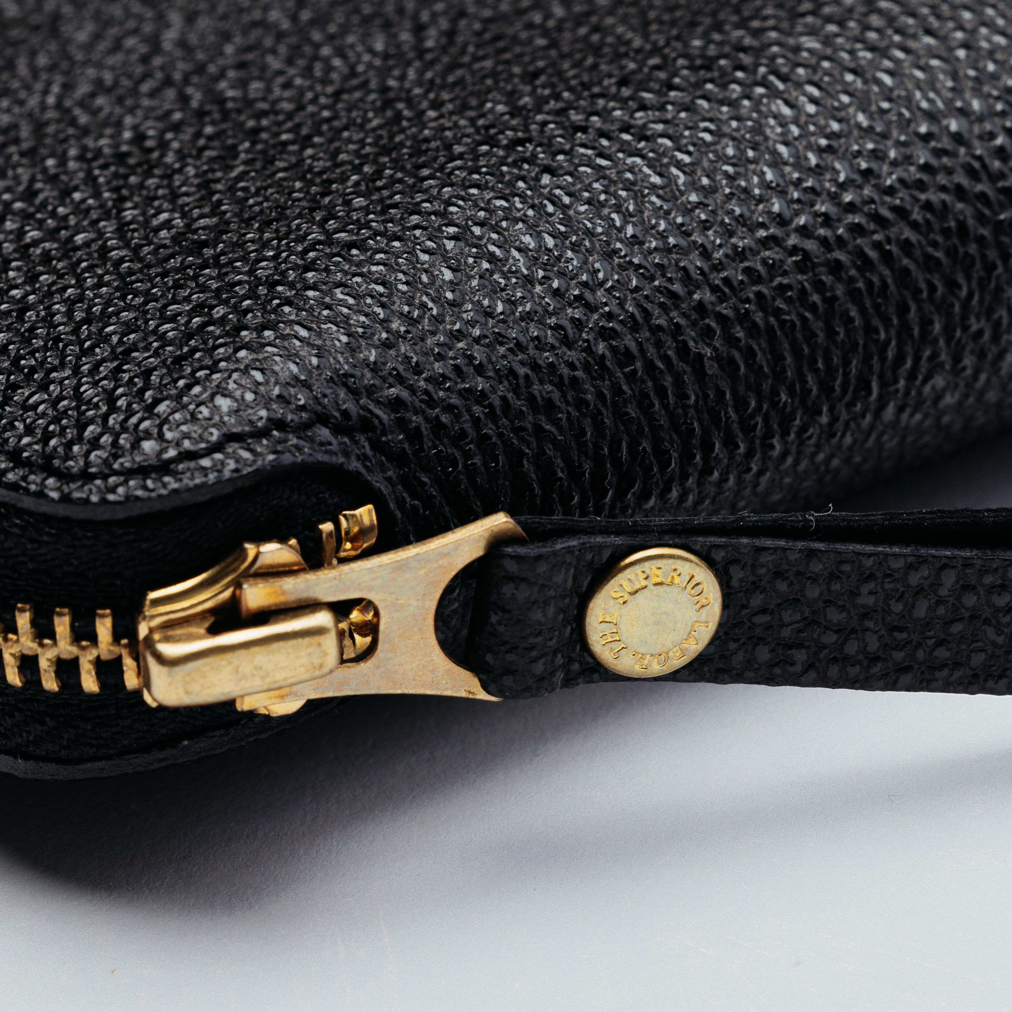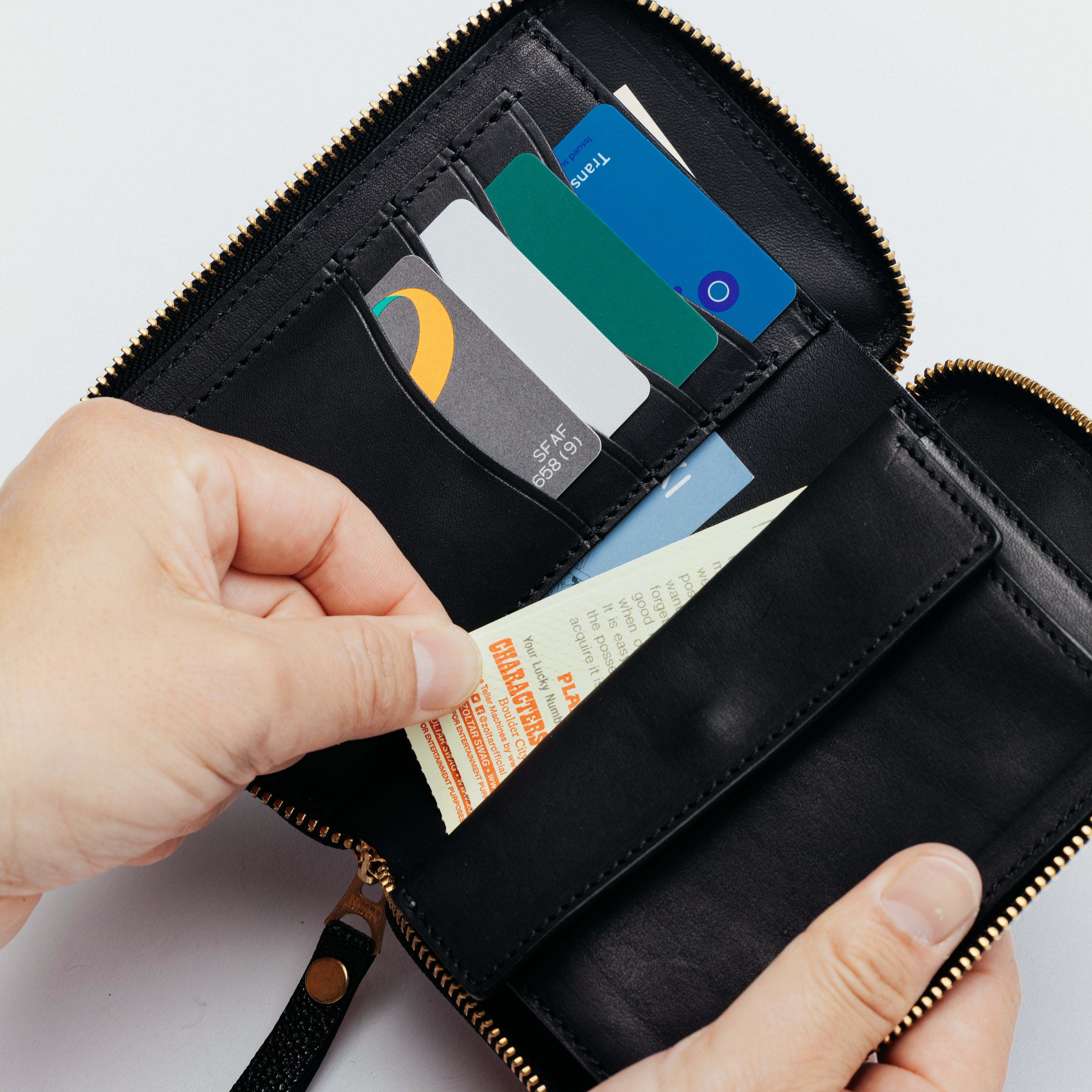 定番モデル「ジップミドルウォレット」の表紙に"革の黒ダイヤ"と称される、日本の伝統技術が詰まった黒桟革を使用したファインレザープロダクト。