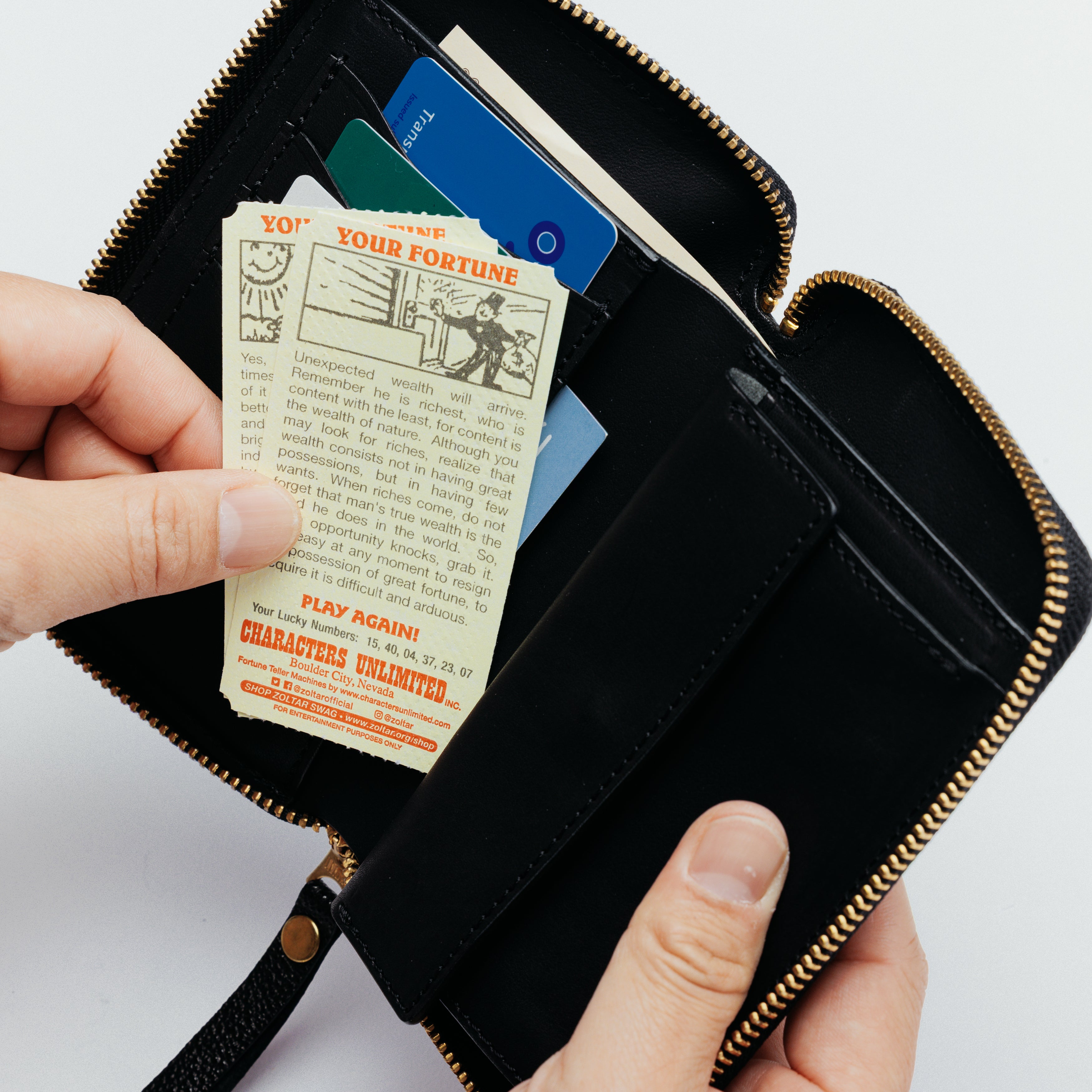 高い収納力と程よい大きさを持つこの財布の人気はただいま急上昇しています。
