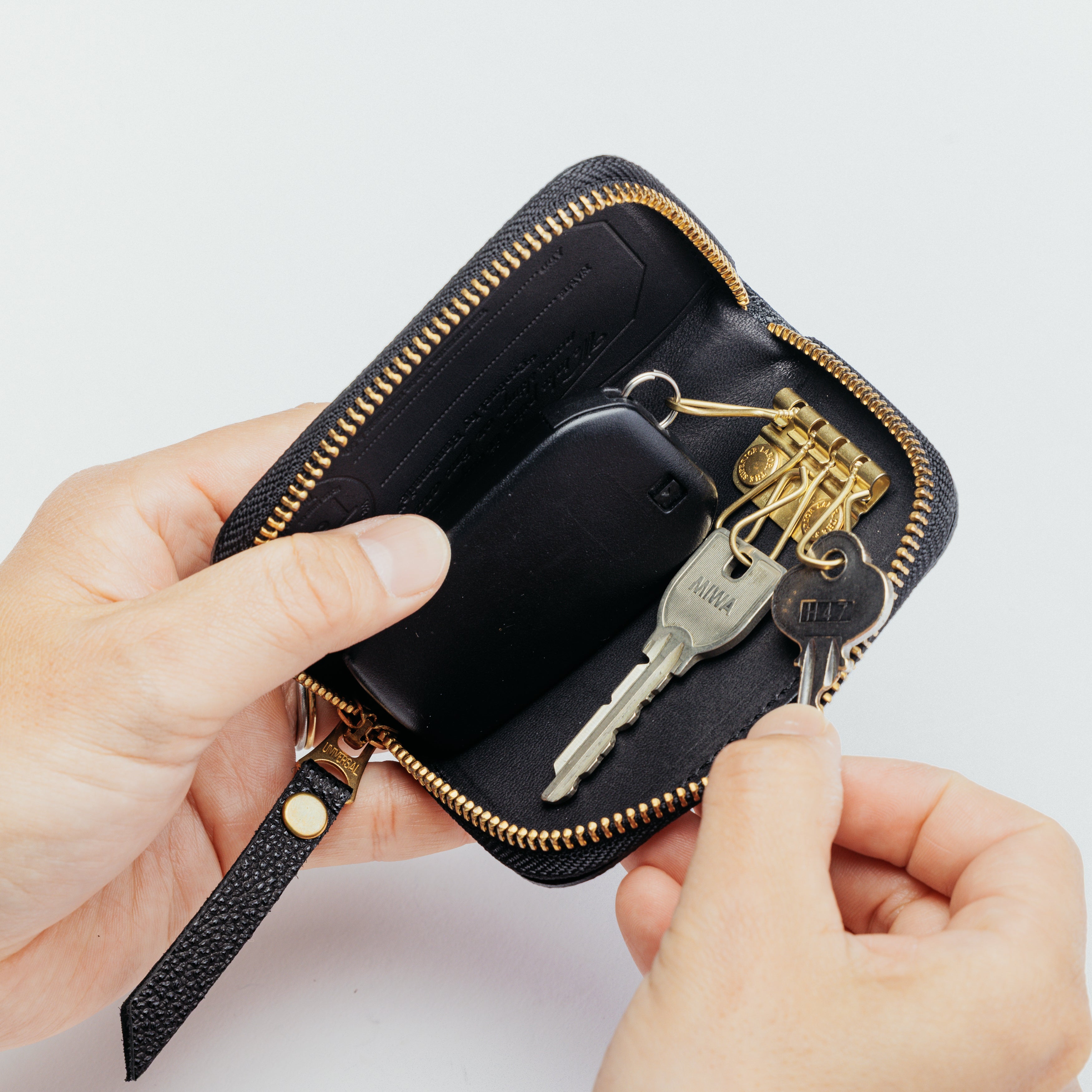 ジップで閉じることで、重要な鍵を保護します。