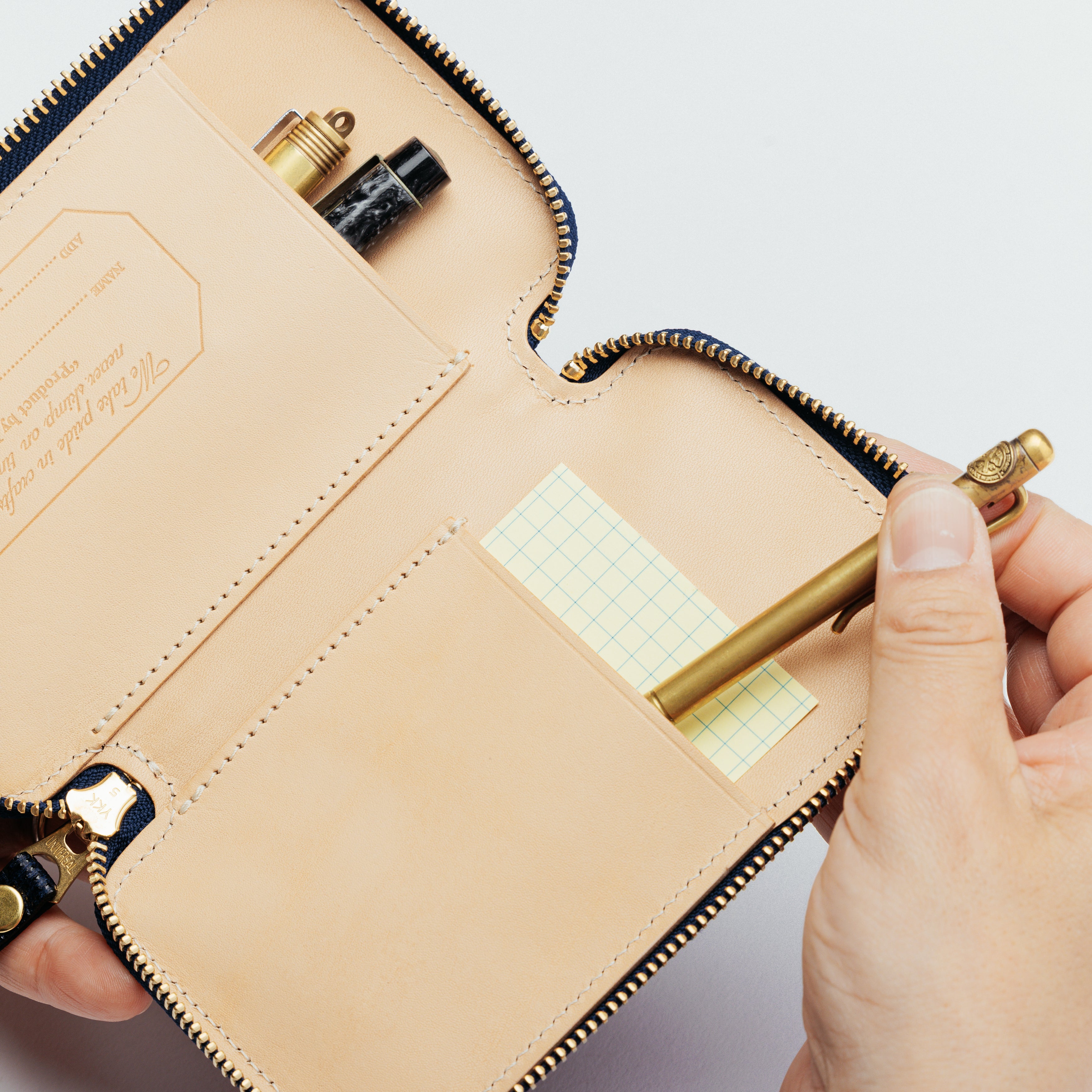まとめて入れるのではなく、1本1本差し込んで収納するペンポケット仕様。