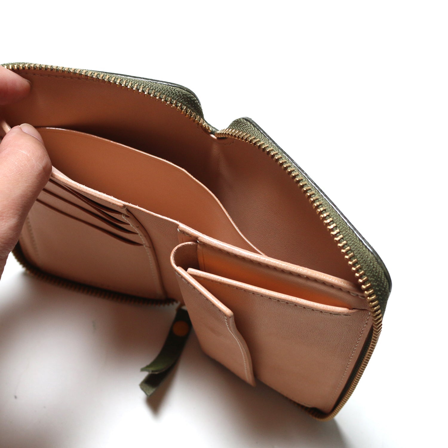 - 使用している革は天然皮革です。 破れや裂けに繋がる傷は使用していませんが、もともと革にある傷やしわは素材の特徴として商品に使用しています。 また、同じ革でも色味や厚み、風合いに個体差がございます。