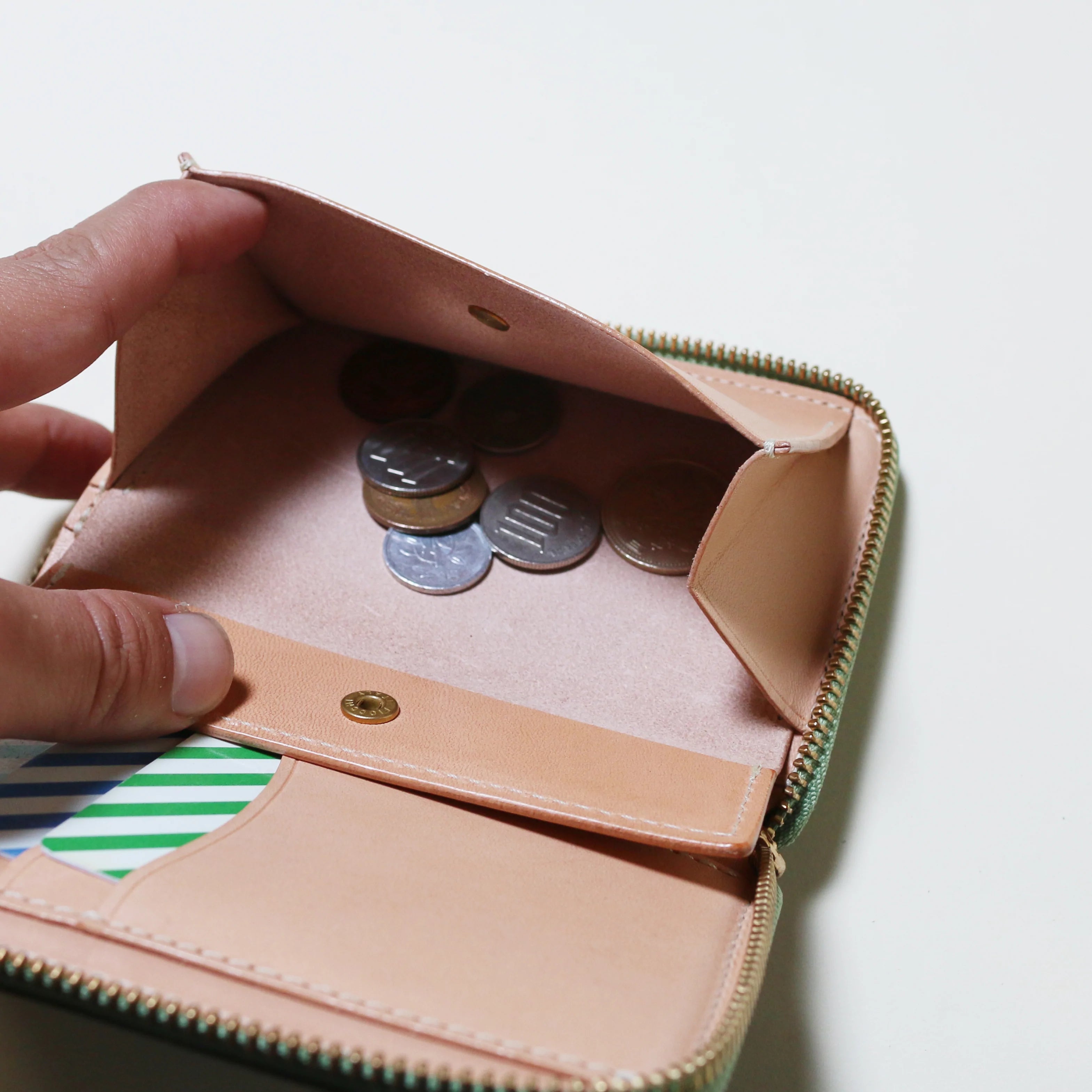 ラウンドファスナータイプのミドルウォレットです。