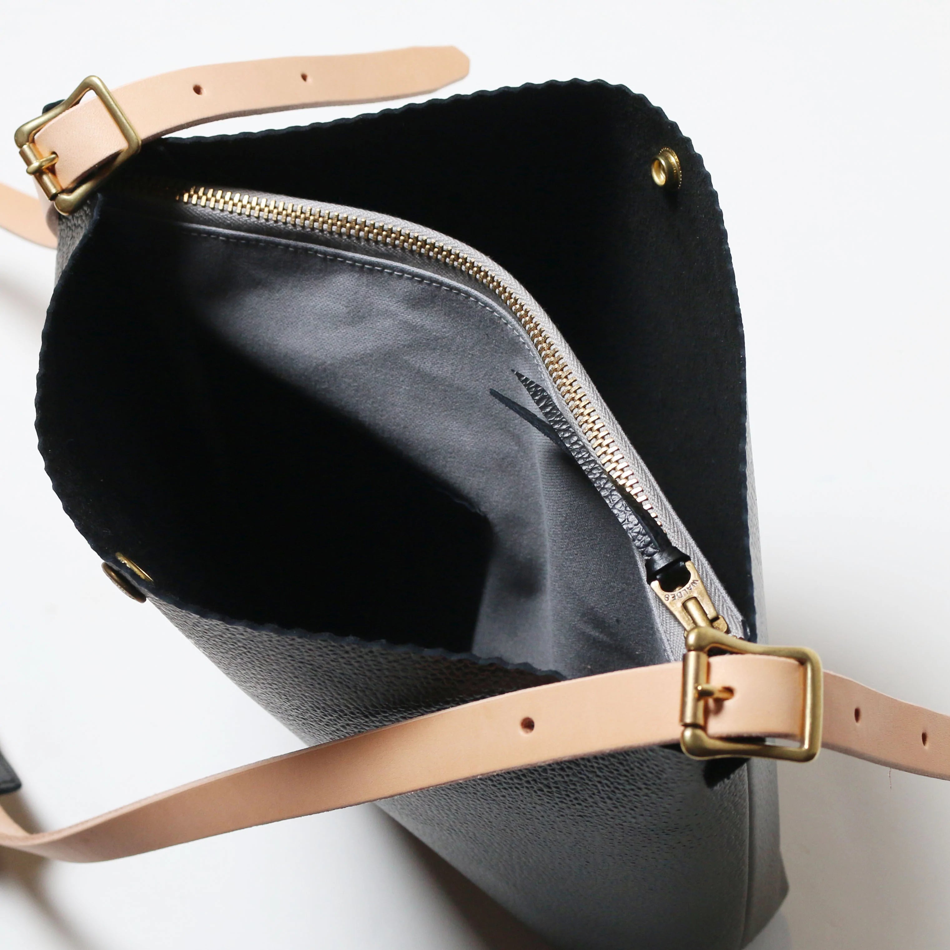 革の裁ち切り部分のカッティングや内袋の落とし込みなど、鞄の作り方がデザインとして落としこまれています。